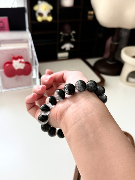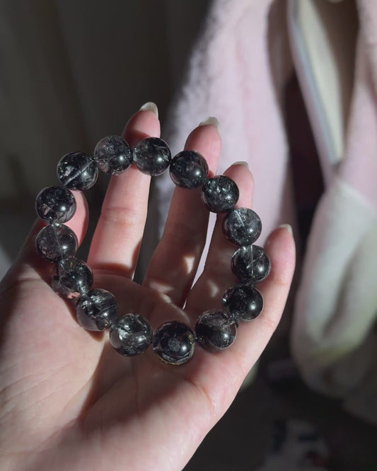 Black Phantom Quartz Beaded Bracelet 12.8mm 半盆金沙黑幽靈穿髮晶