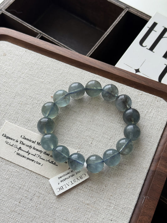 Natural Greyish Aquamarine 12.9mm Beaded Bracelet
