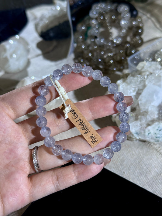 Blue Rutilated Quartz Blue Rabbit Hair Amphibole Beaded BraceletRegular price $60.00 CADRegular priceUnit price per-