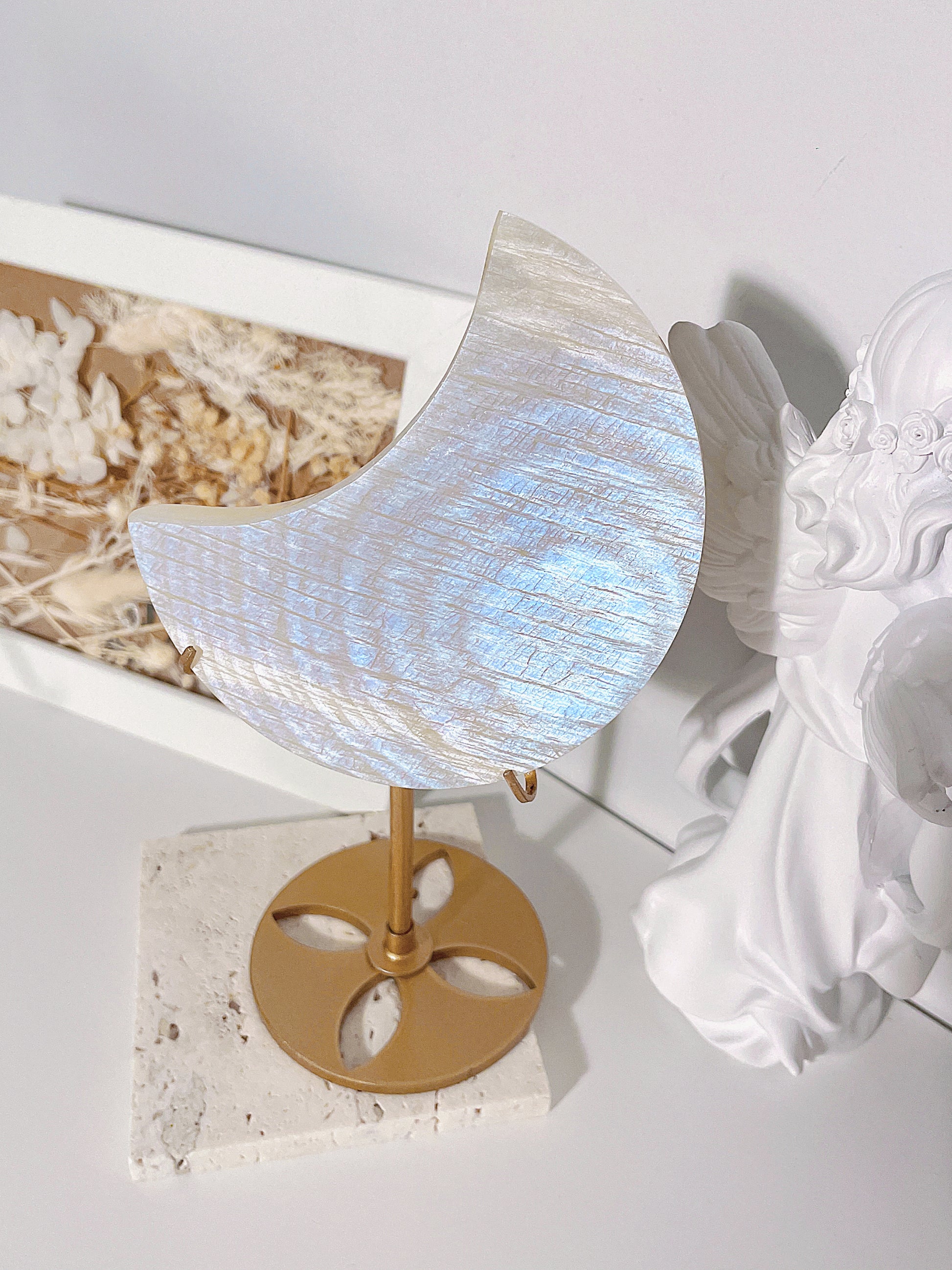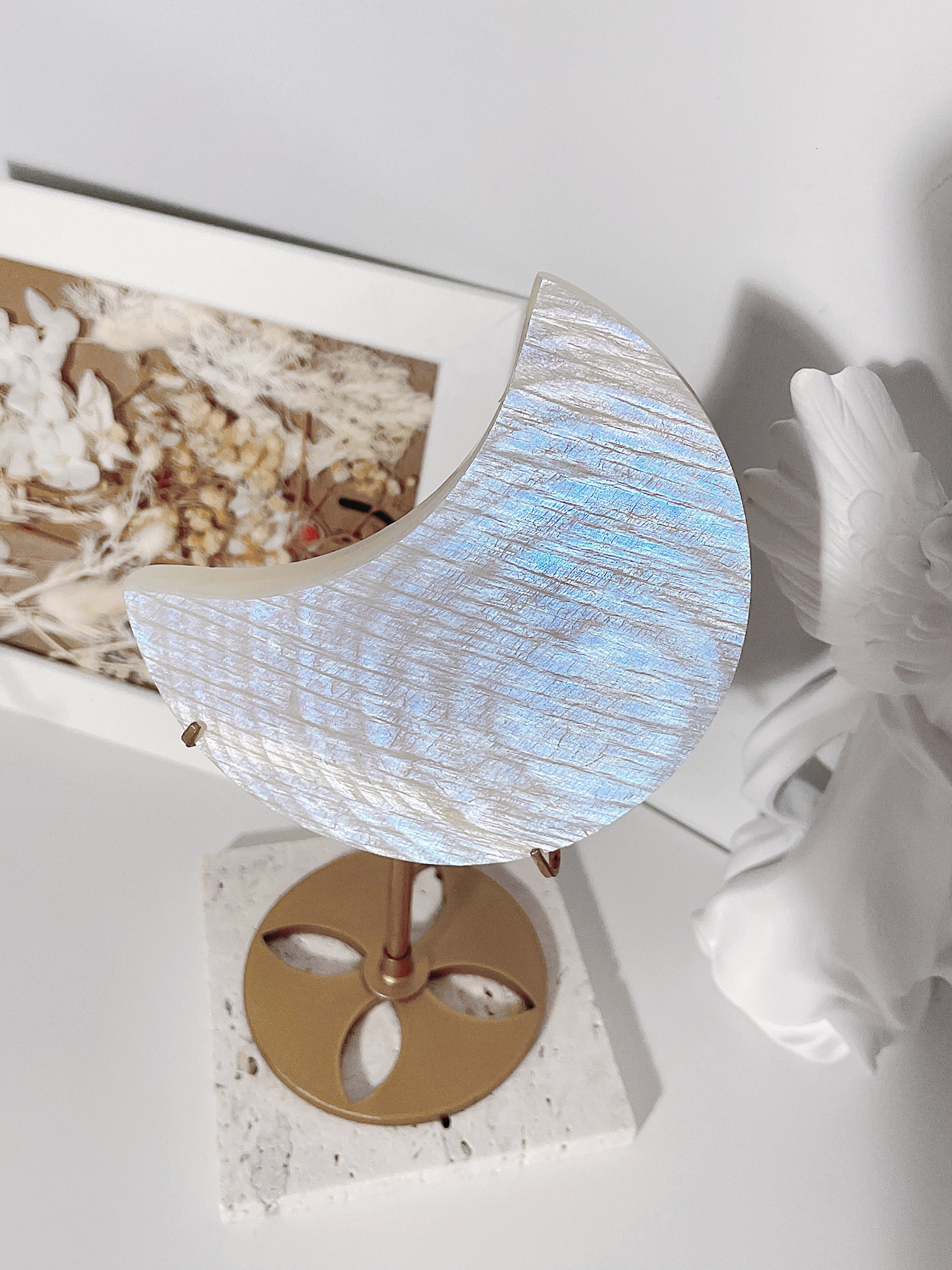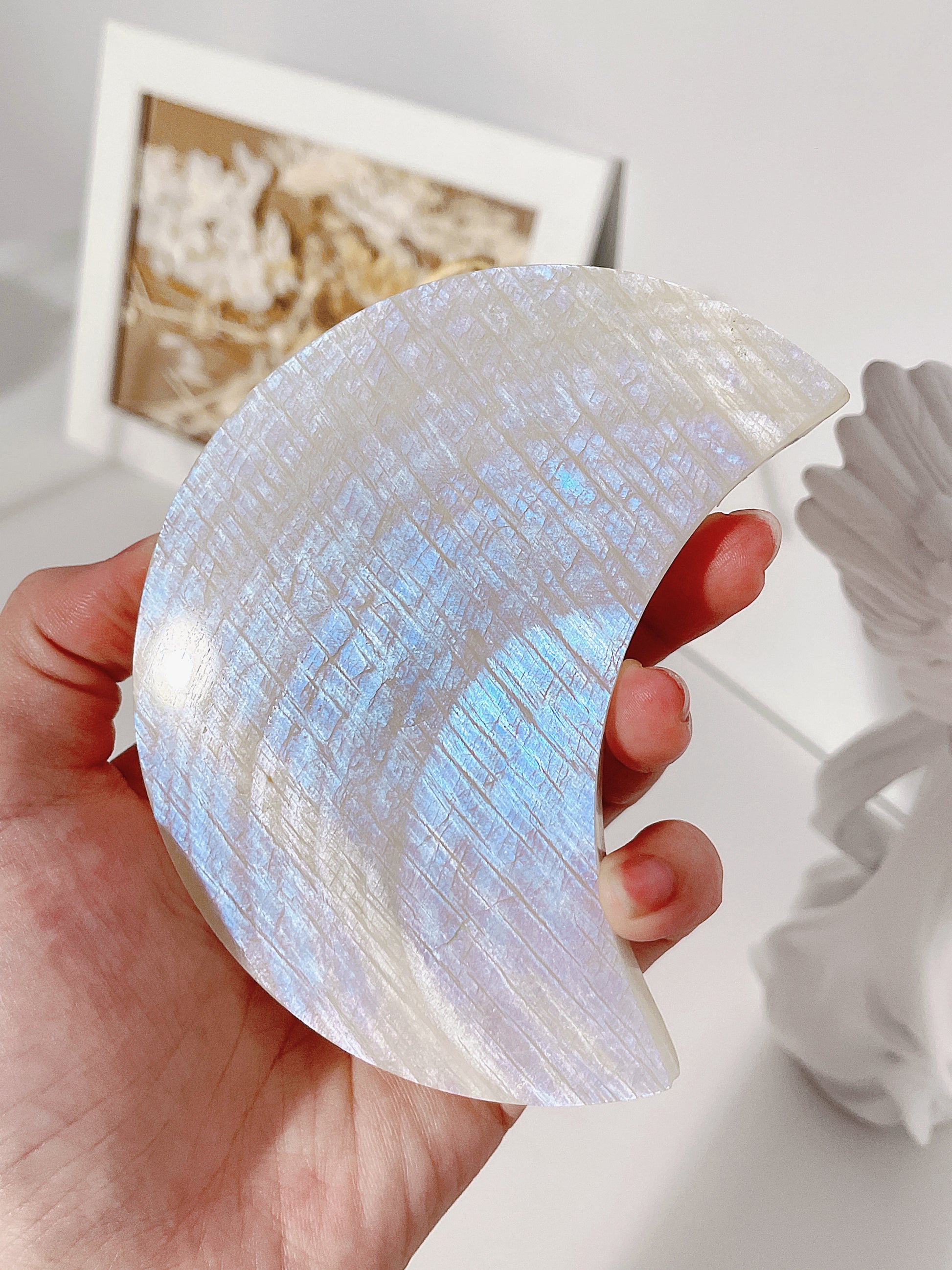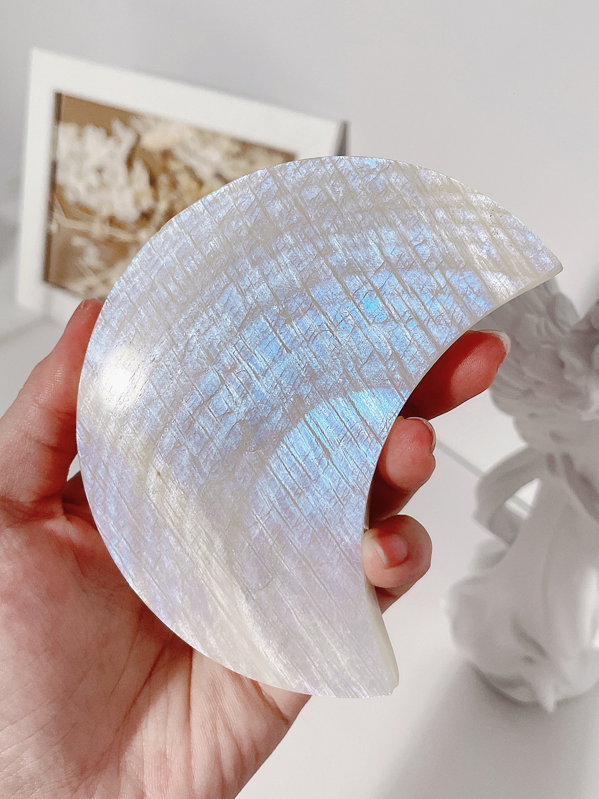 Moonstone enhances intuition, promotes inspiration, success and good fortune in love and business matters. Moonstone aids the digestive system, assimilates nutrients, eliminates toxins and fluid retention, and alleviates degenerative conditions of skin, hair, eyes, and fleshy organs such as the liver and pancreas.