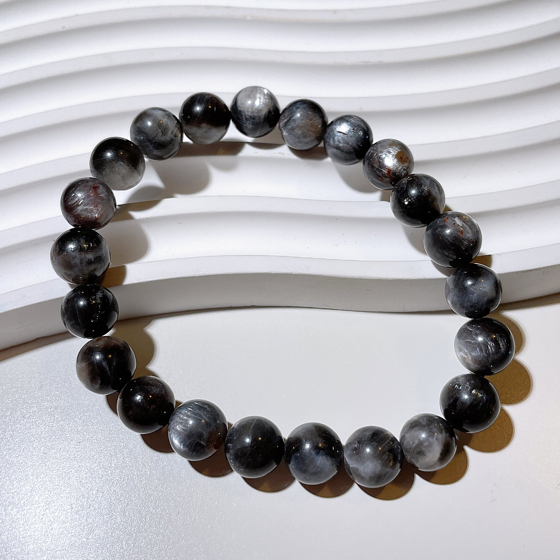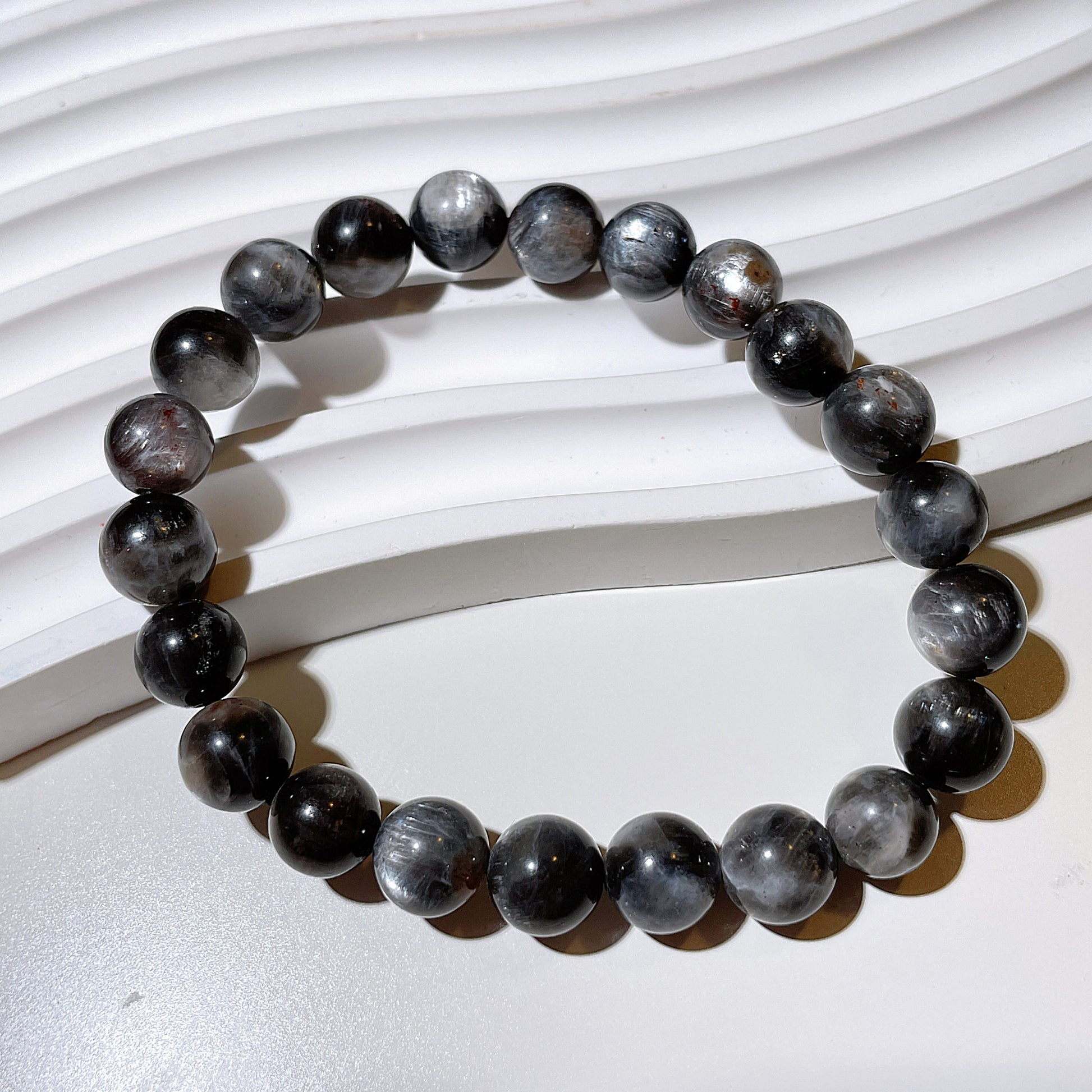 Black/Grey Skeleton Strawberry Quartz Sunstone Beaded Bracelet