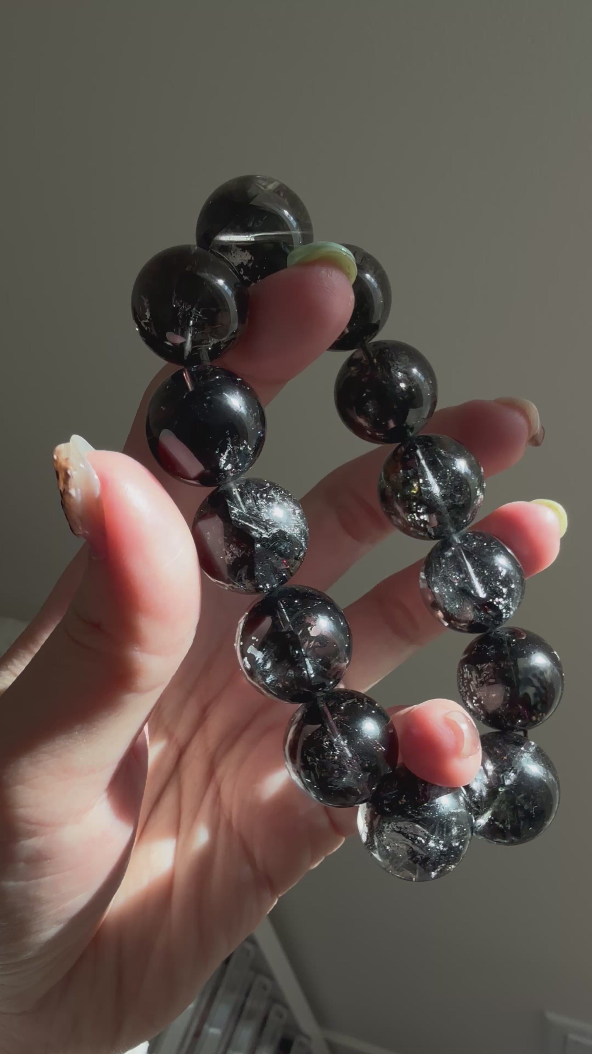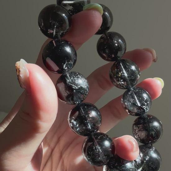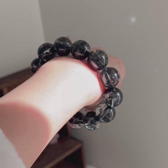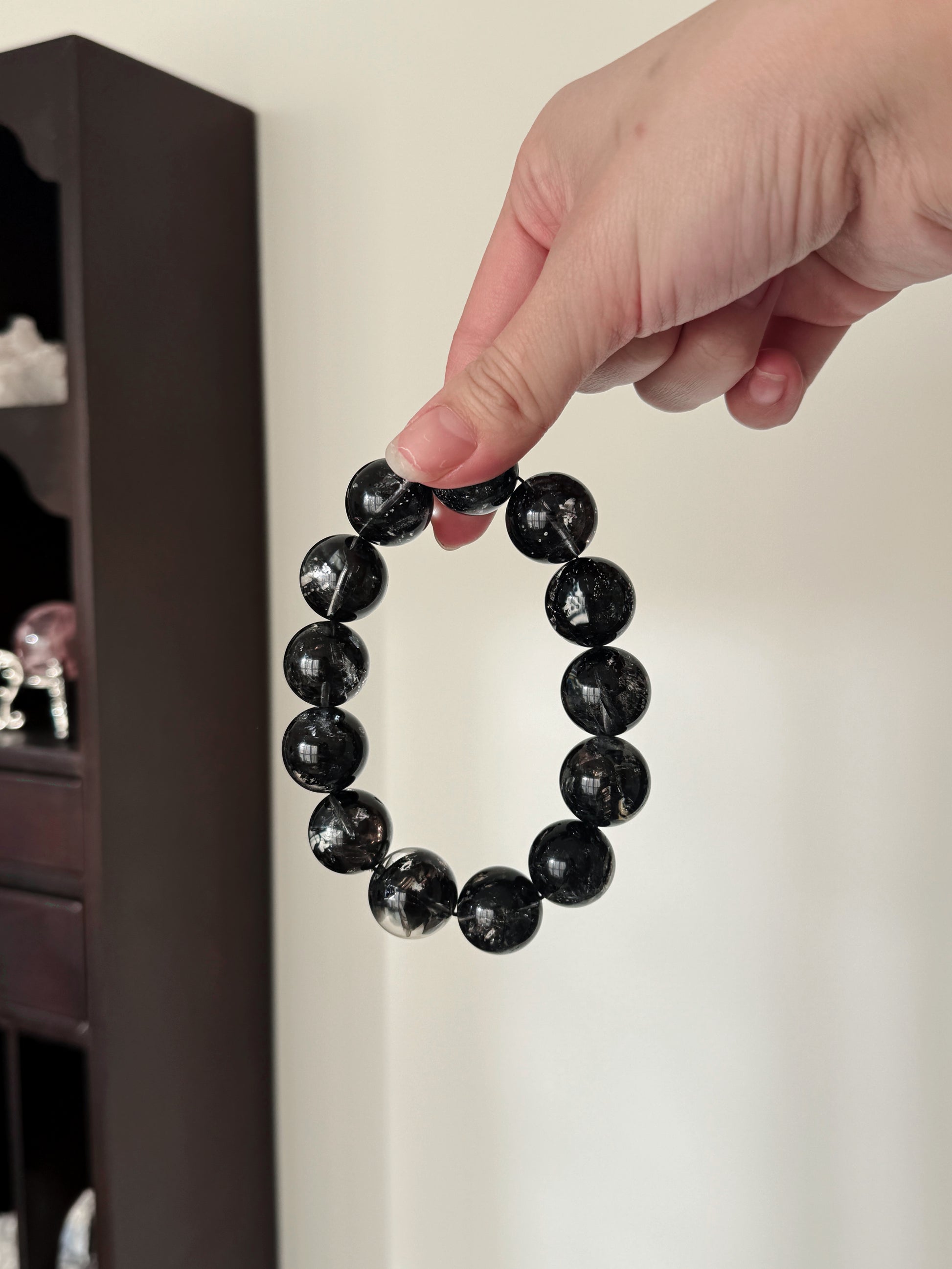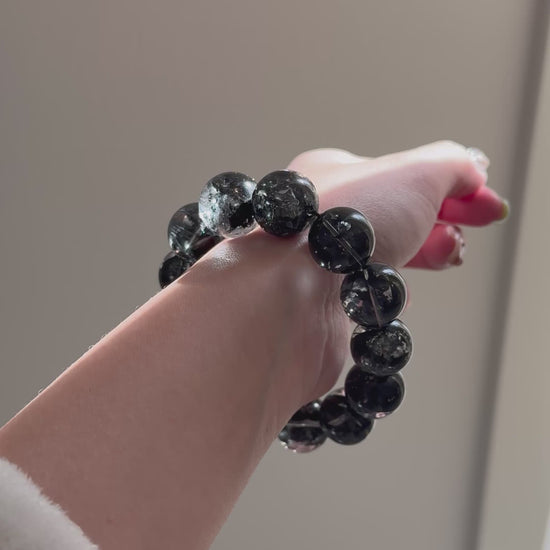 Black Herkimer Diamond 17.5mm Beaded Bracelet