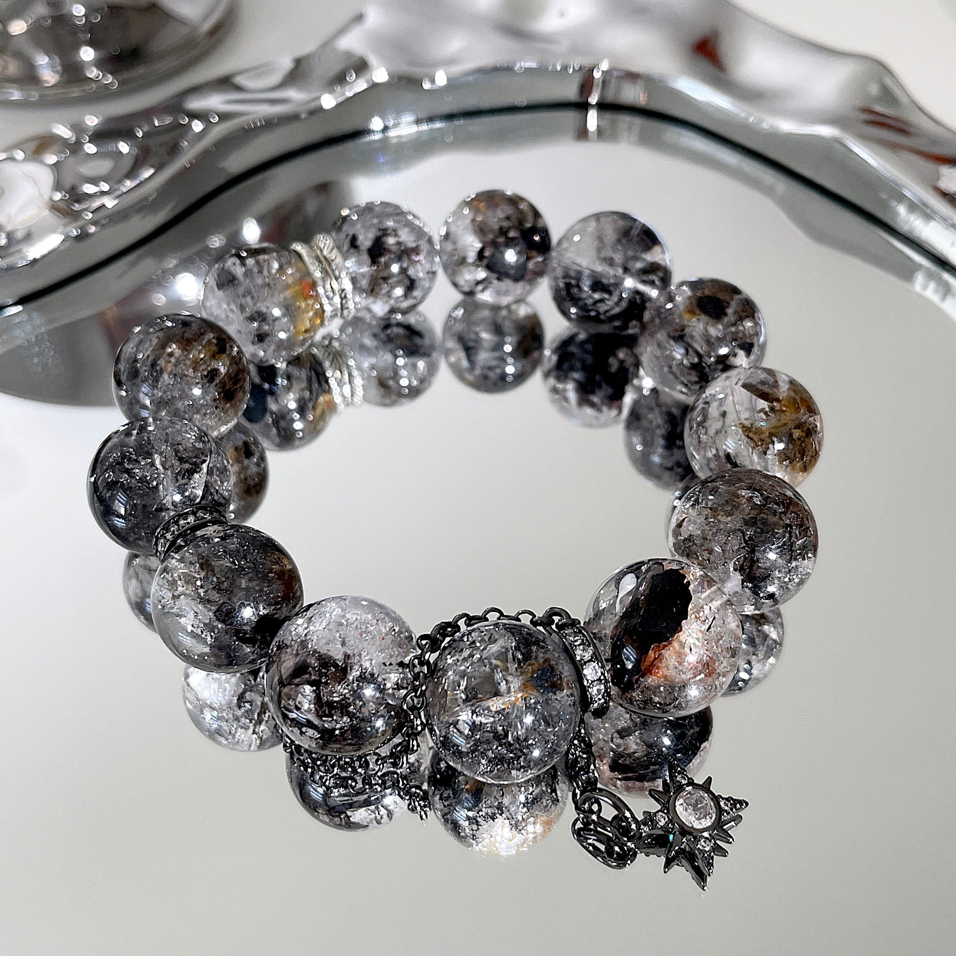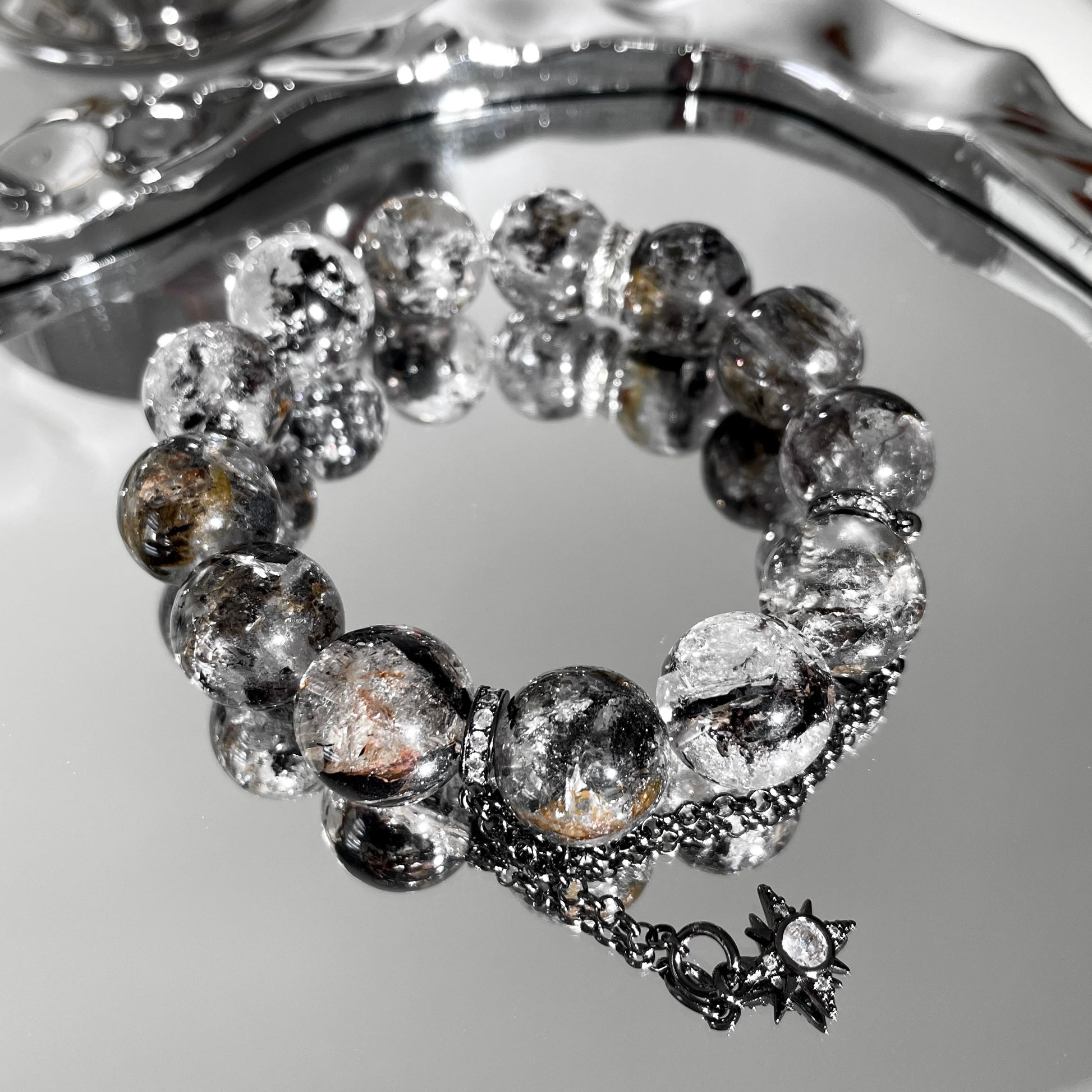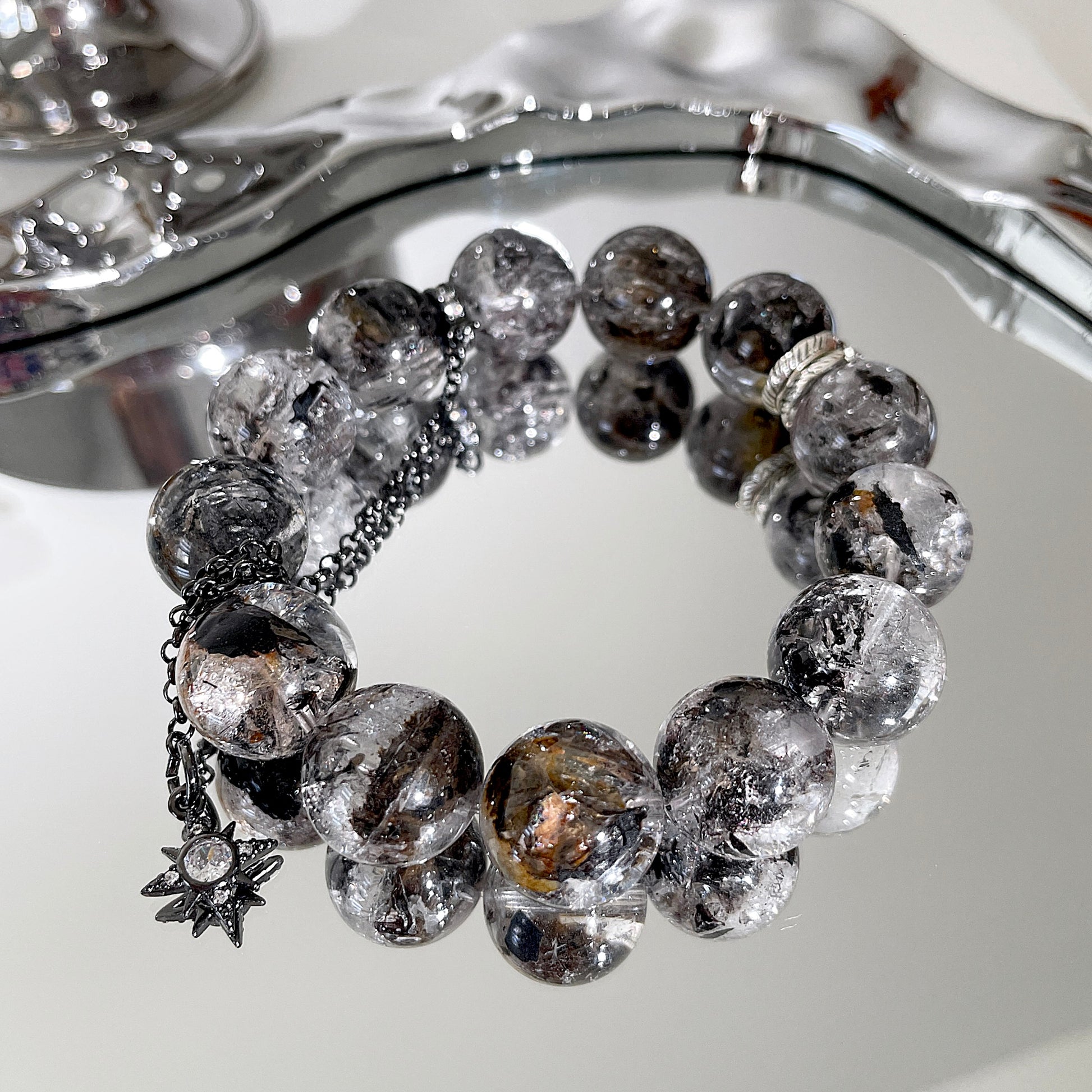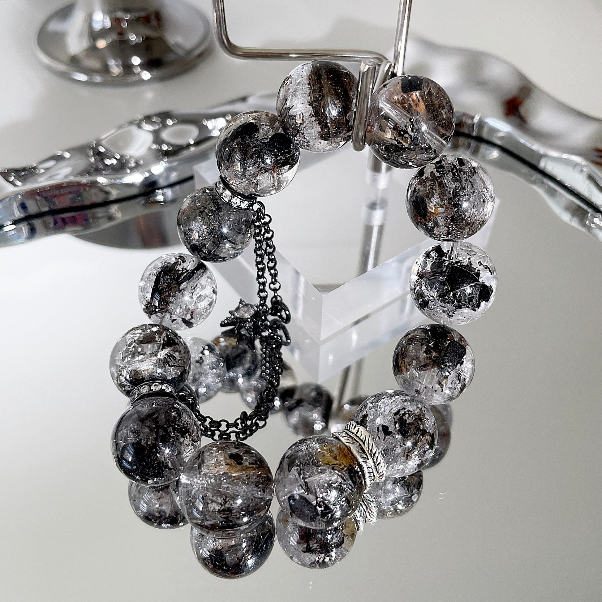 Yellow Black Herkimer Diamond Beaded Bracelet