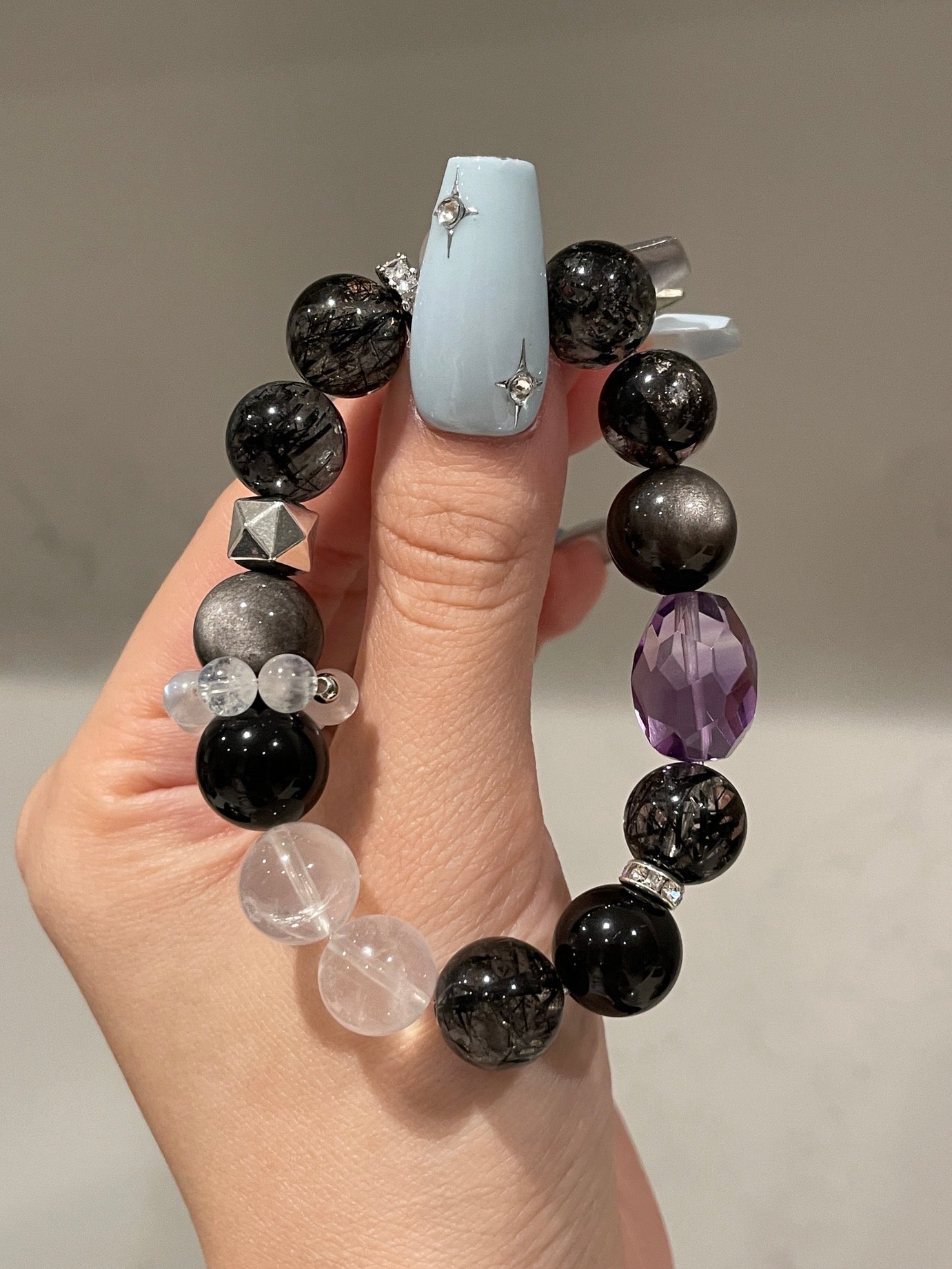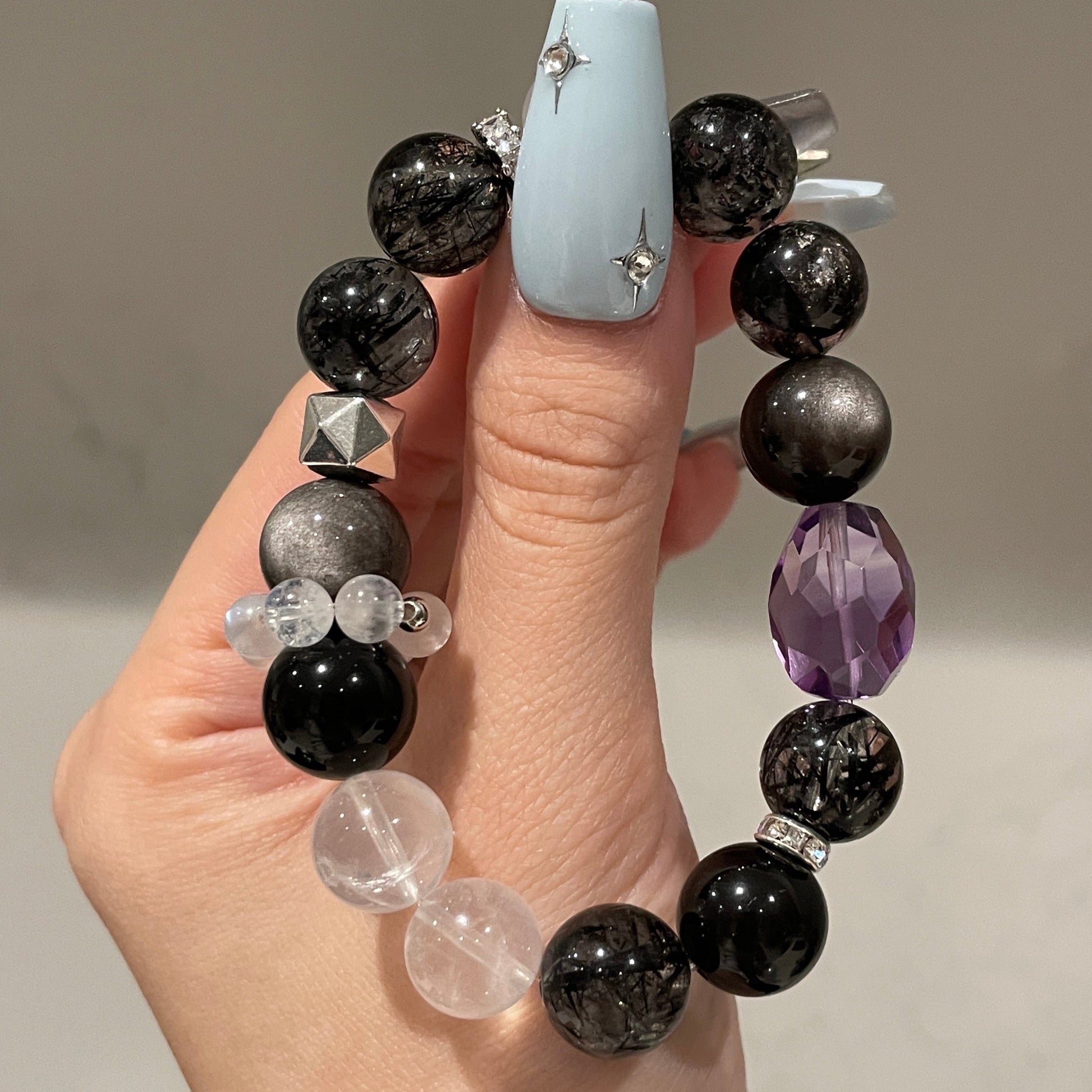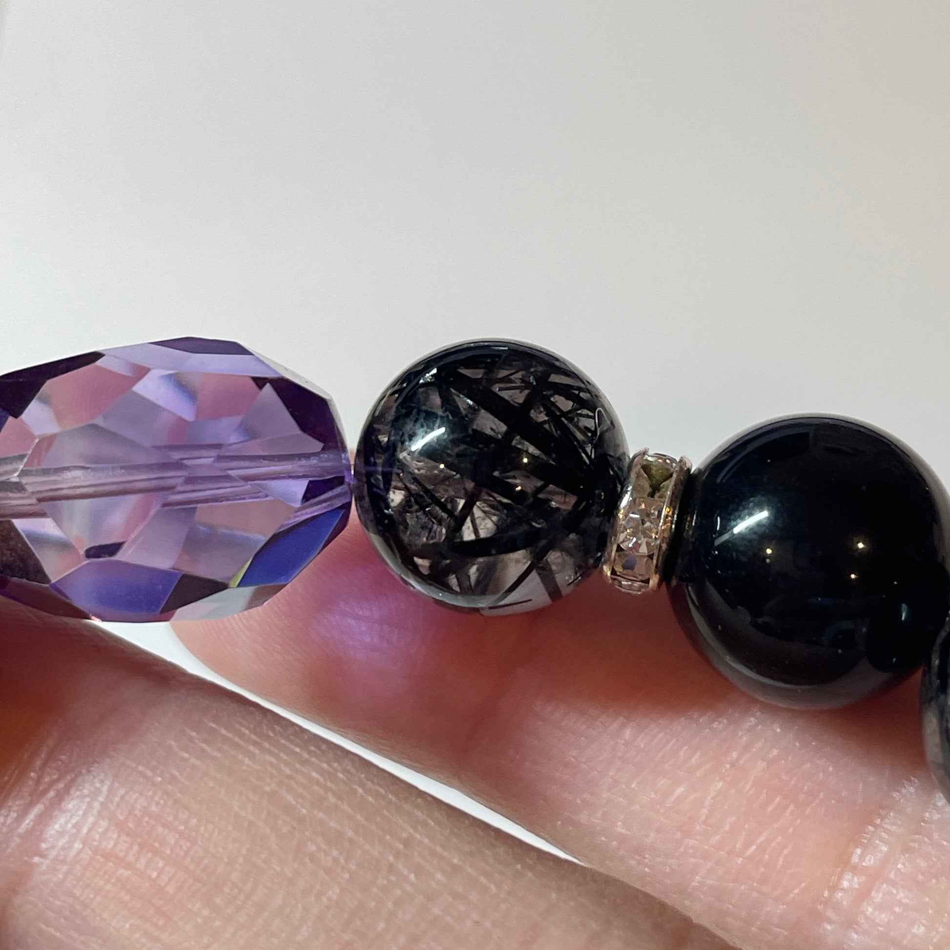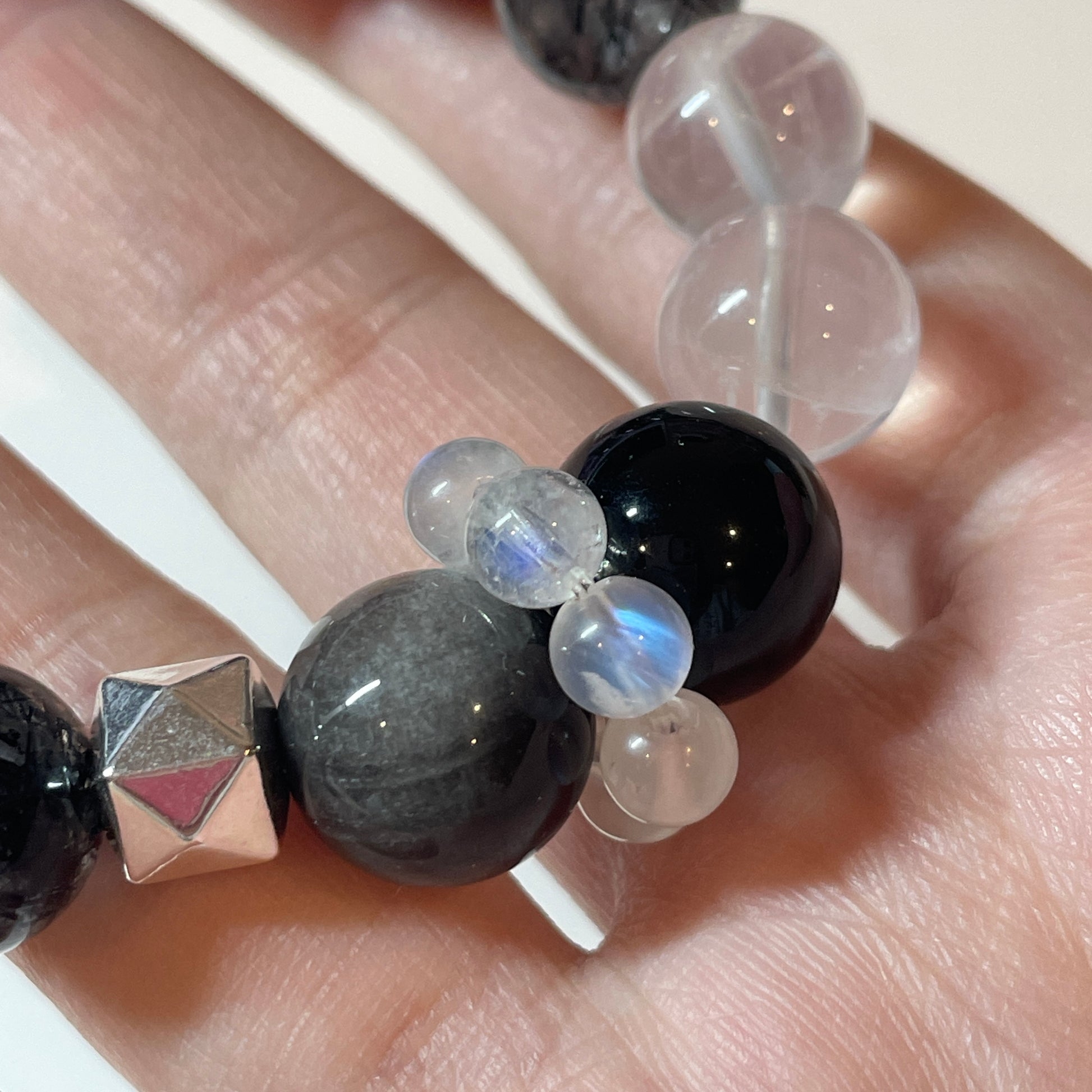 Designed with moonstone, obsidian, amethyst, clear quartz, herkimer diamond