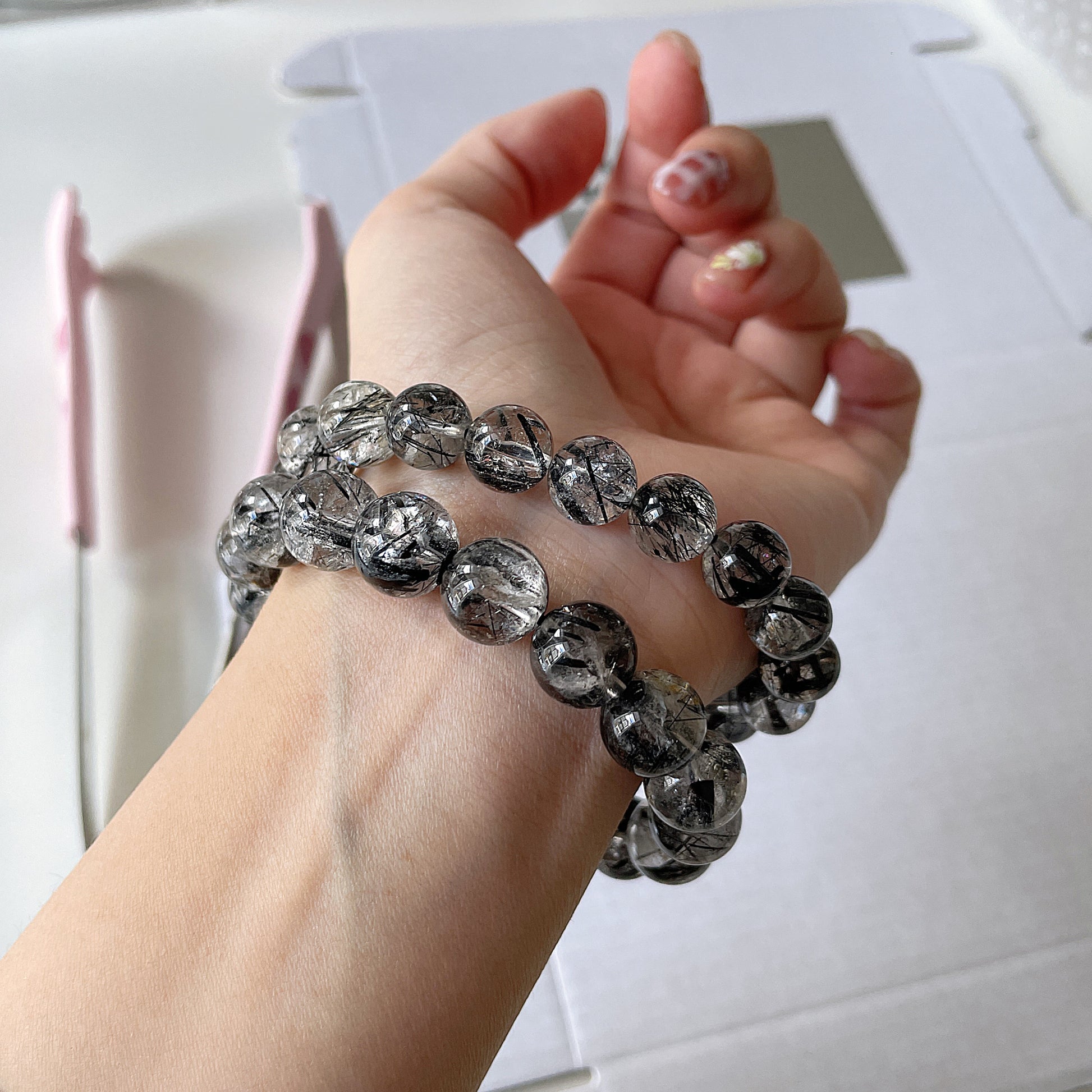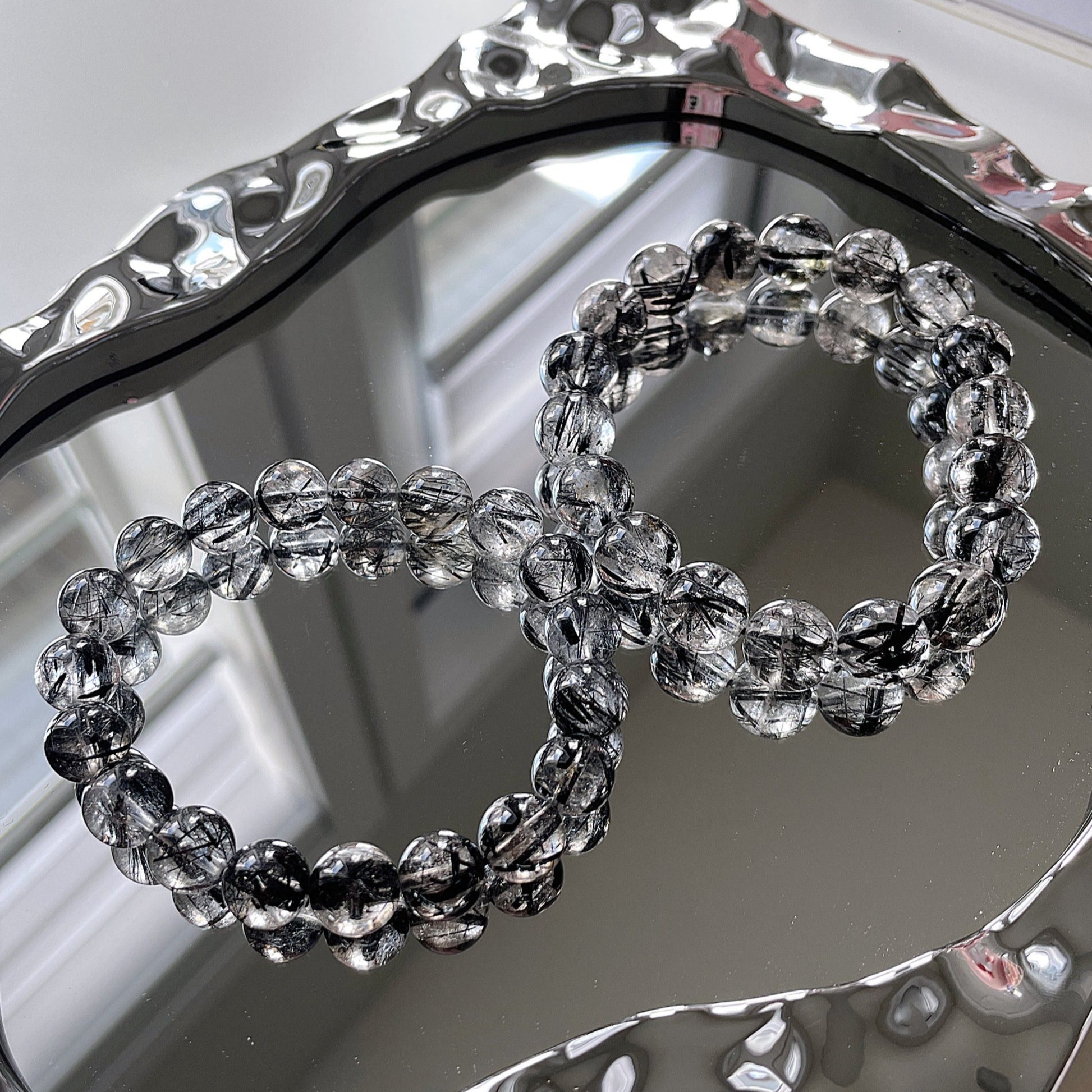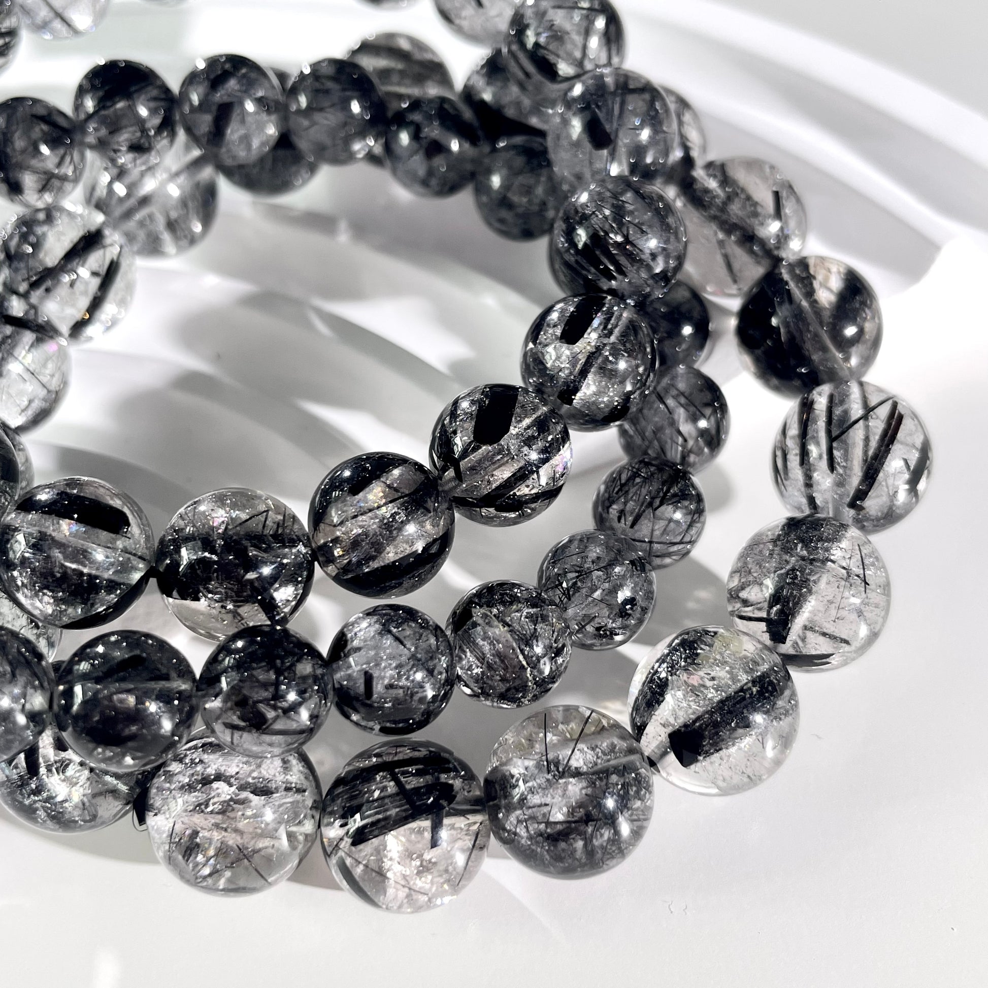 Black Rutile Quartz Beaded Bracelet