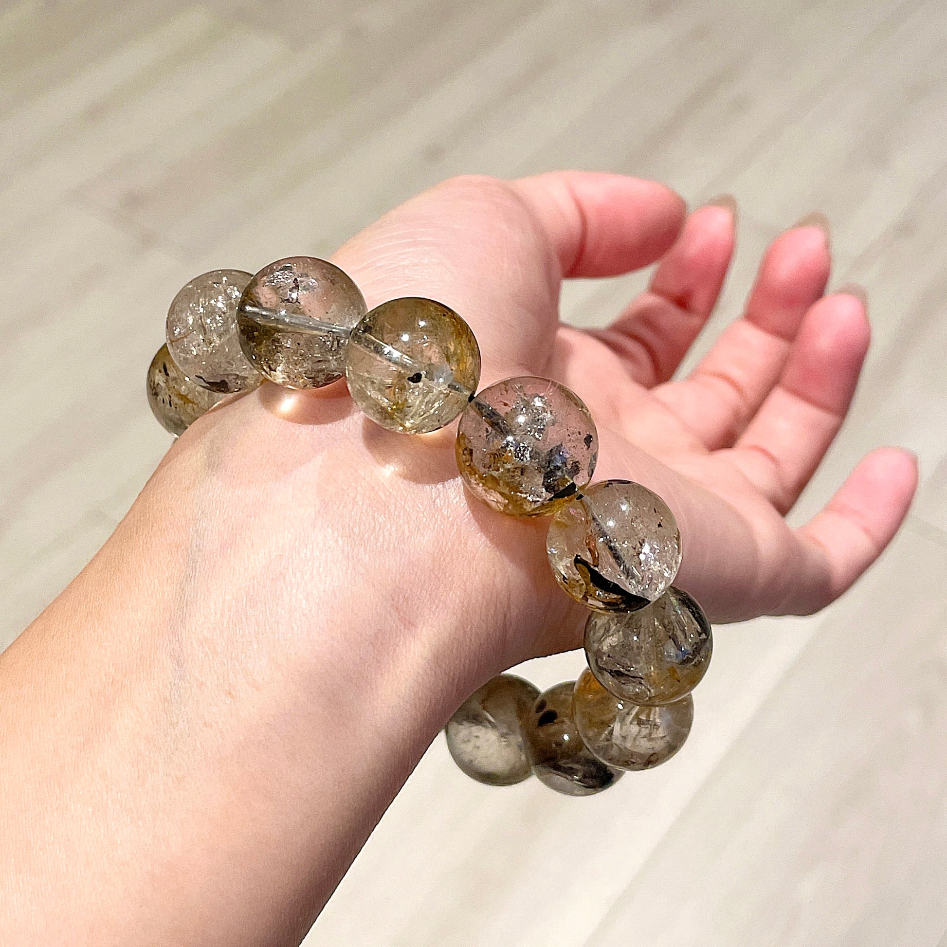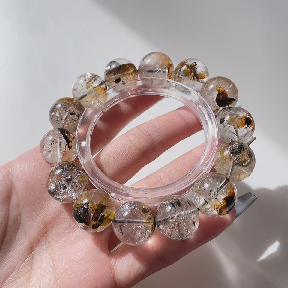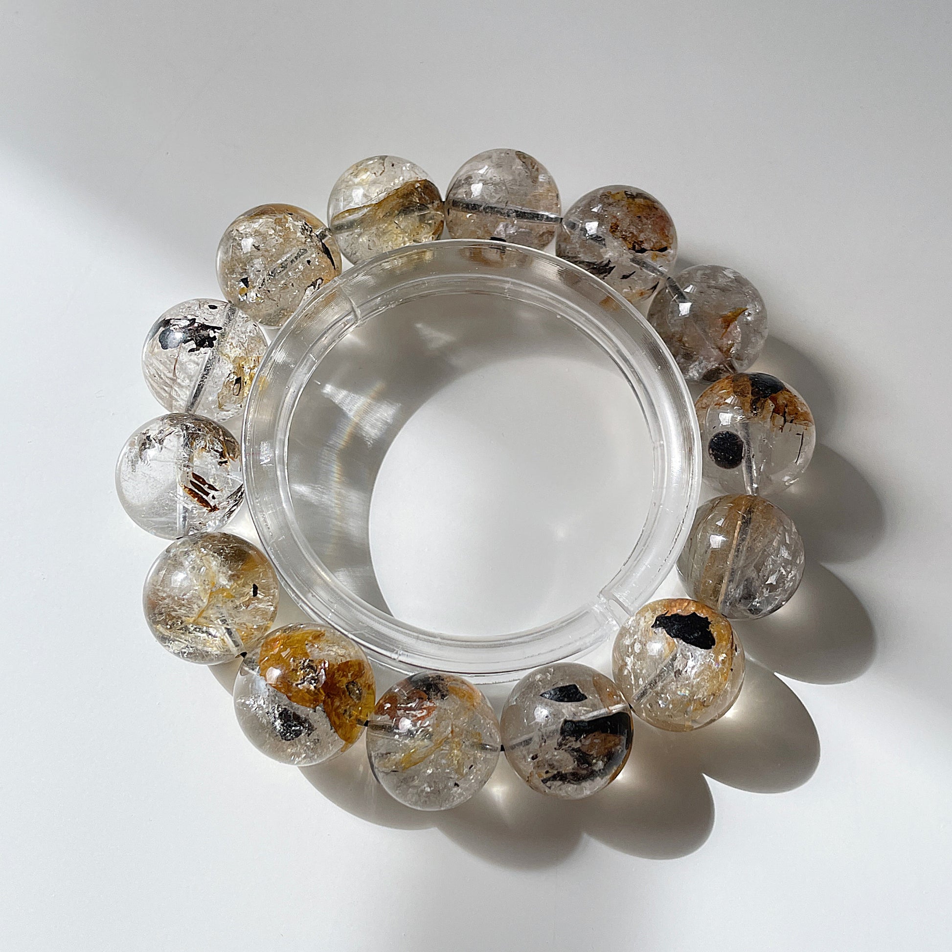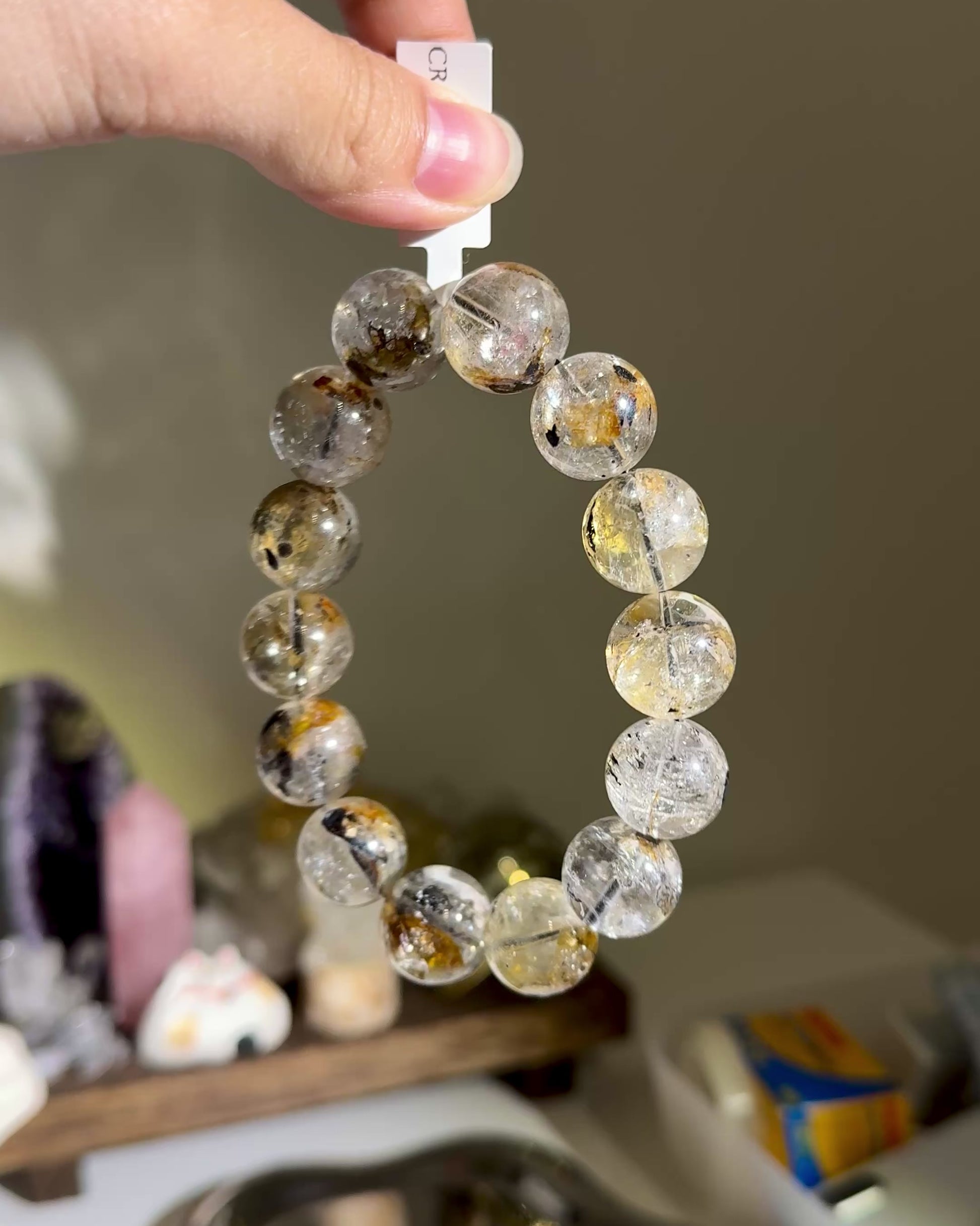 Black & Yellow Skeleton Herkimer Diamond Beaded Bracelet 黑金骸骨閃靈