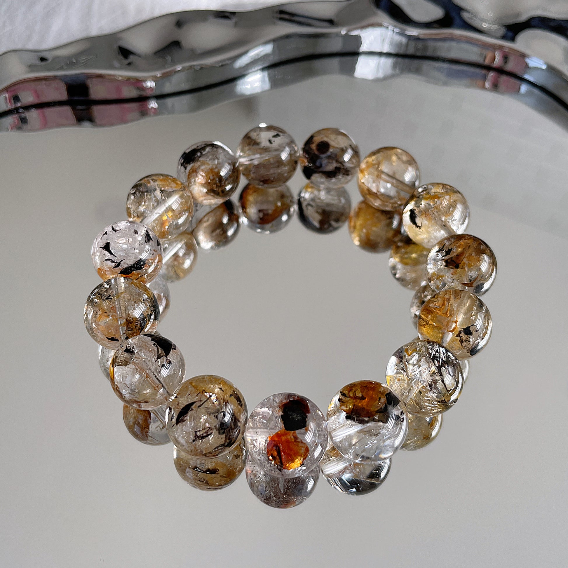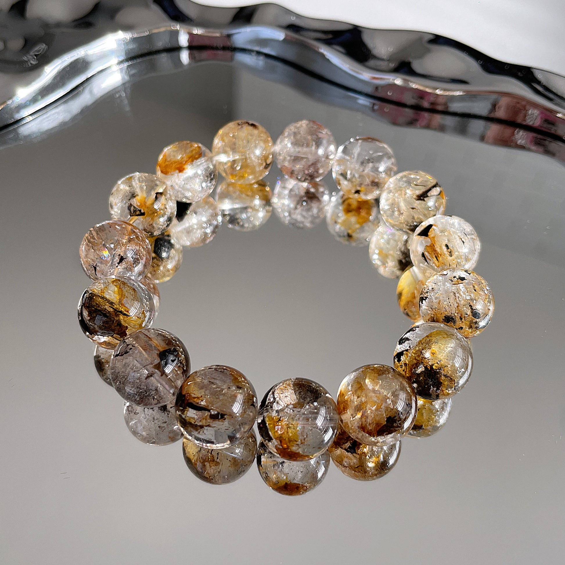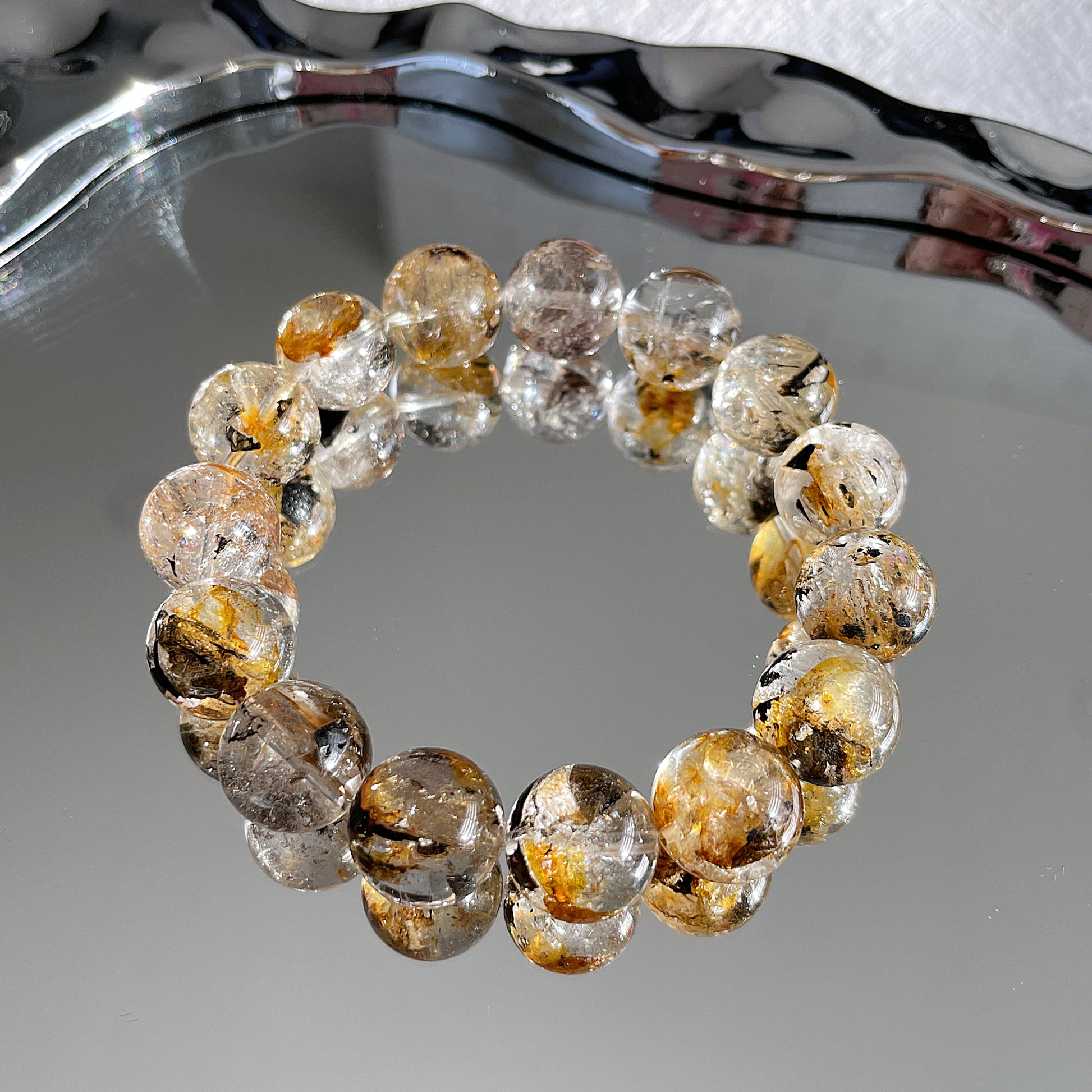 Black & Yellow Skeleton Herkimer Diamond Beaded Bracelet 閃靈骸骨