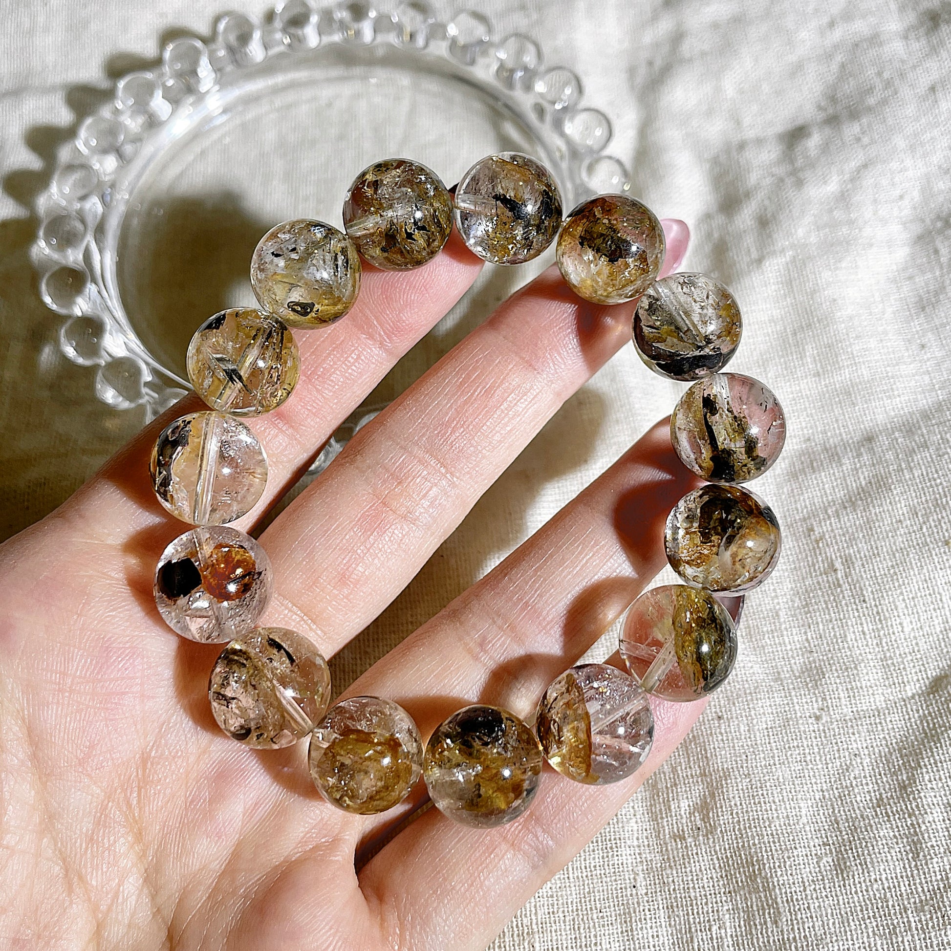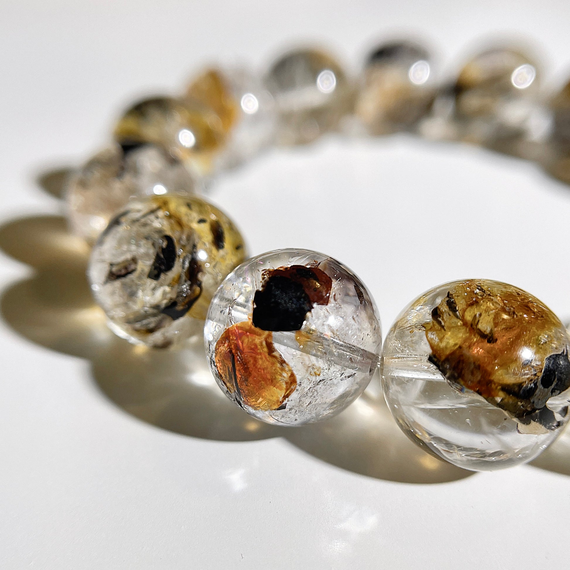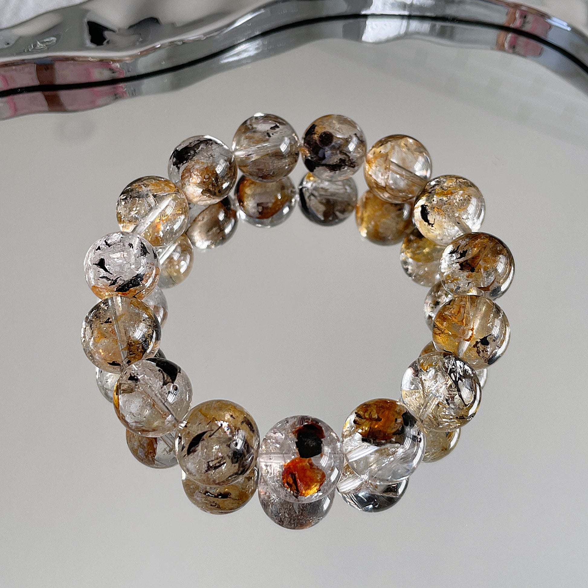 Black & Yellow Skeleton Herkimer Diamond Beaded Bracelet 閃靈骸骨