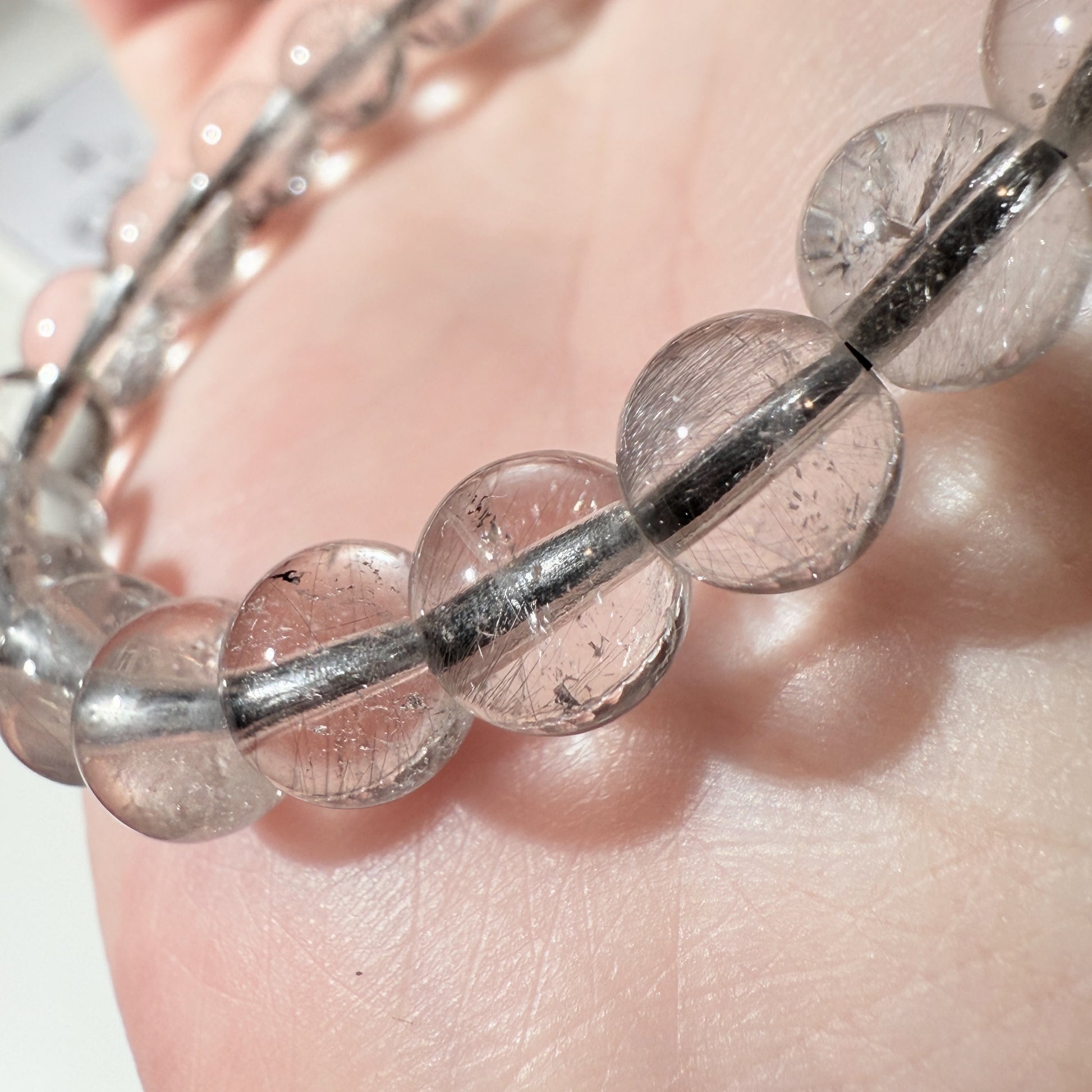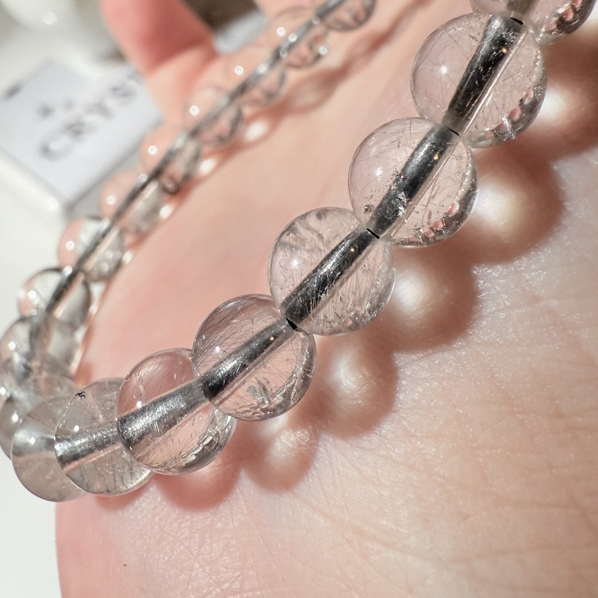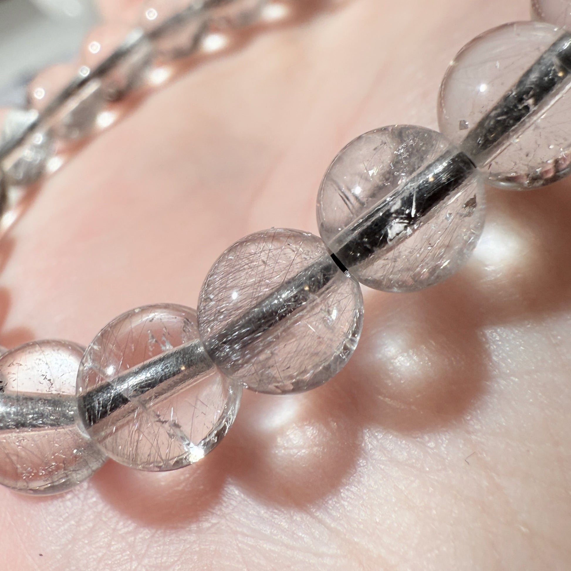Brookite in Quartz Black Silver Rutile Brookite Inclusions Beaded Bracelet
