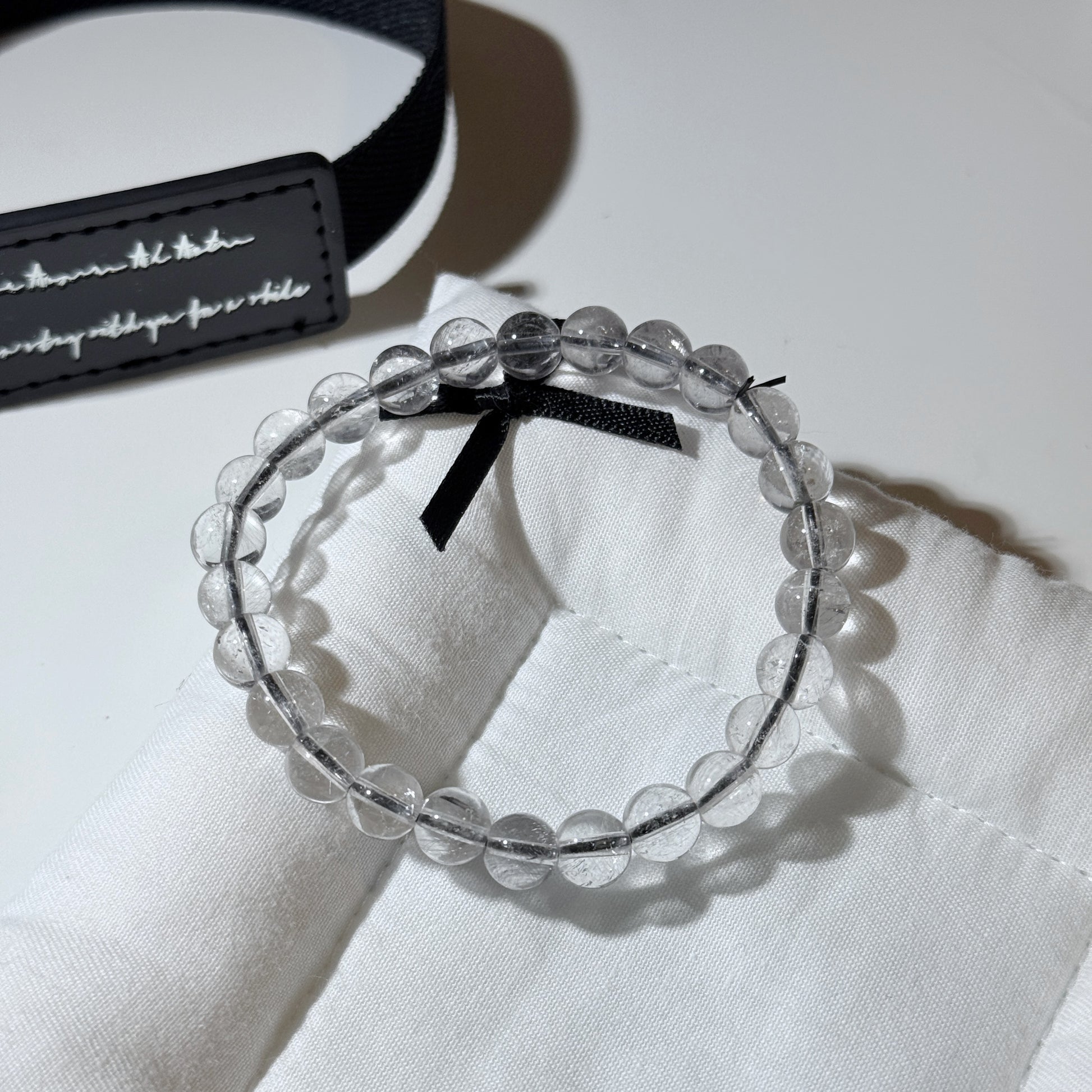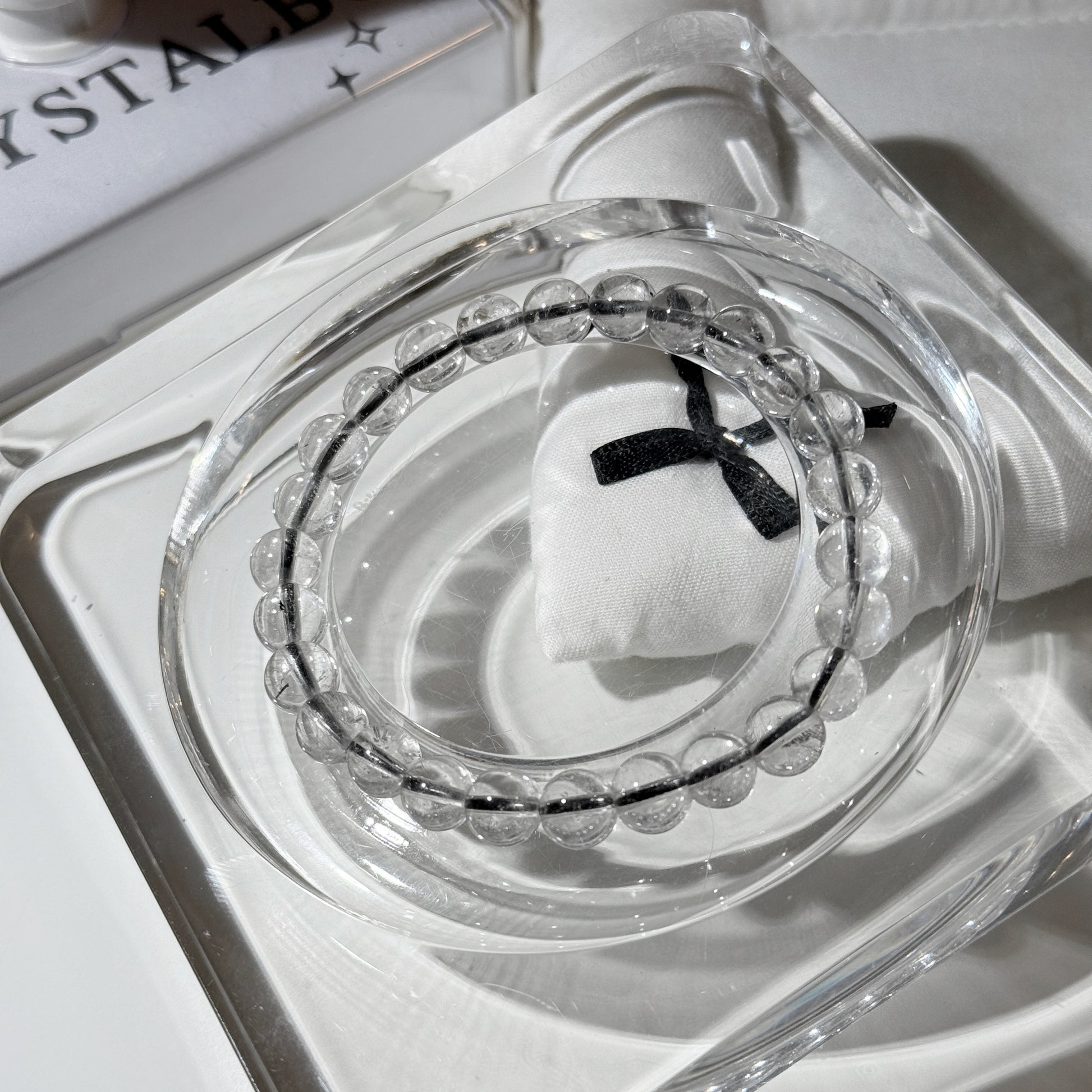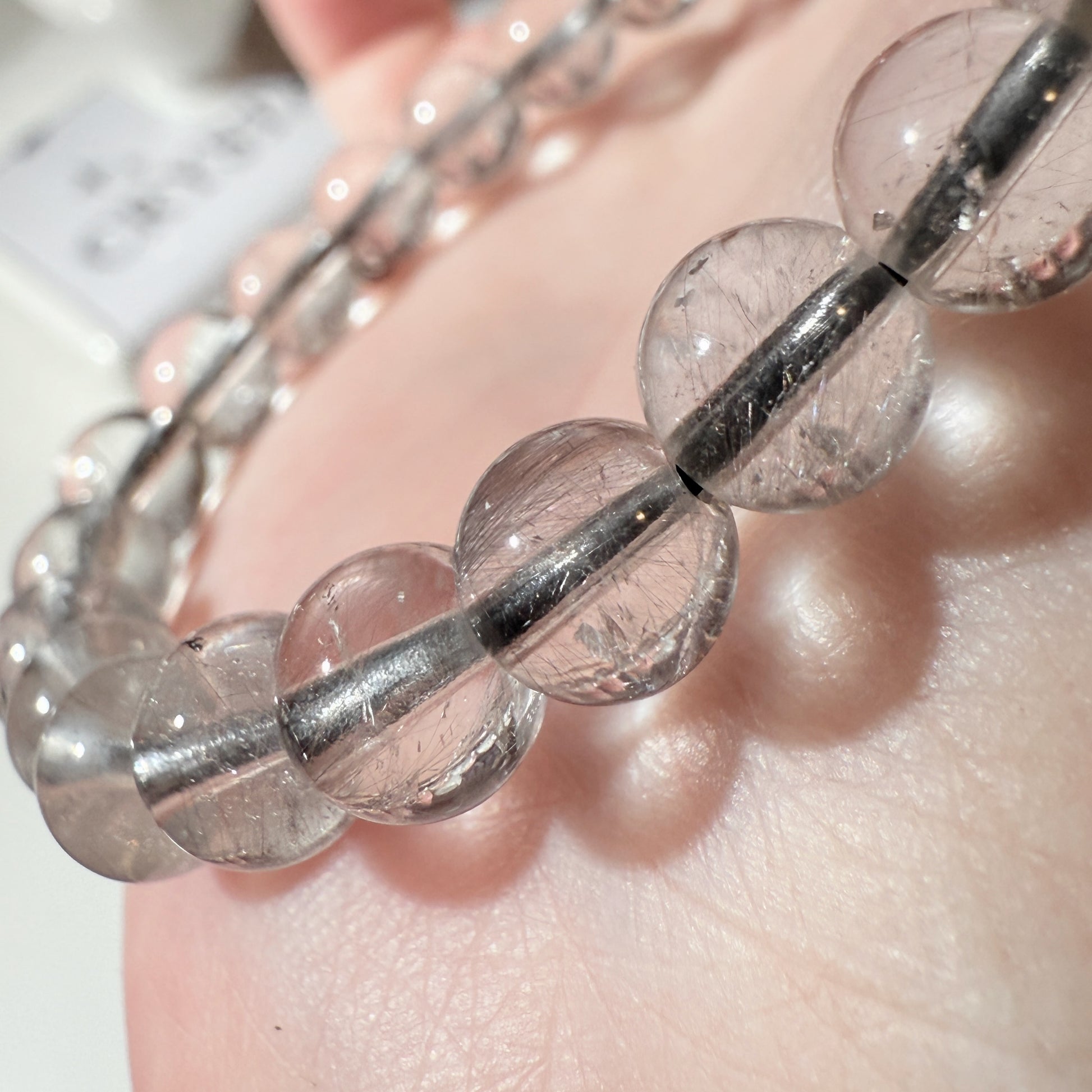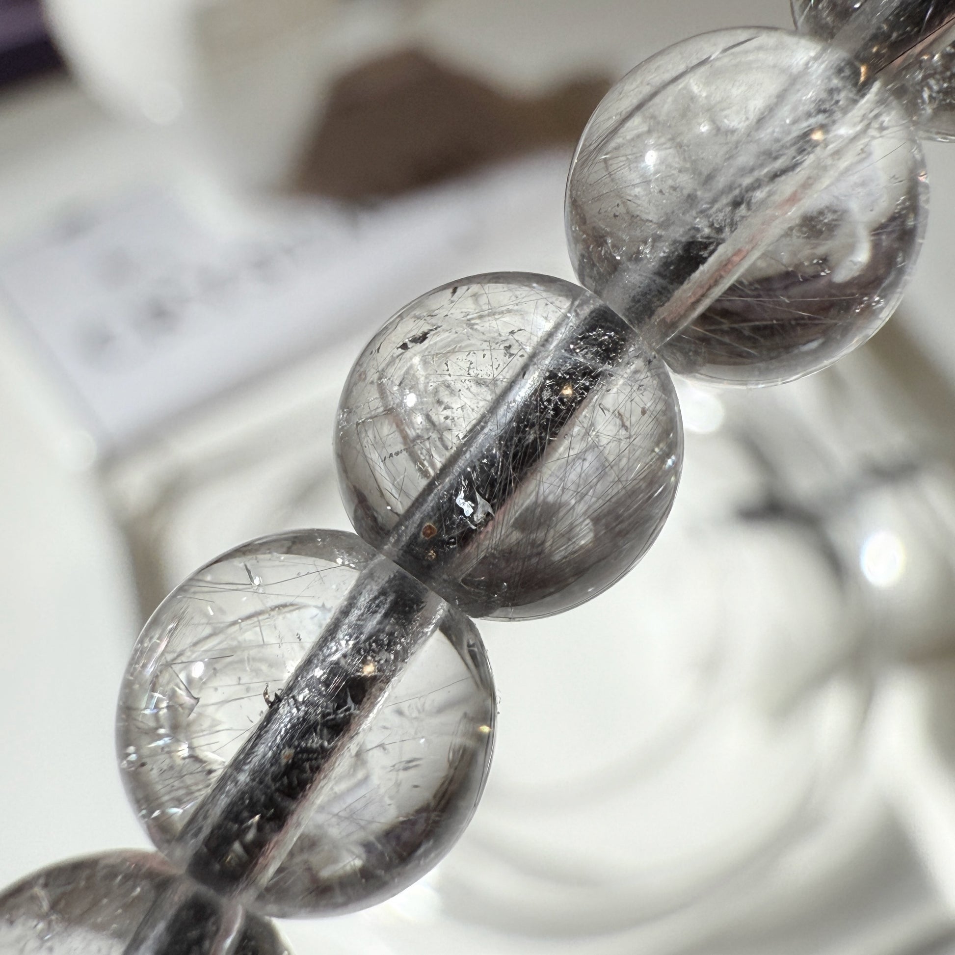 Brookite in Quartz Black Silver Rutile Brookite Inclusions Beaded Bracelet