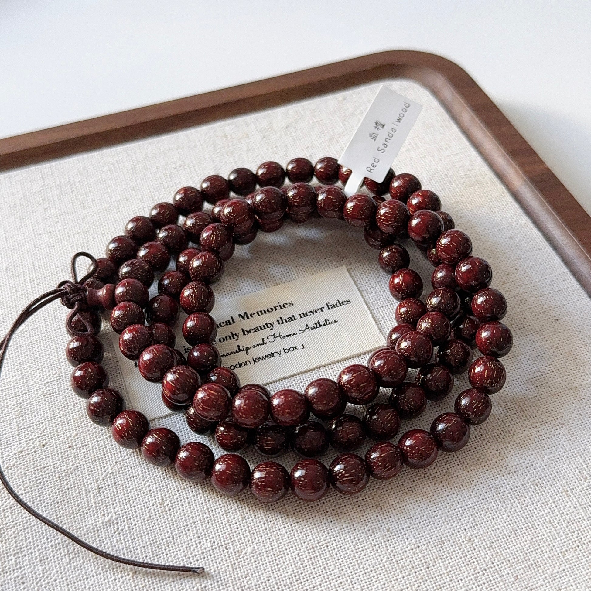 Buddha Tibetan Red Sandalwood 108 Mala Bead Bracelet