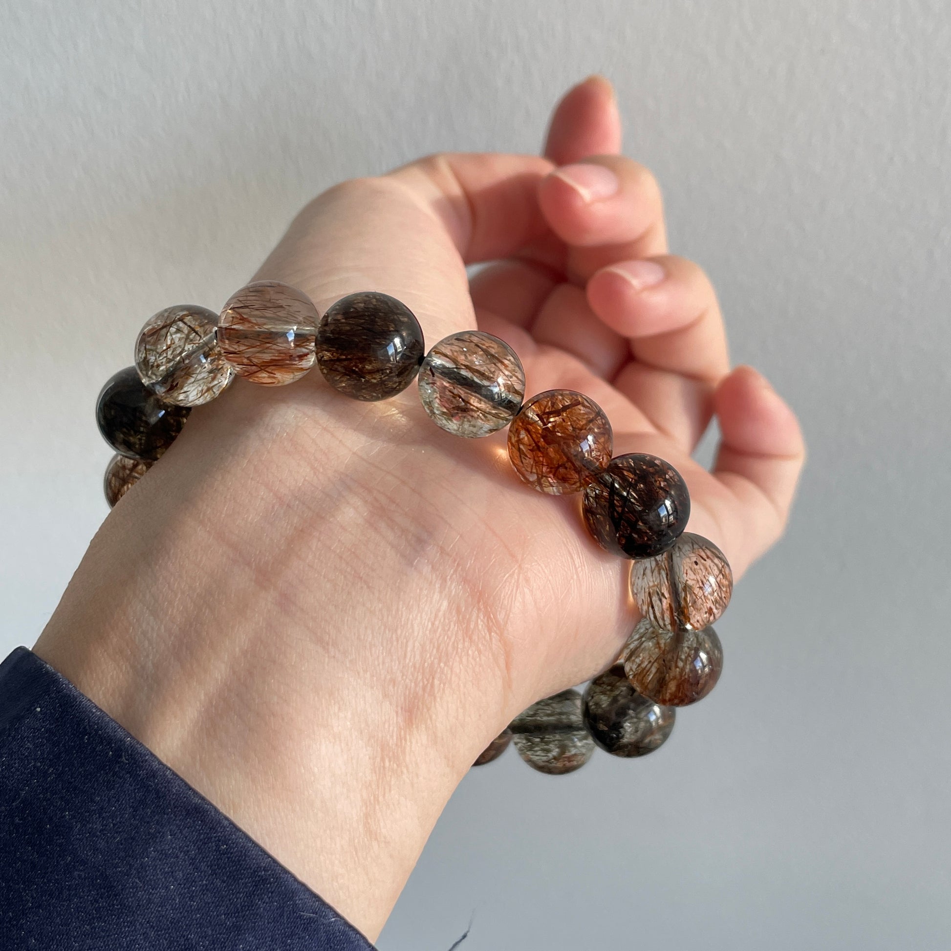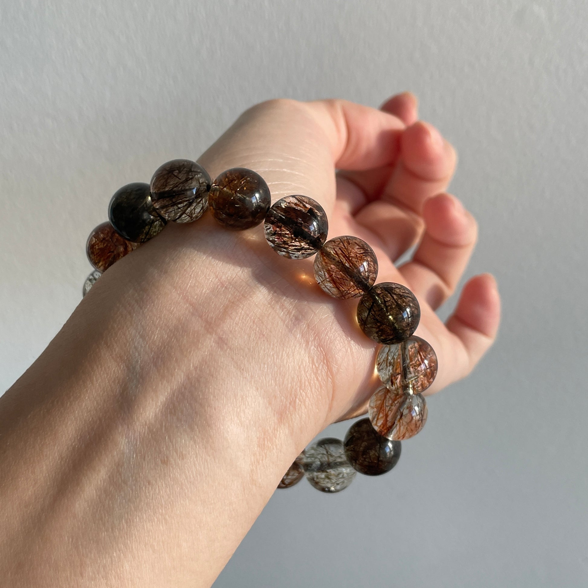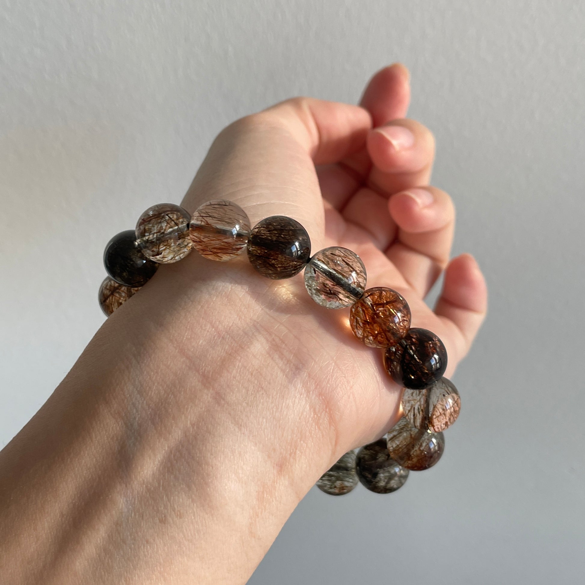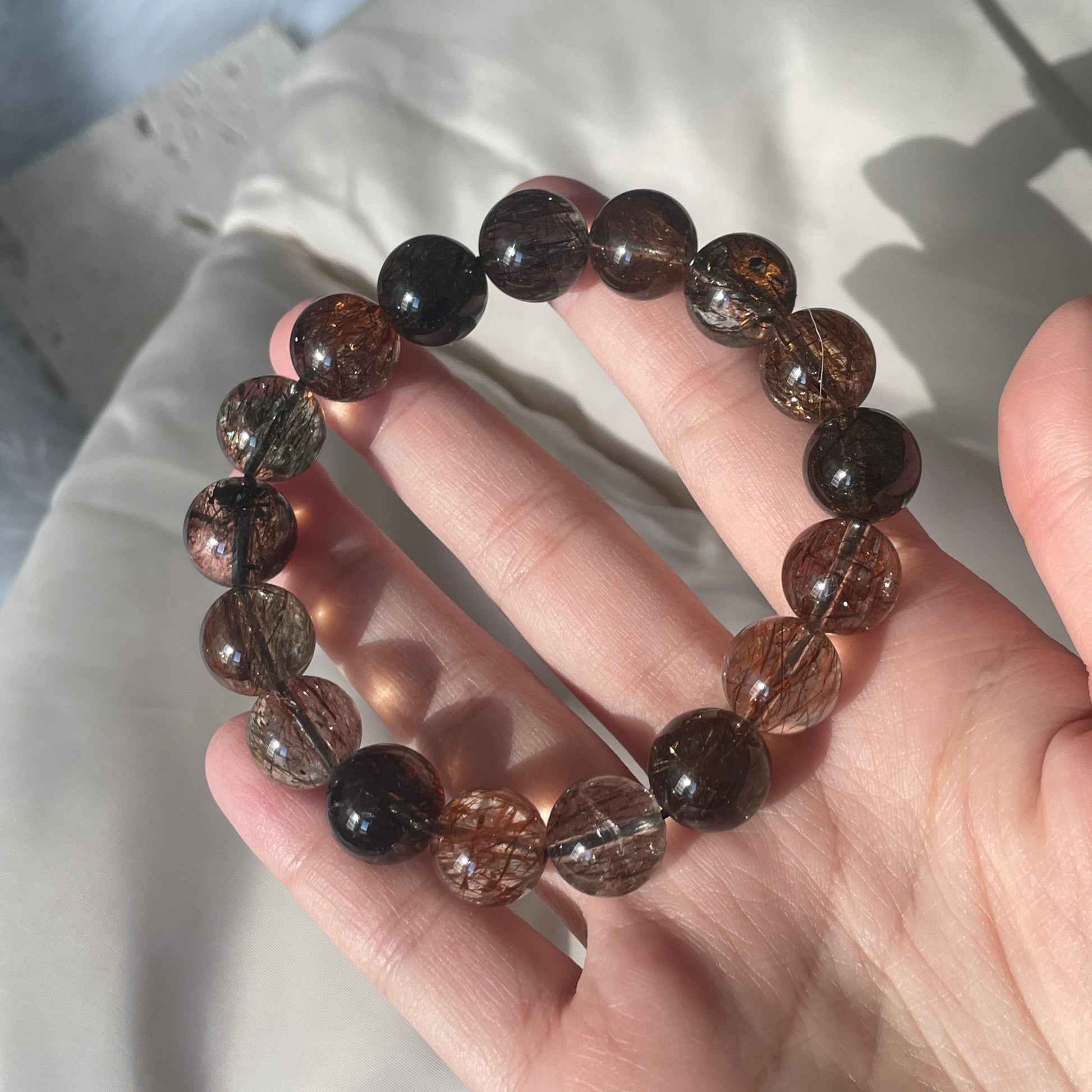 Black Gold Super Seven/ Rutilated Quartz Bead Bracelet