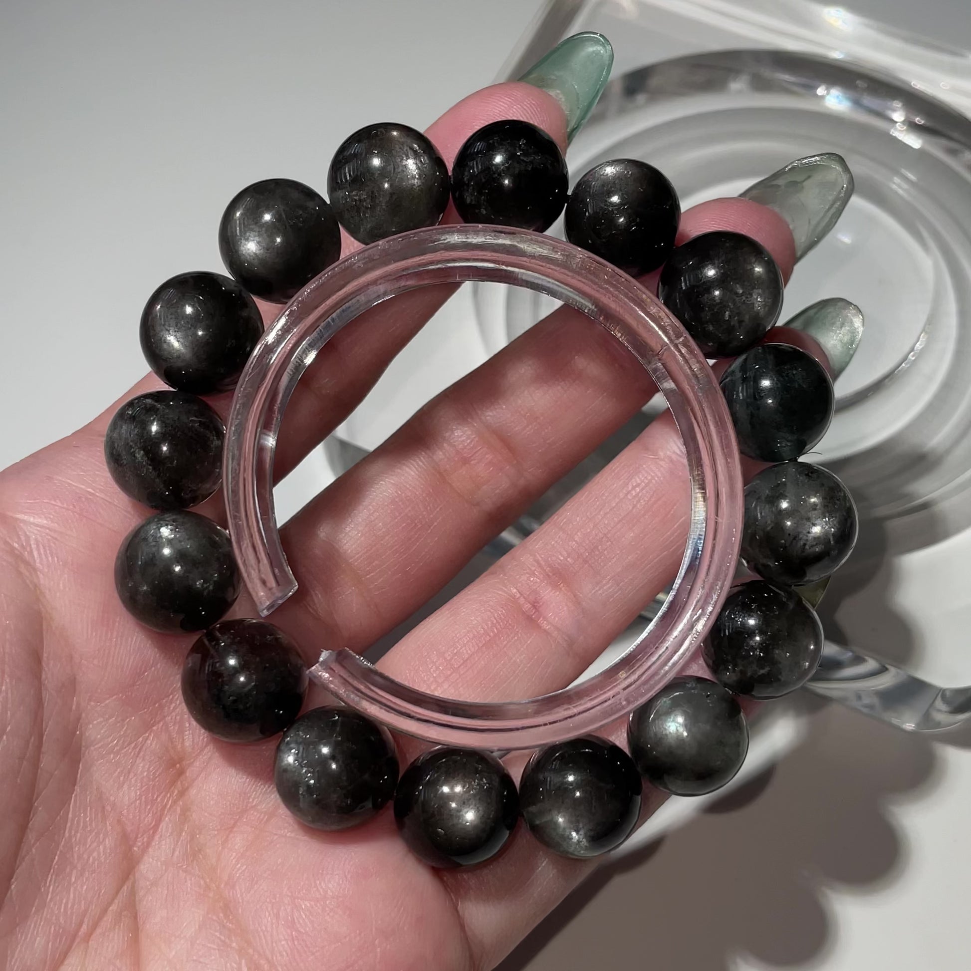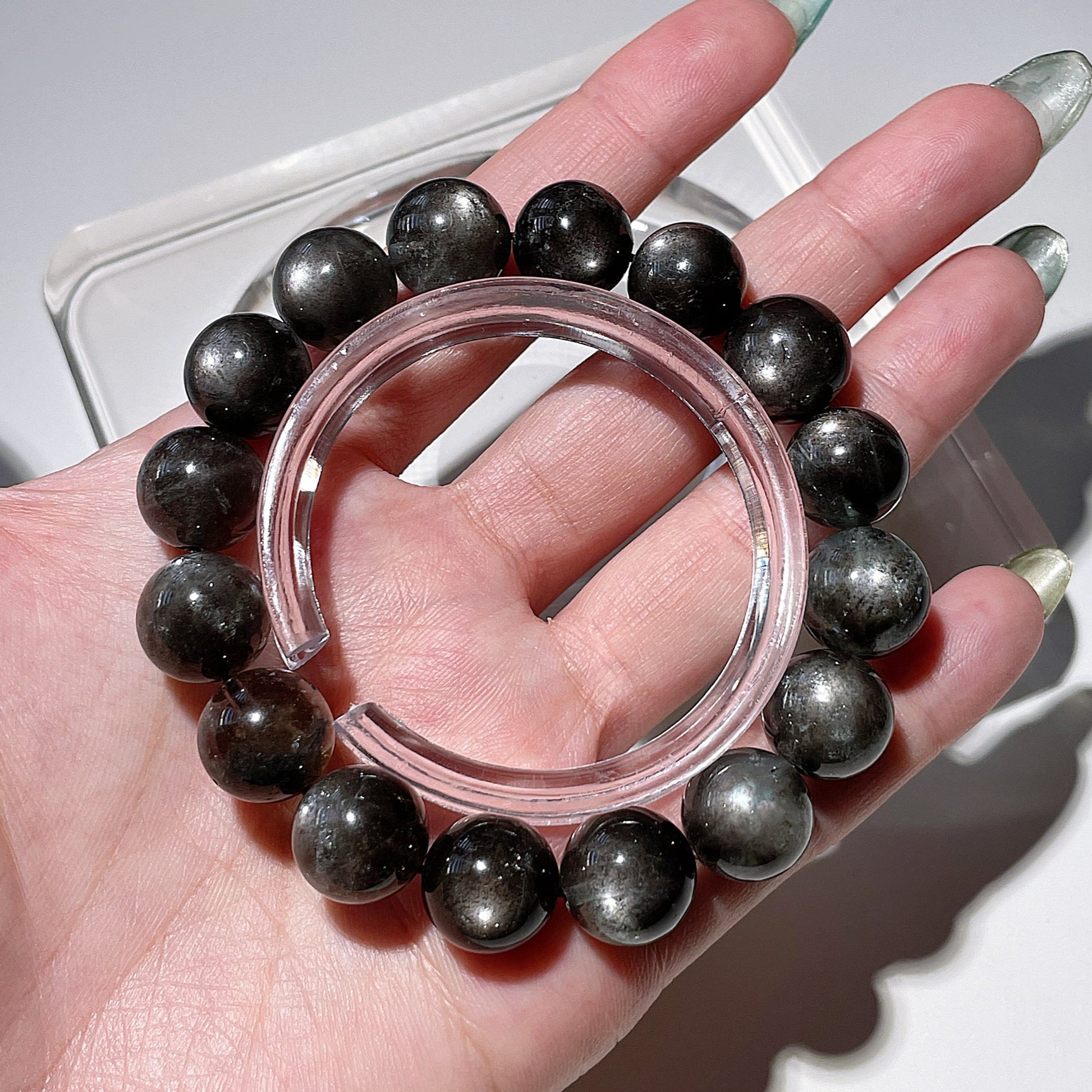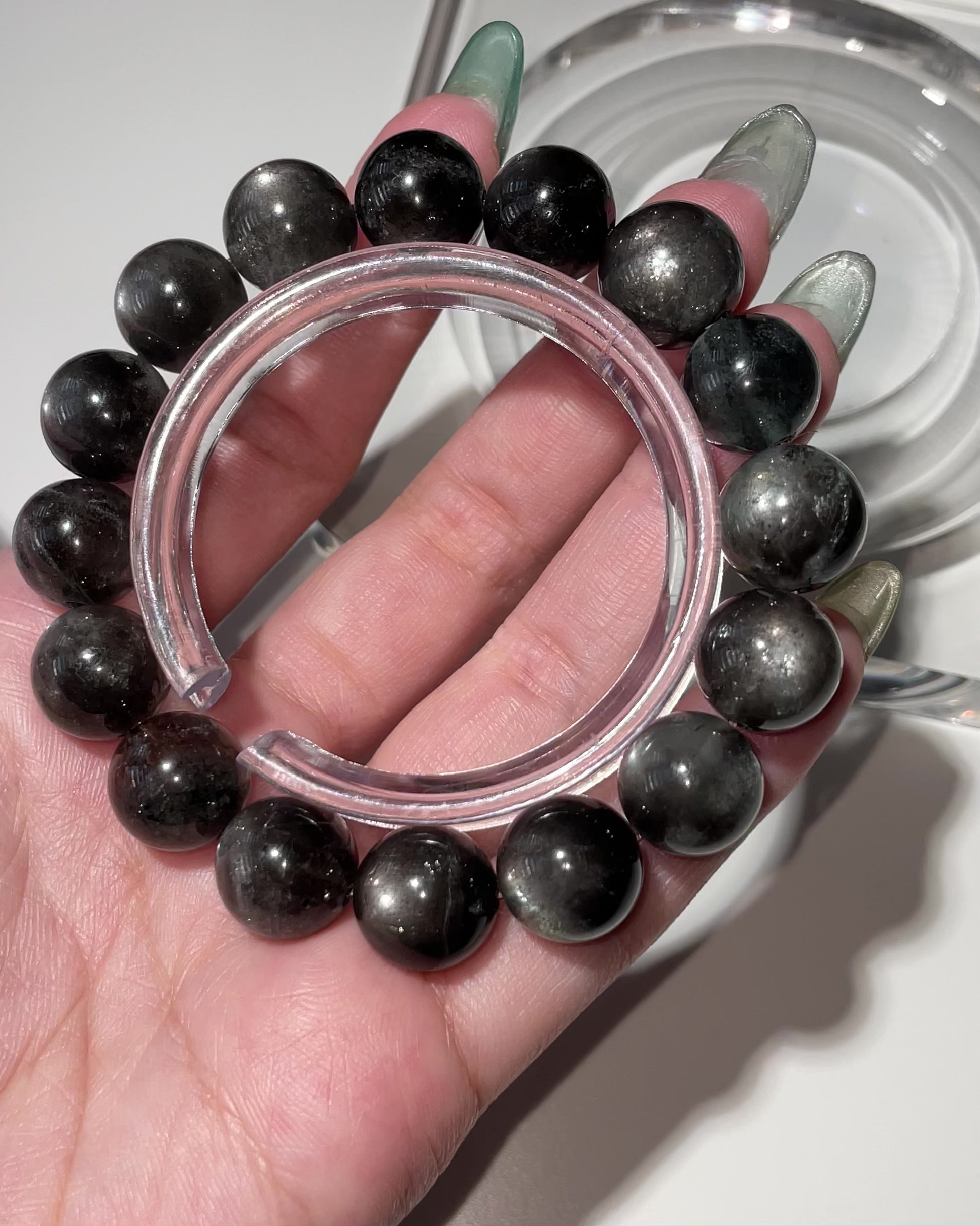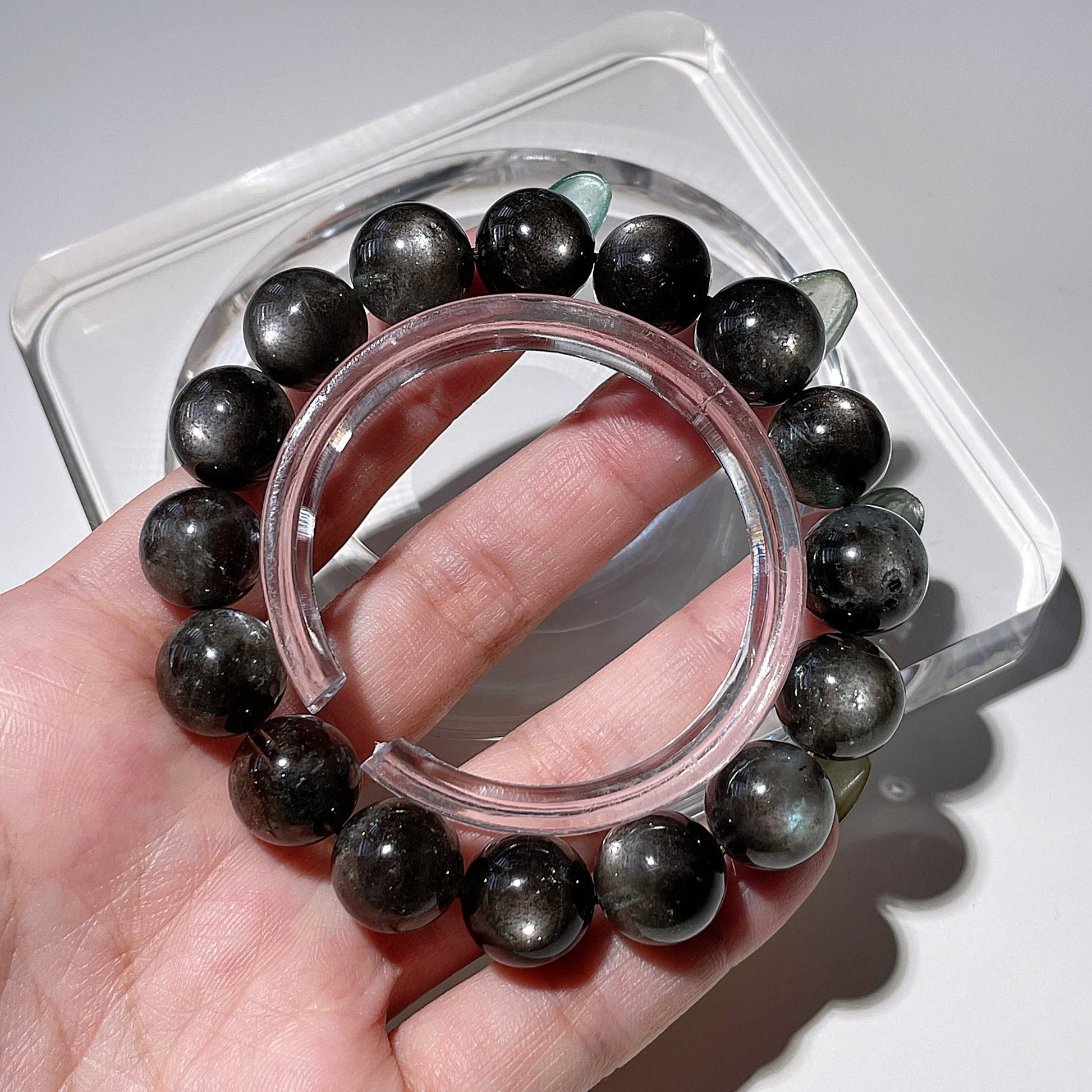 Devil Black Sheen Aquamarine Beaded Bracelet