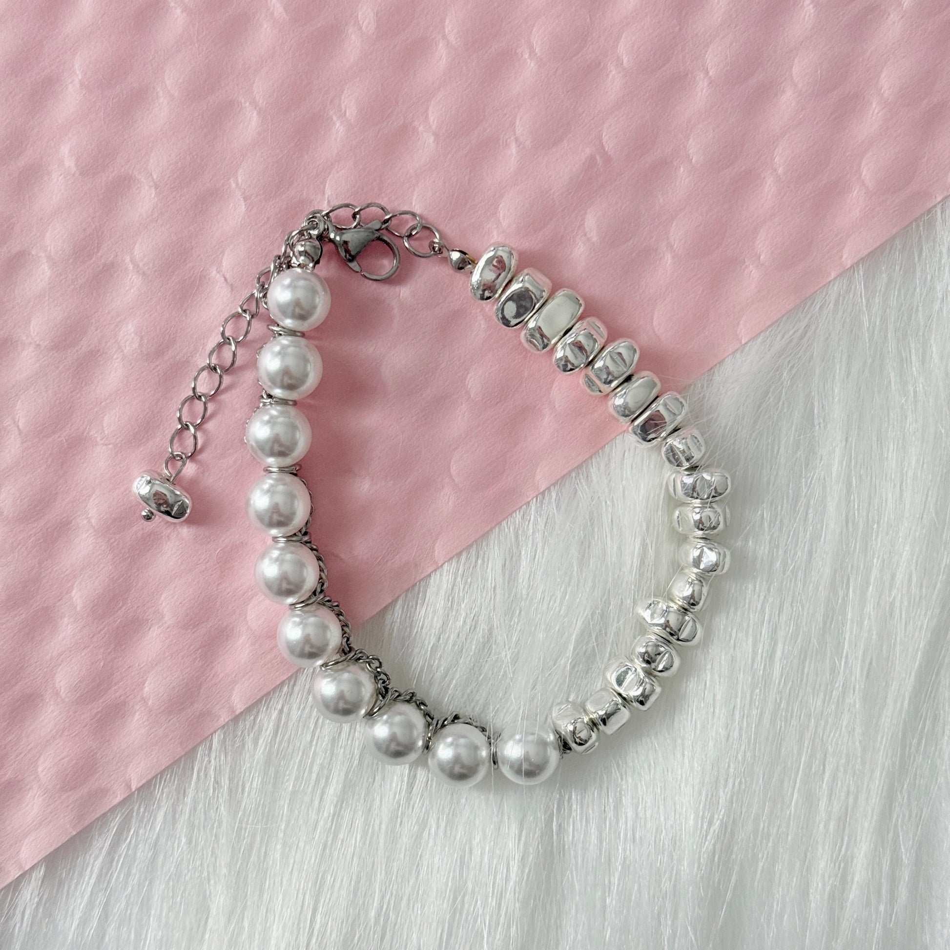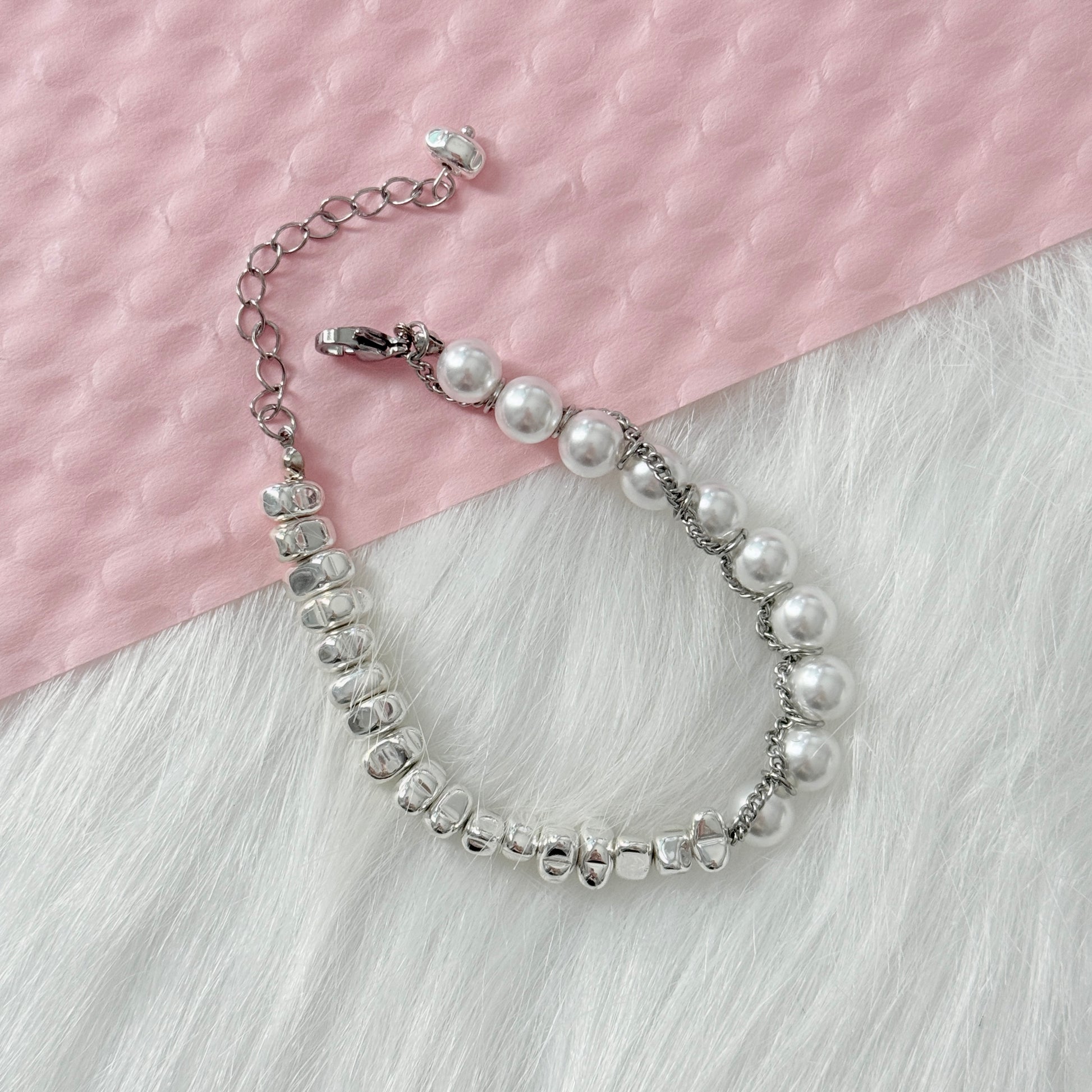 Heavily Silver-Plated Pearl Hematite Bracelet