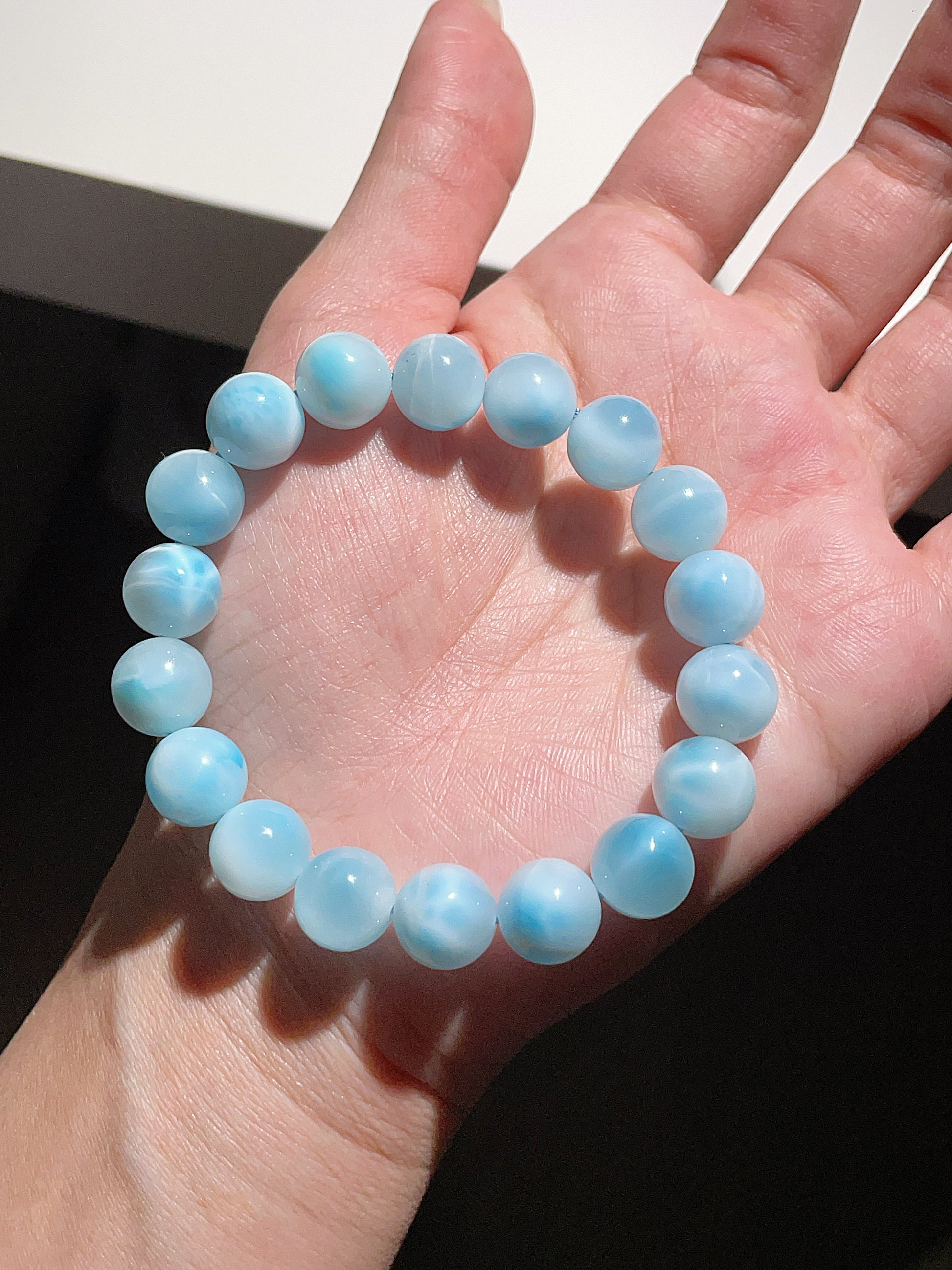 Larimar symbolizes clear communication and inner wisdom, embodying the calm energies of the sky and the sea. Larimar is known for calming, providing courage, balancing emotions, and guiding people away from self-destructive thoughts.