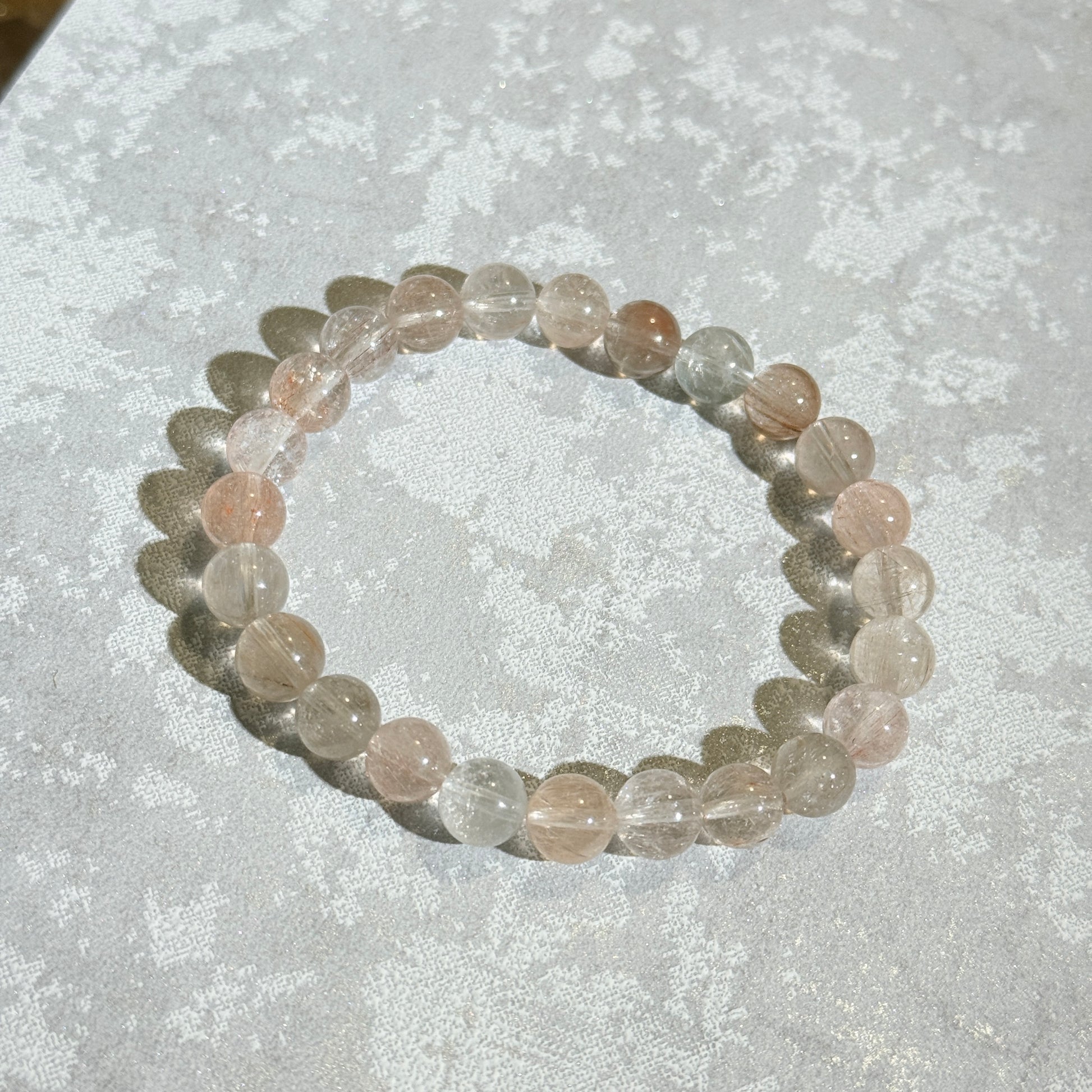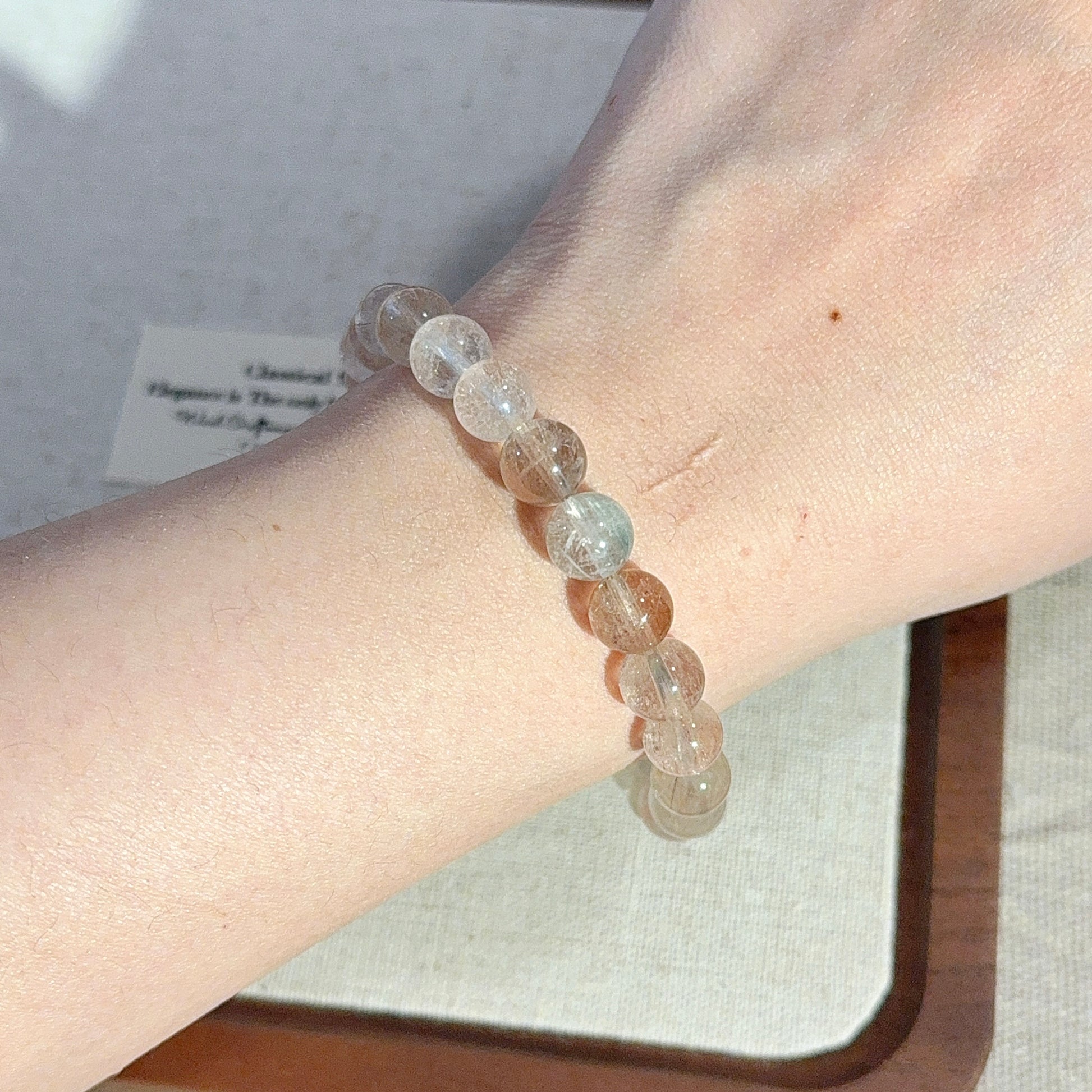 Light Rainbow Rabbit Hair Amphibole 8.3mm Beaded Bracelet