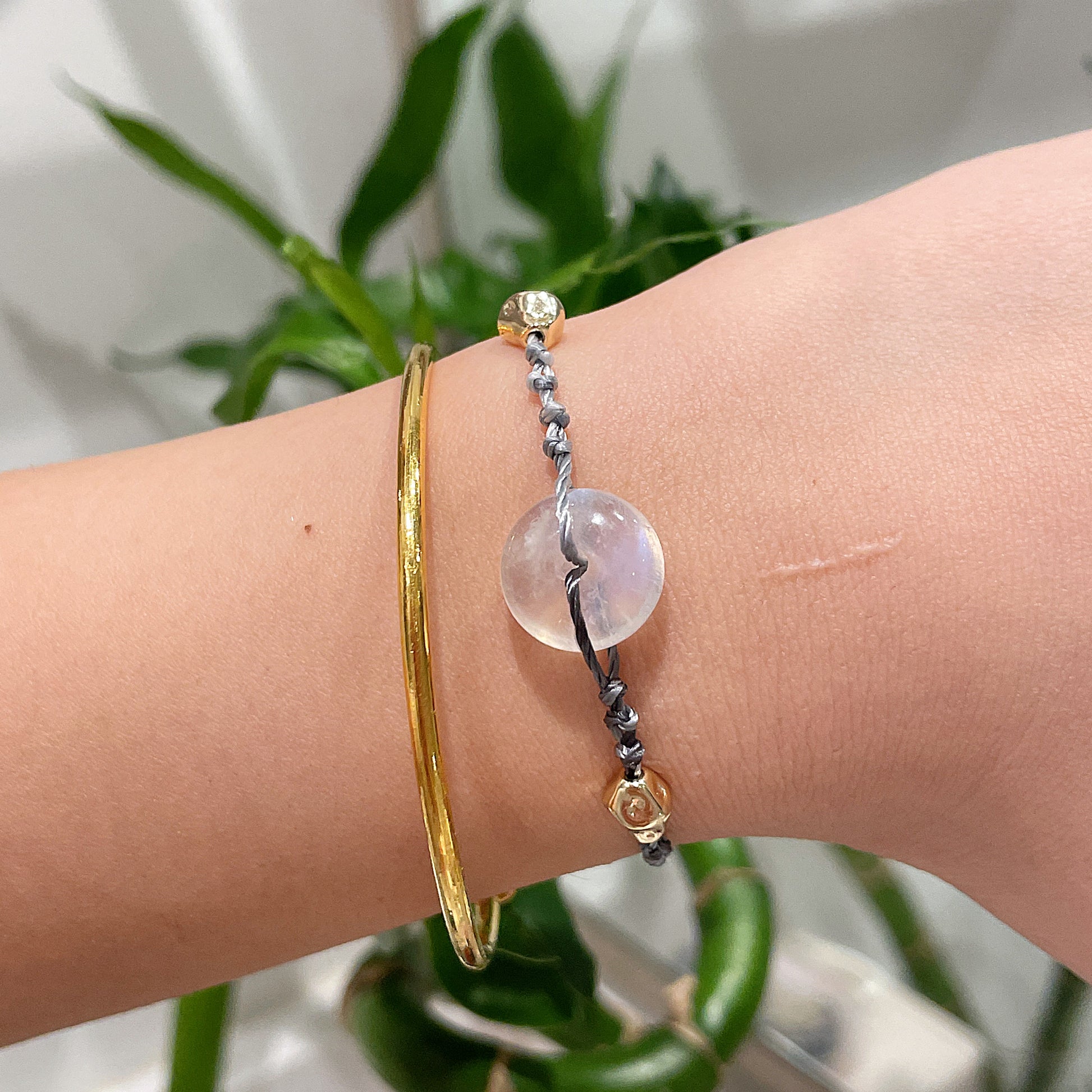 Moonstone Lucky Peace Buckle Braided Bracelet