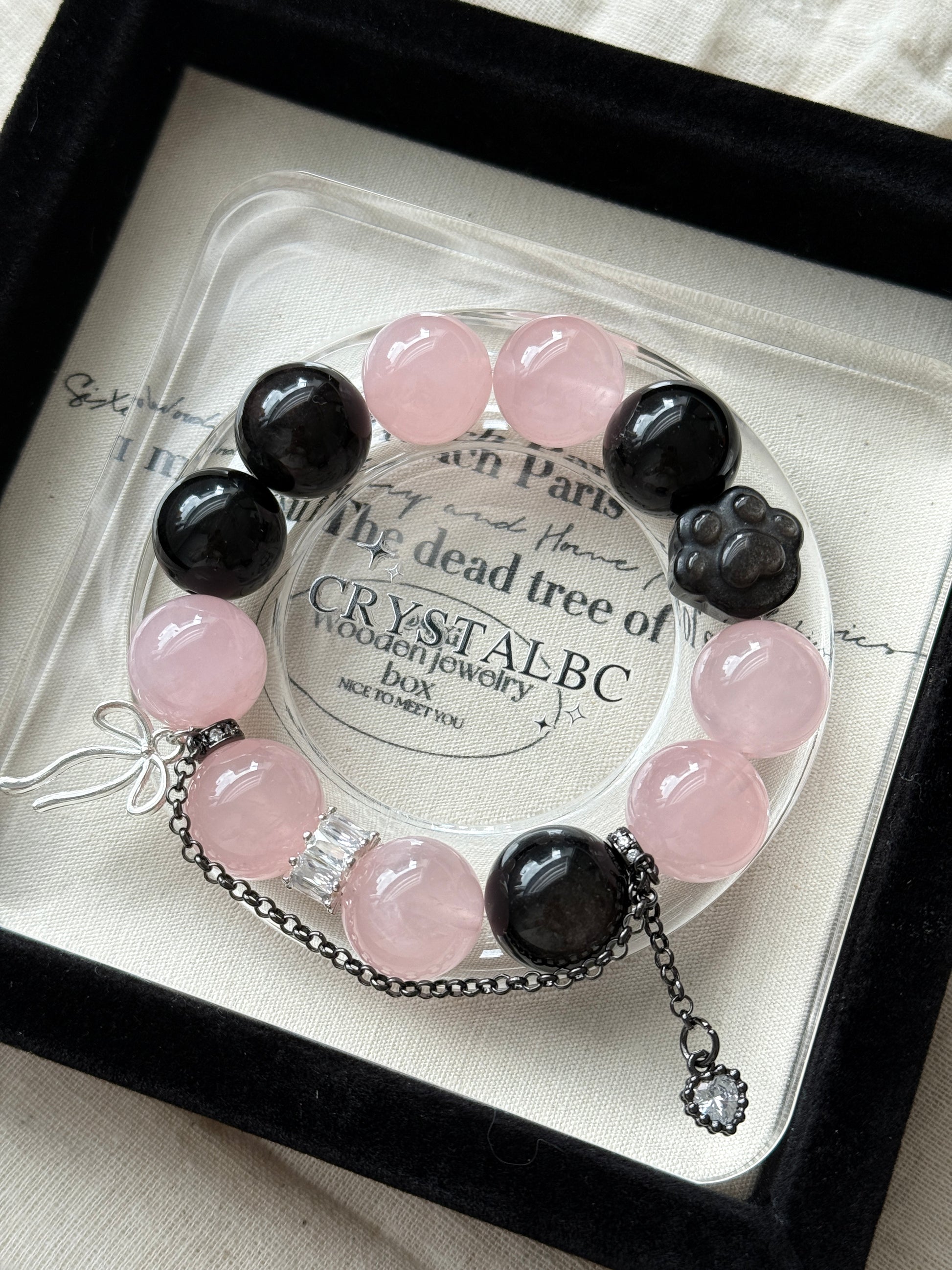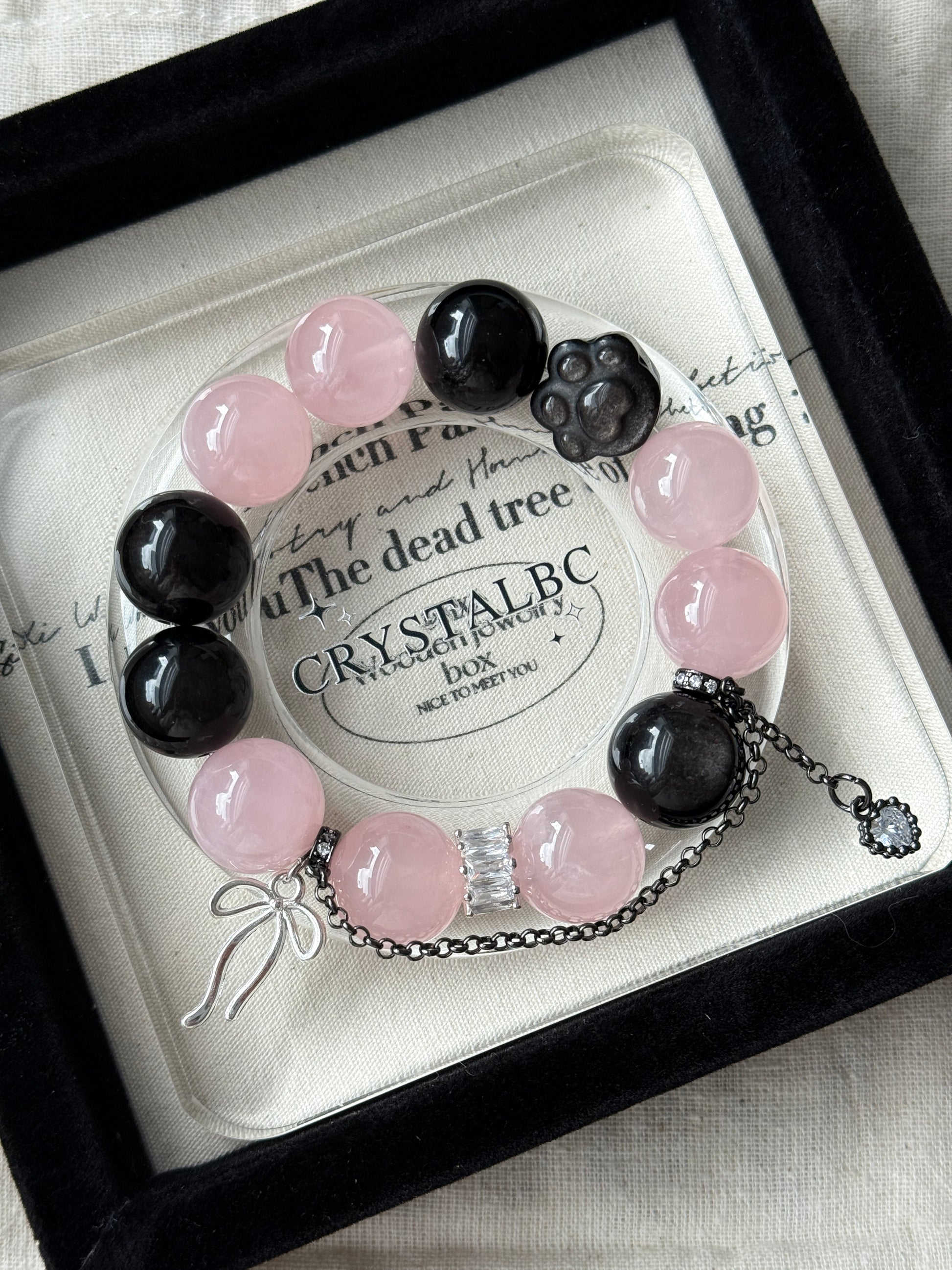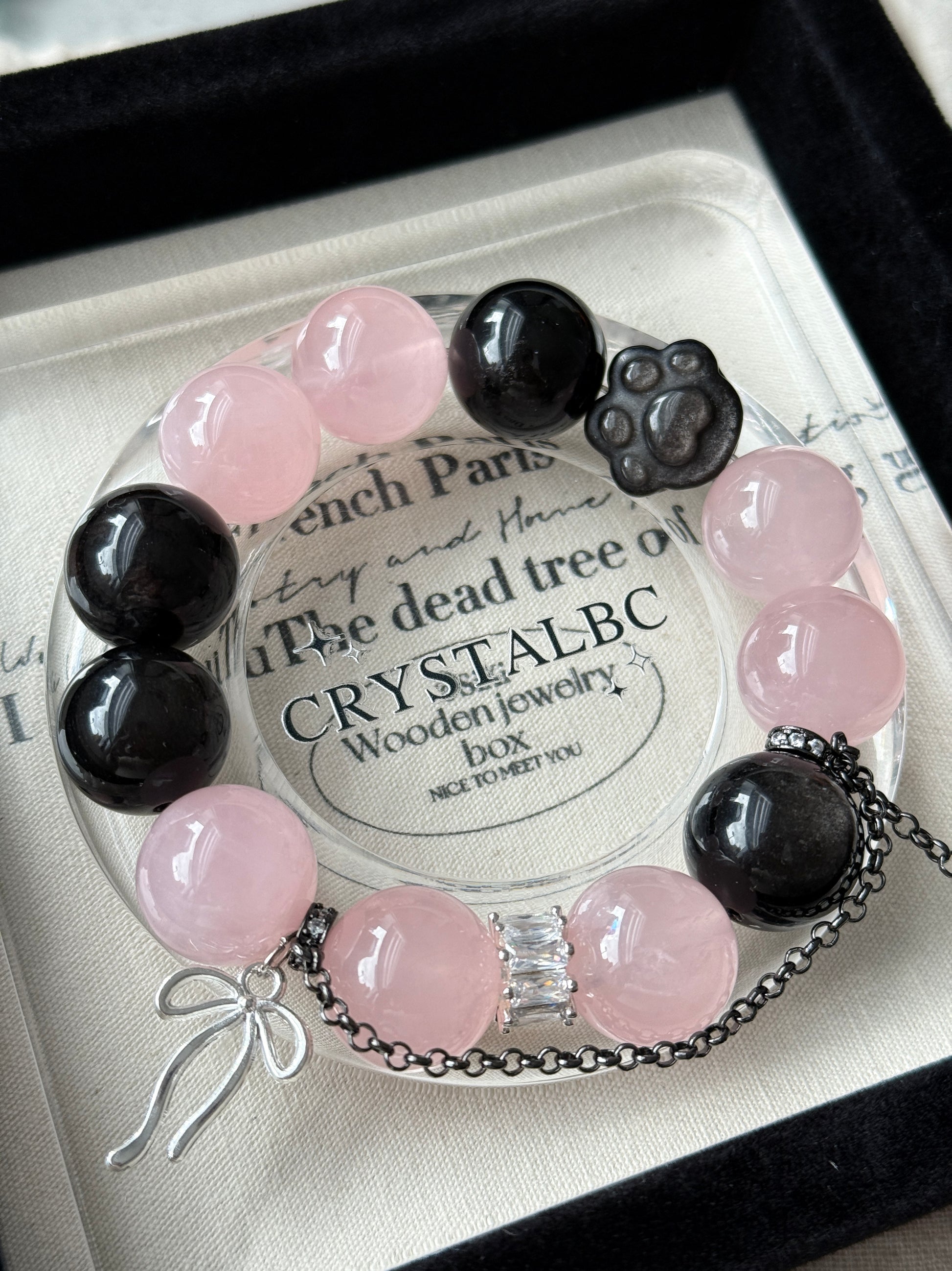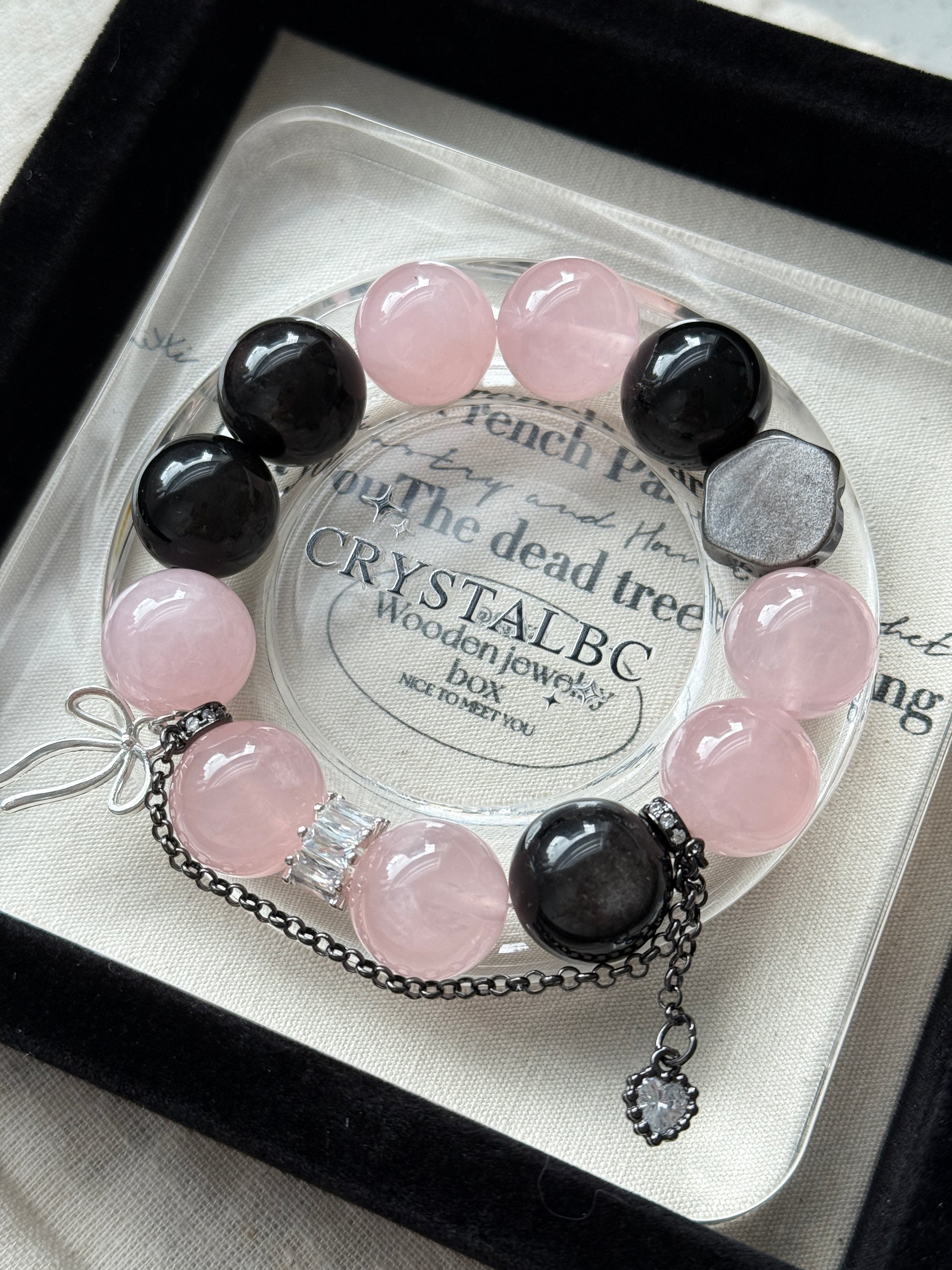 Pink Venom Obsidian Rose Quartz 16mm Beaded Bracelet