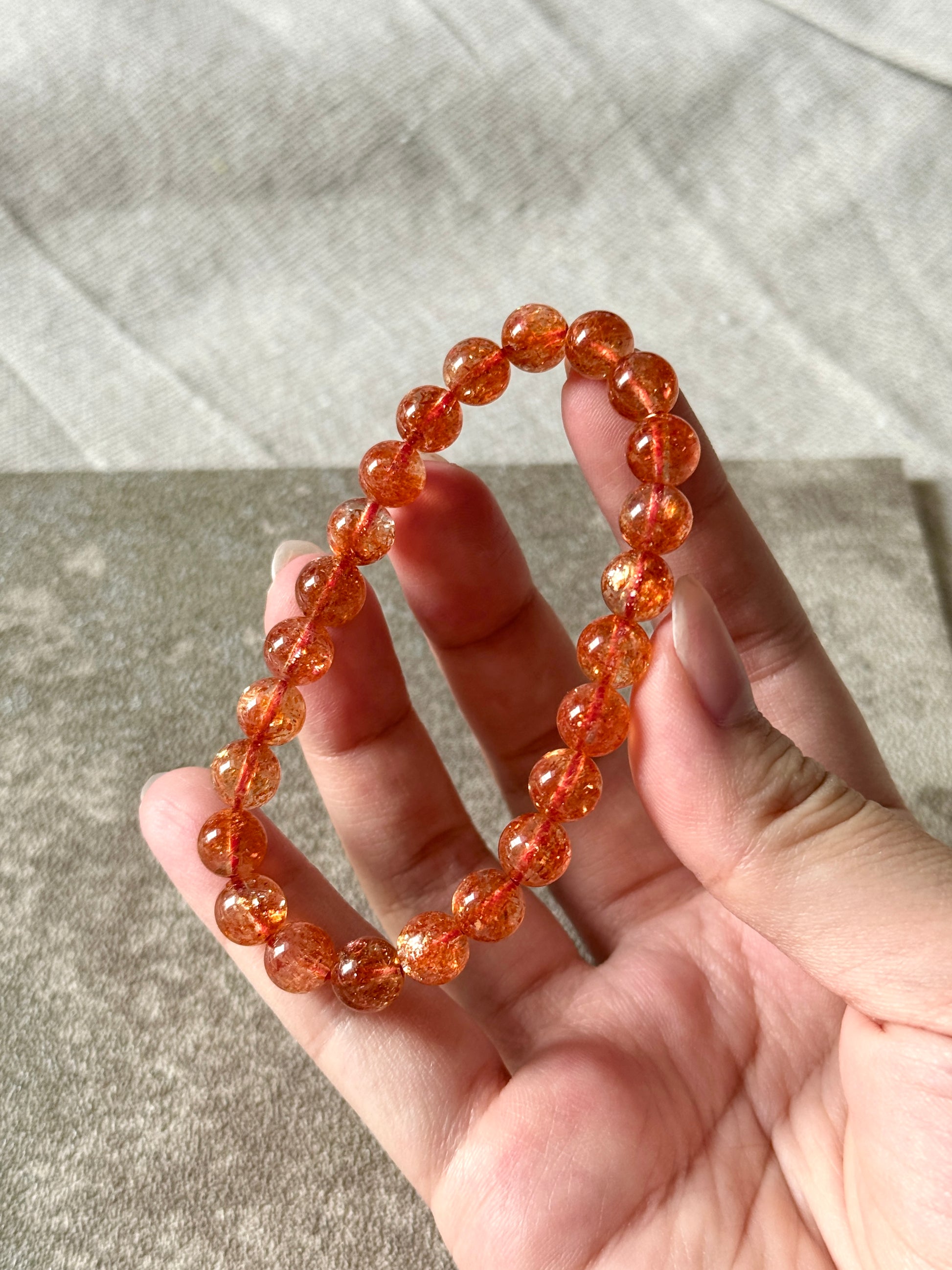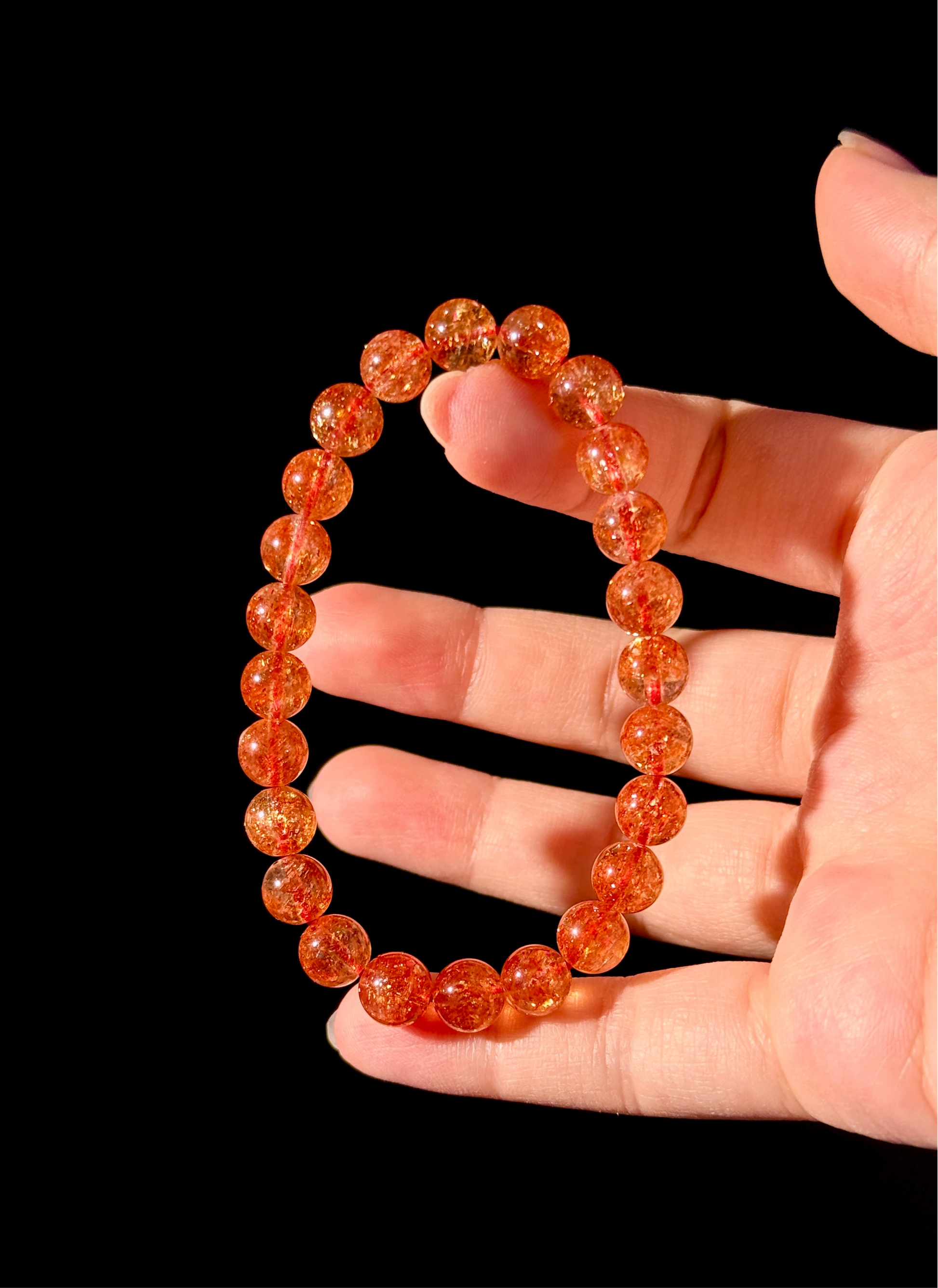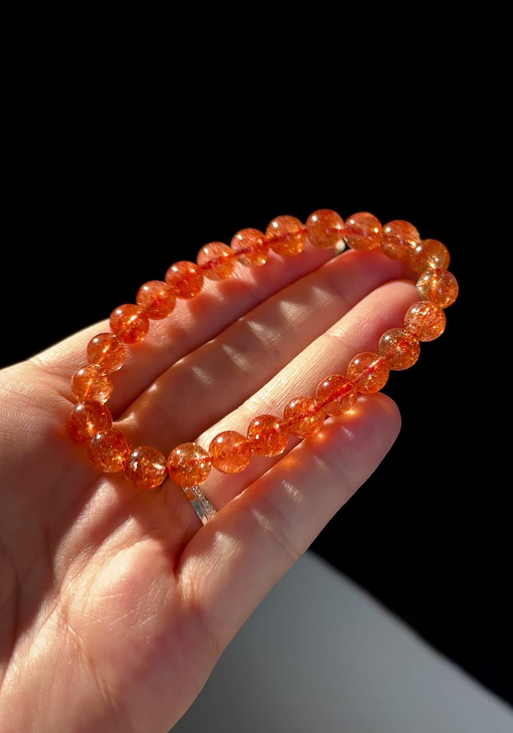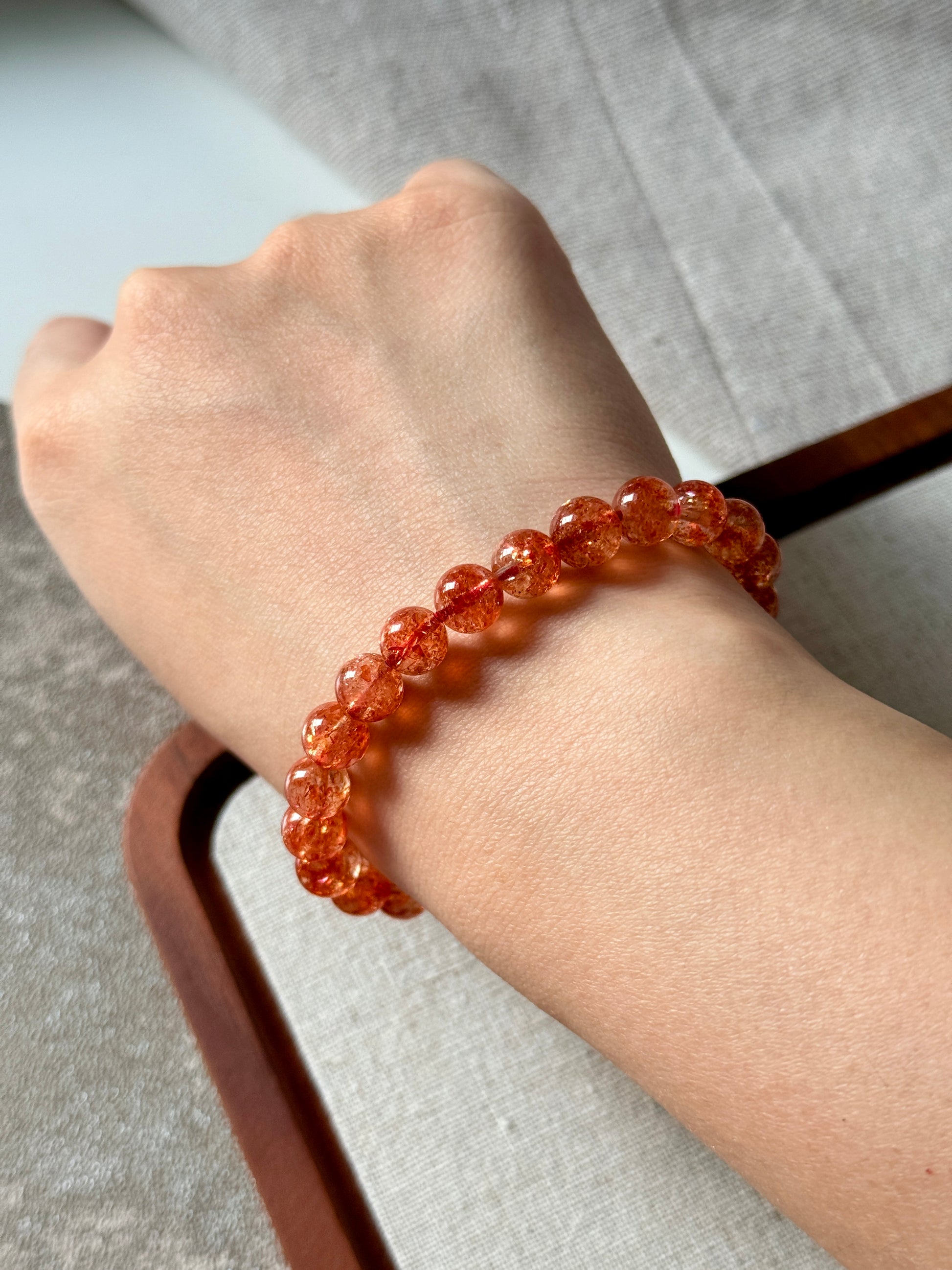 Premium Quality Golden Strawberry Orange Sunstone Beaded Bracelet