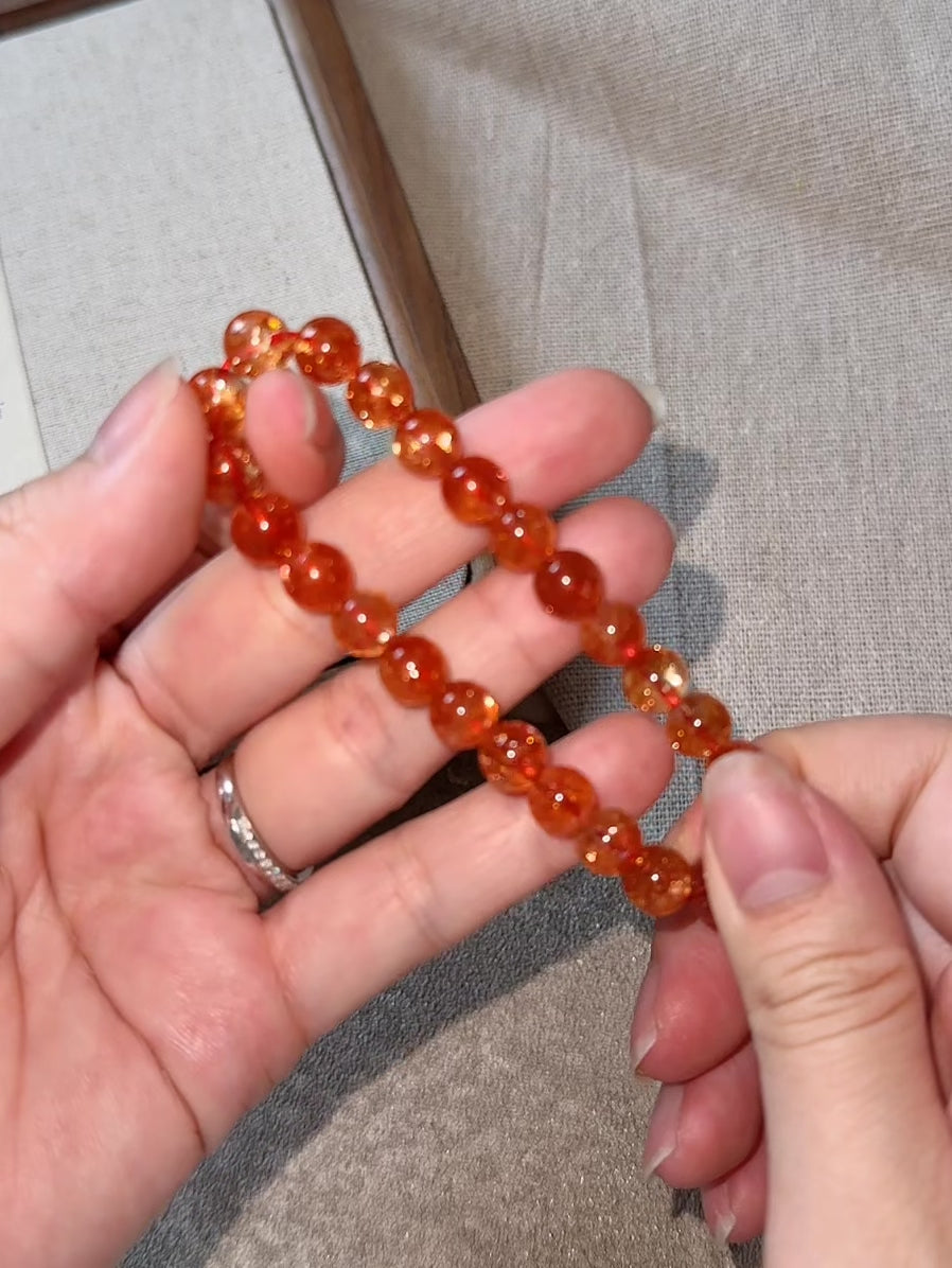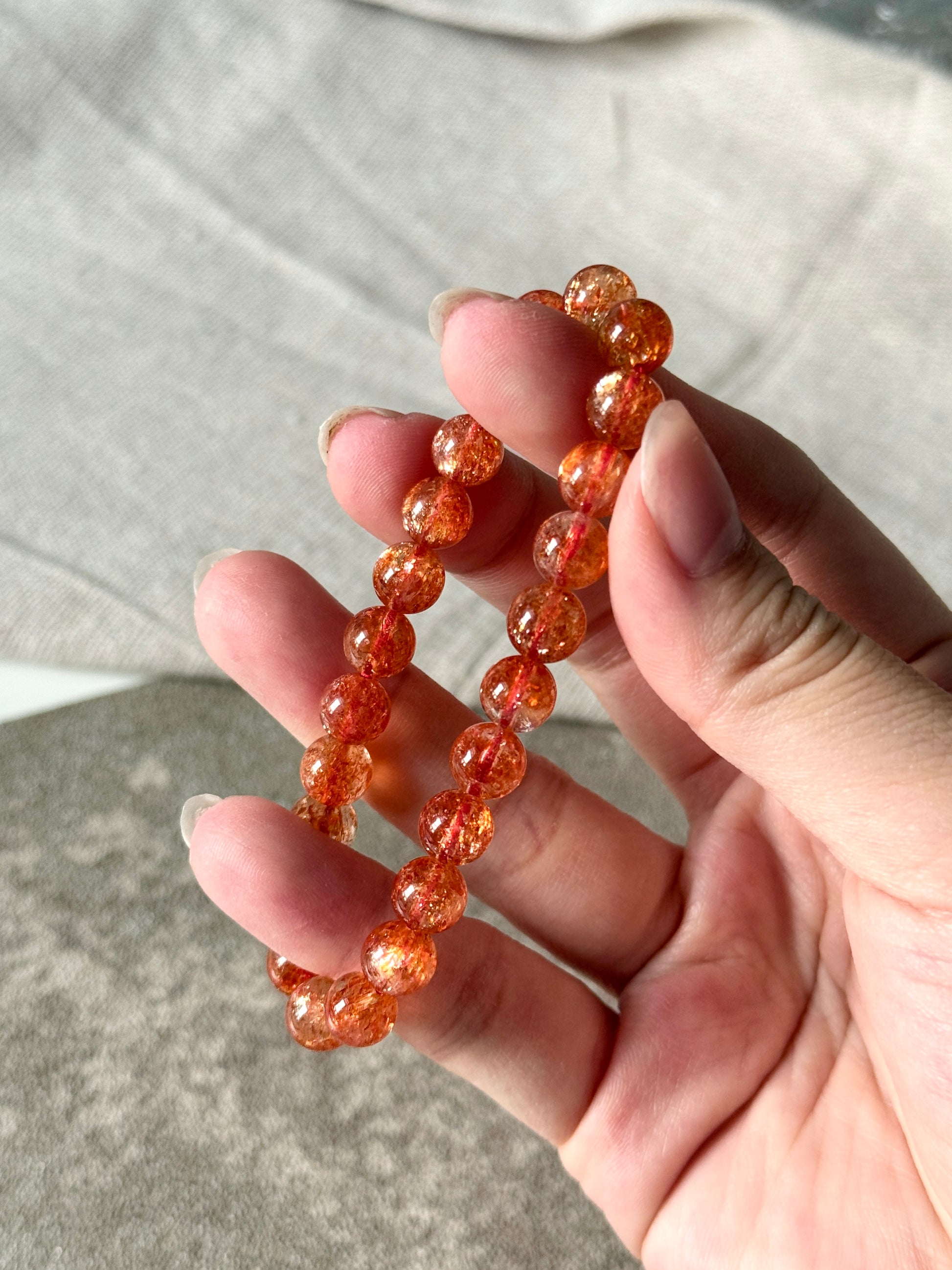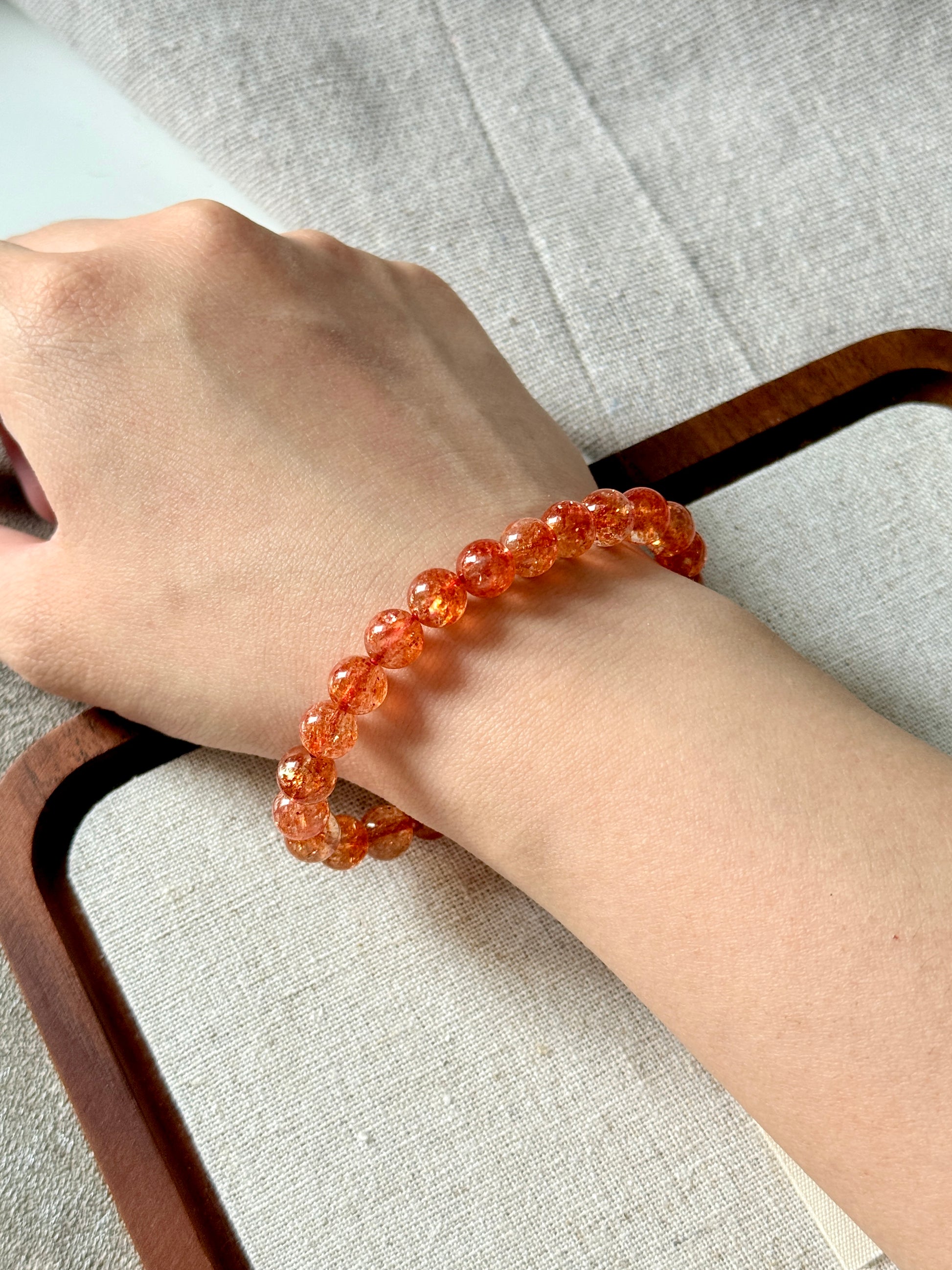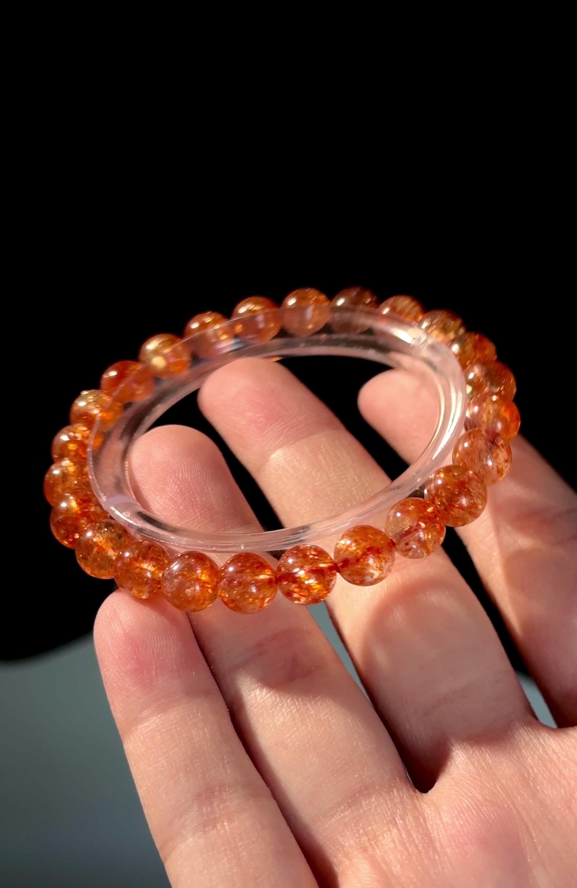 Premium Quality Golden Strawberry Orange Sunstone Beaded Bracelet