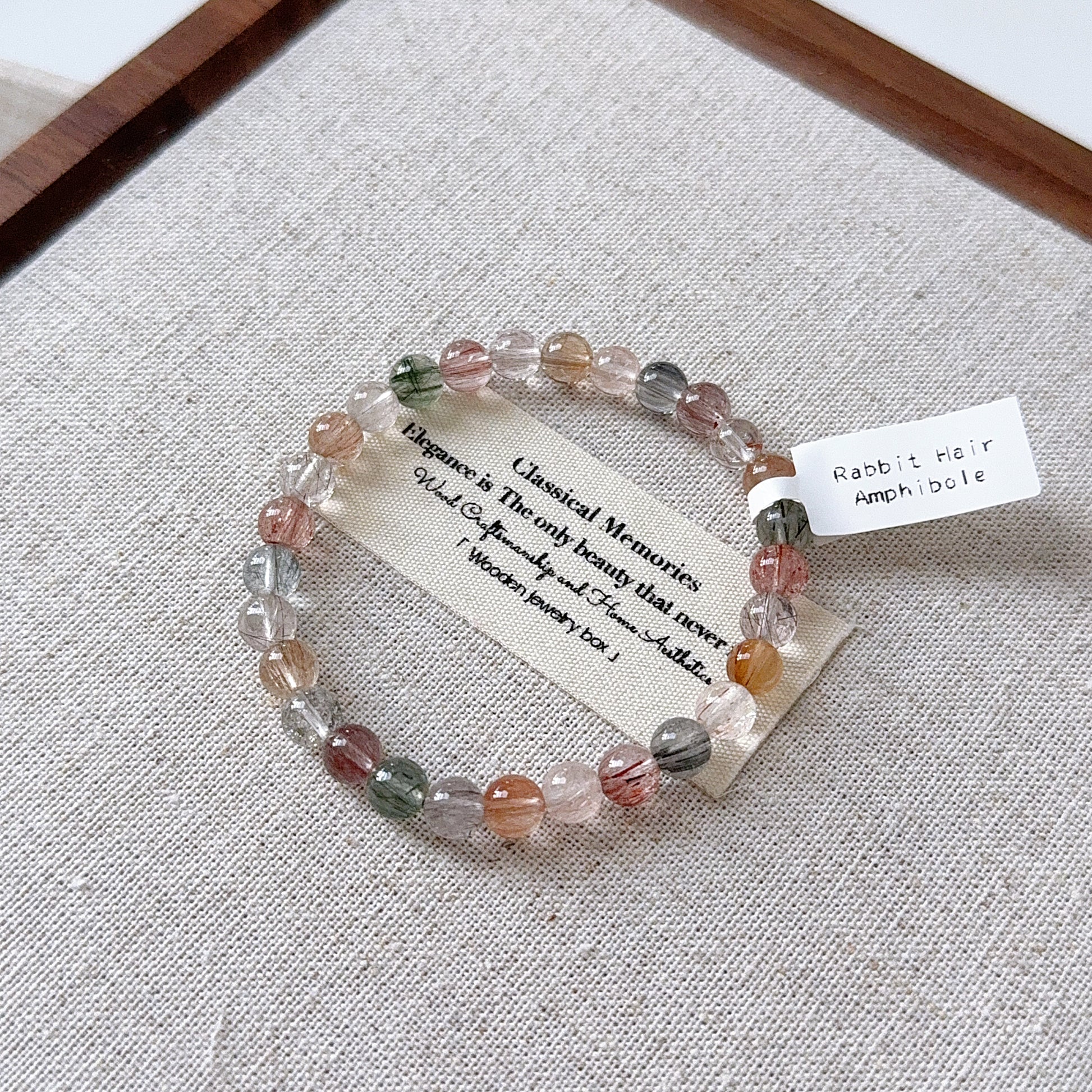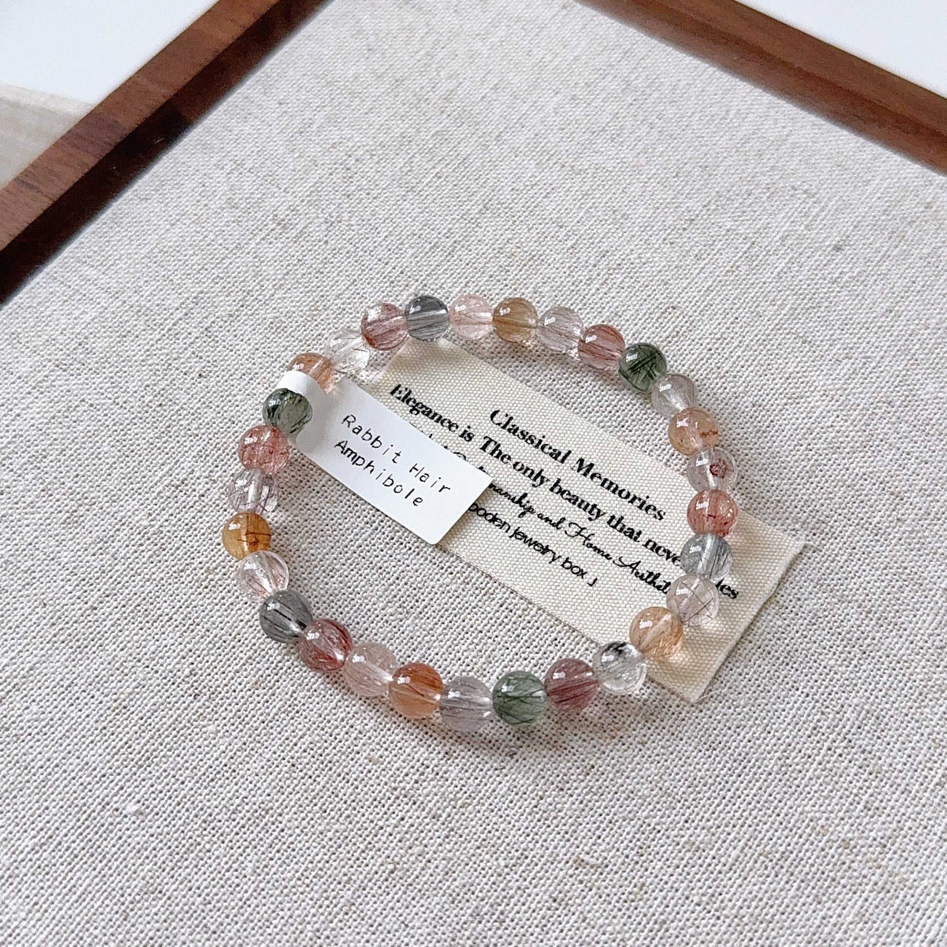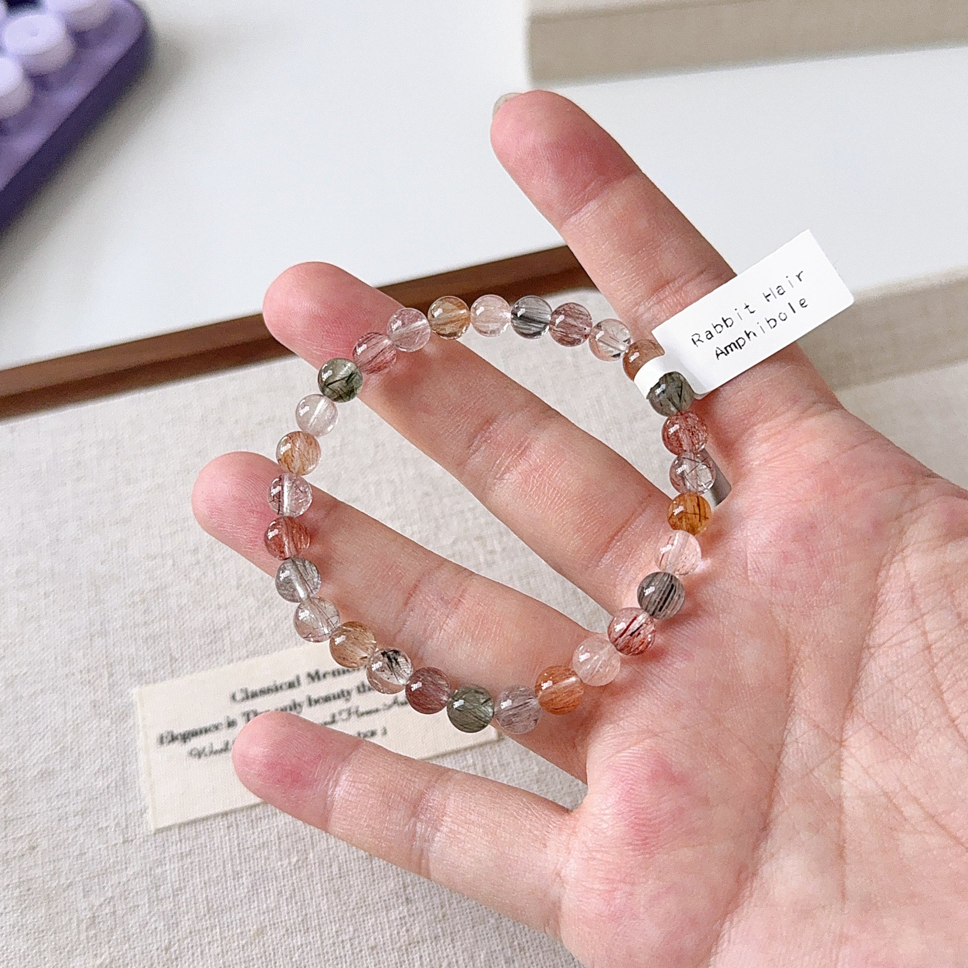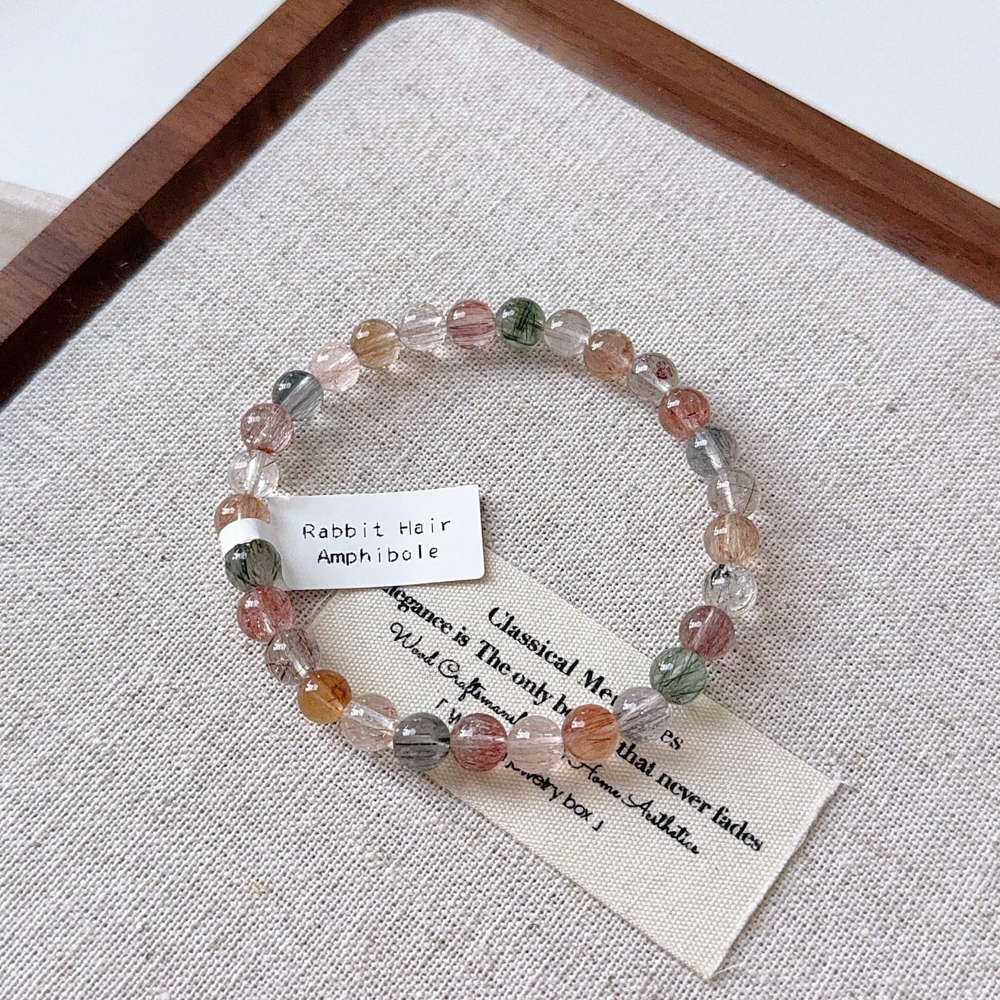 Rainbow Rabbit Hair Amphibole 6.3mm Beaded Bracelet