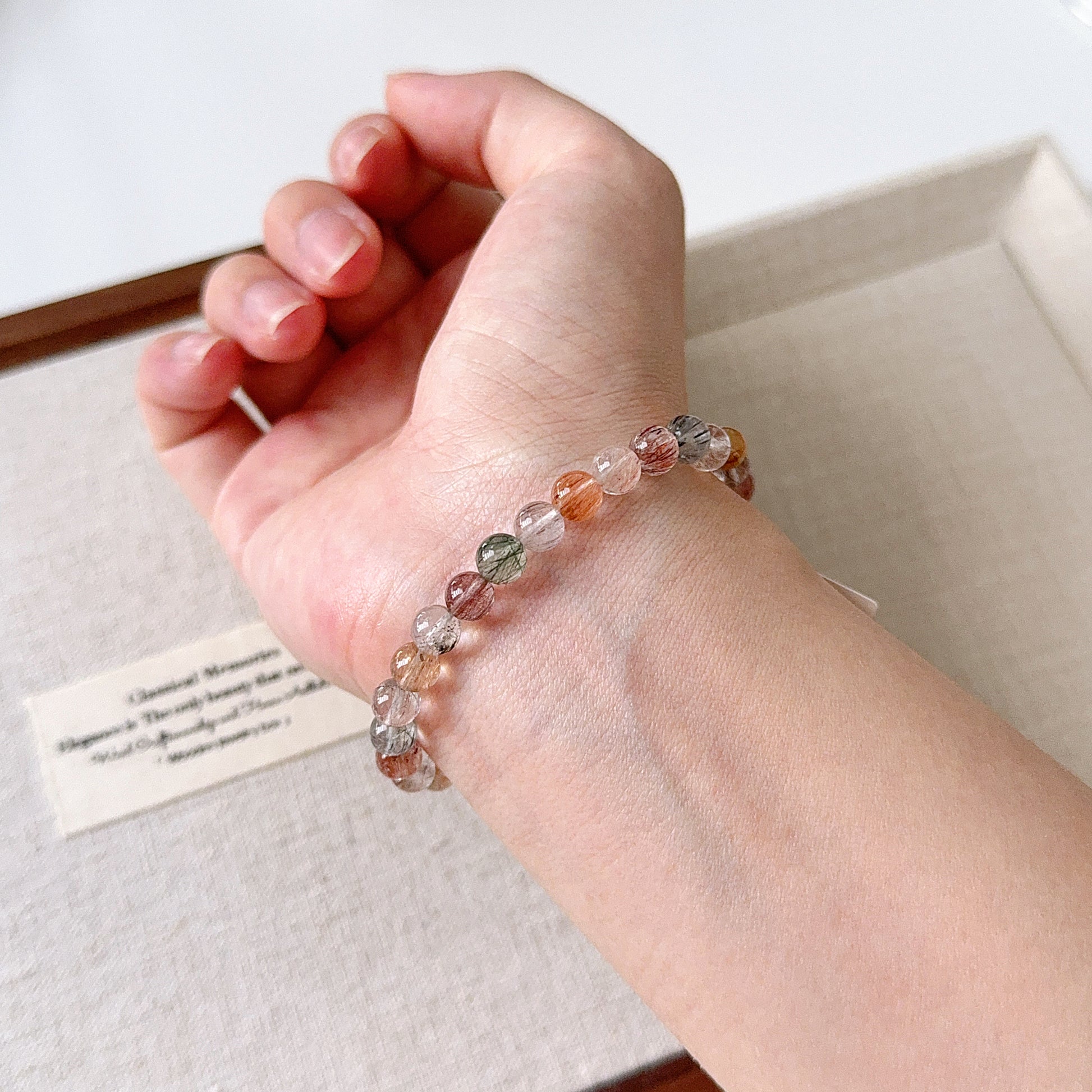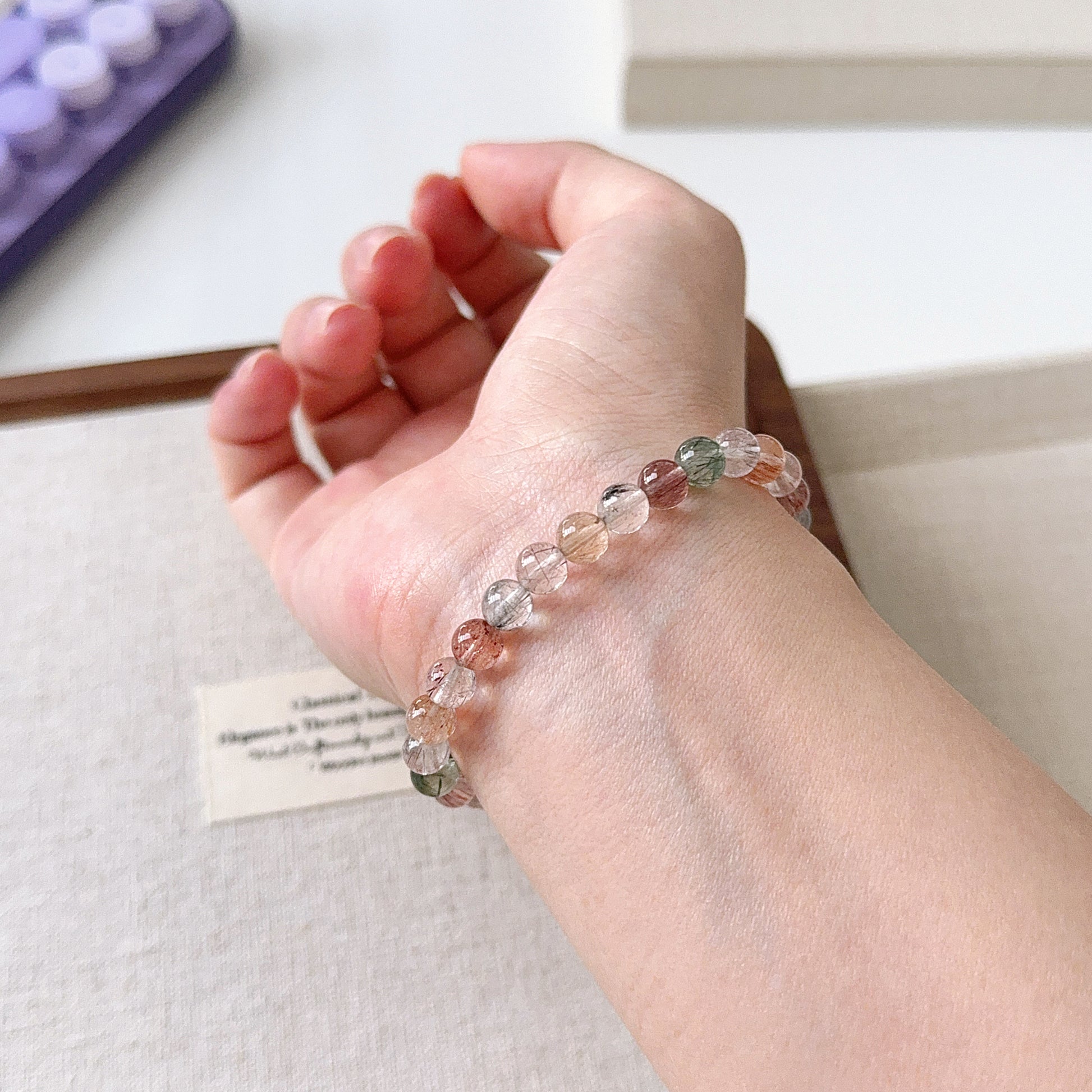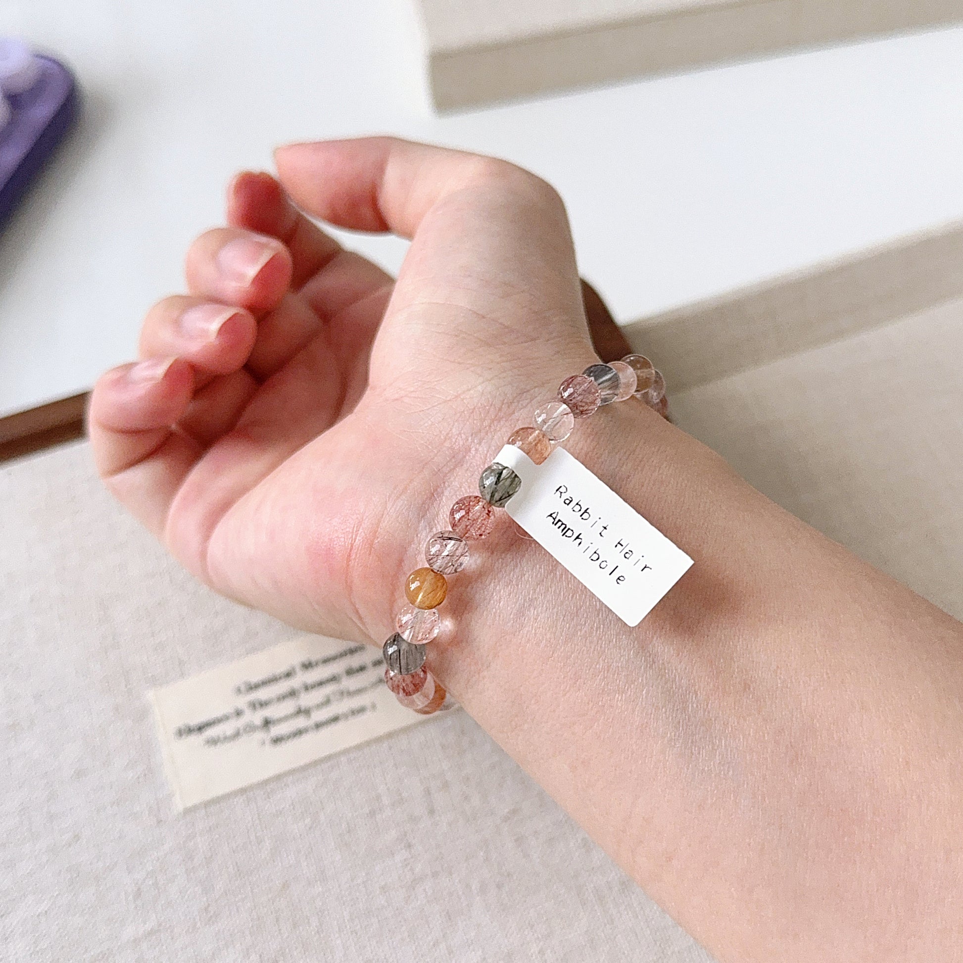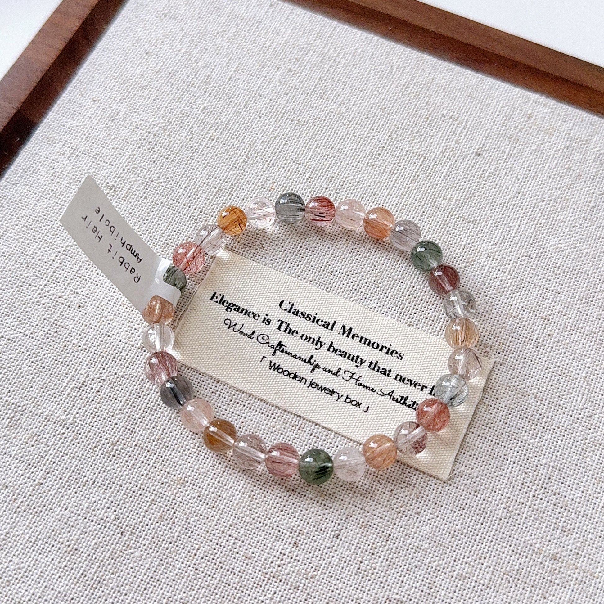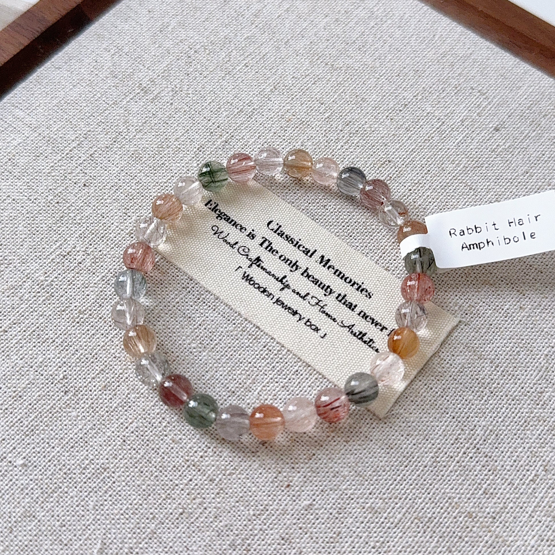 Rainbow Rabbit Hair Amphibole 6.3mm Beaded Bracelet