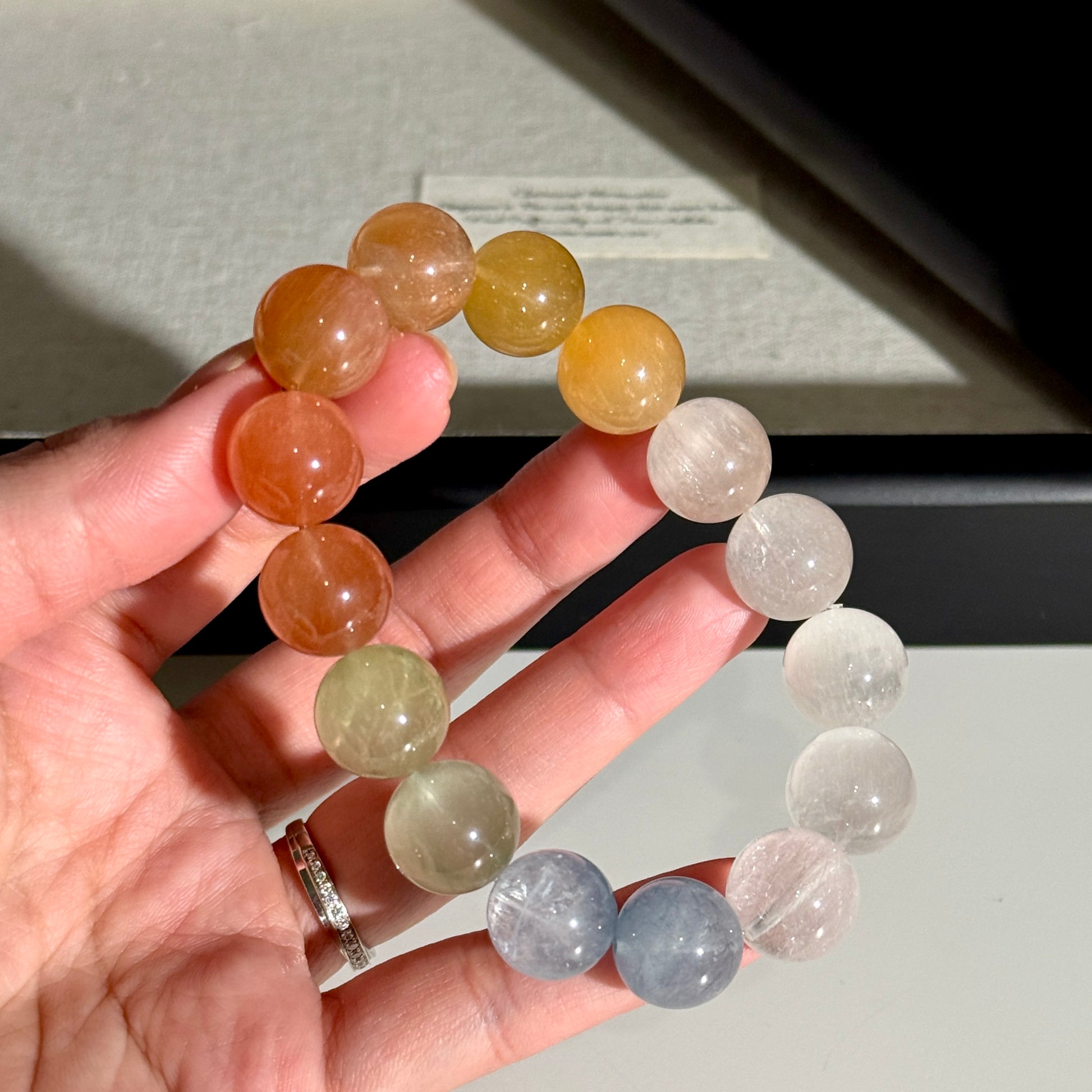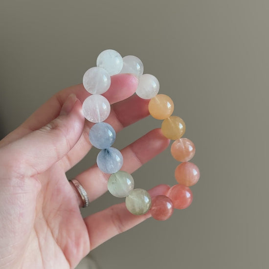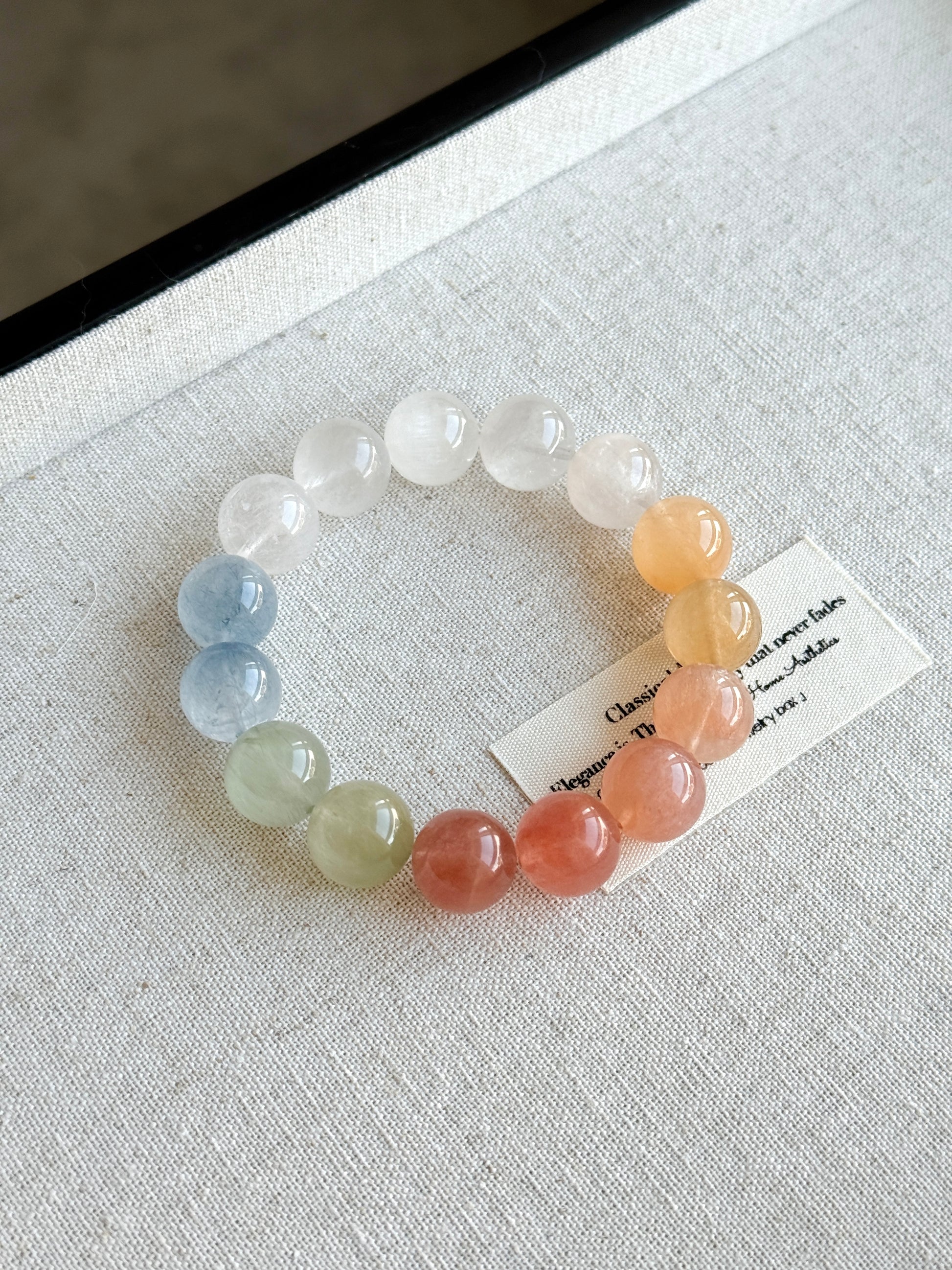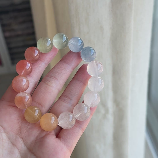 Rainbow Rabbit Hair Rutiled 13.6mm Beaded Bracelet HQ