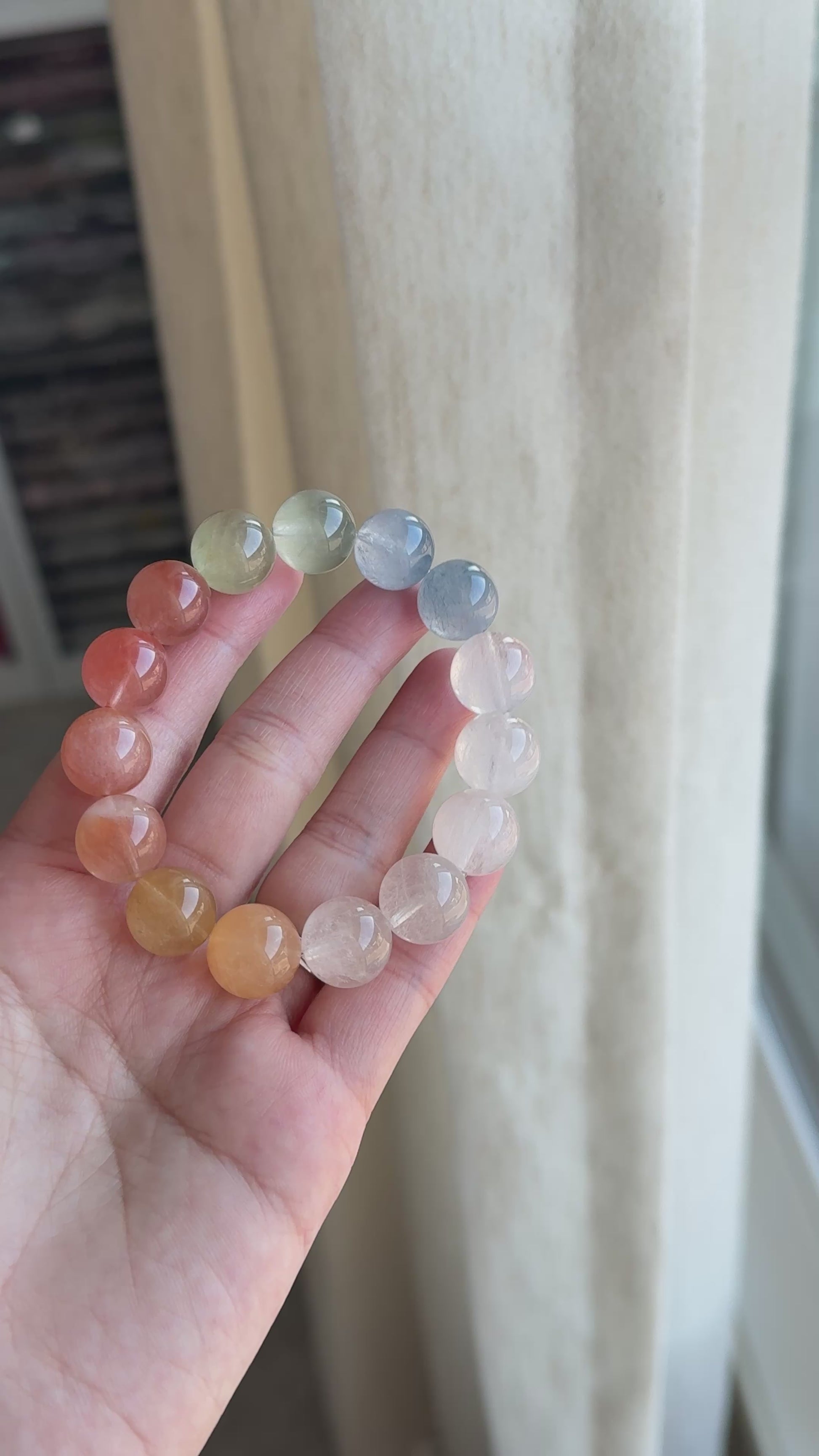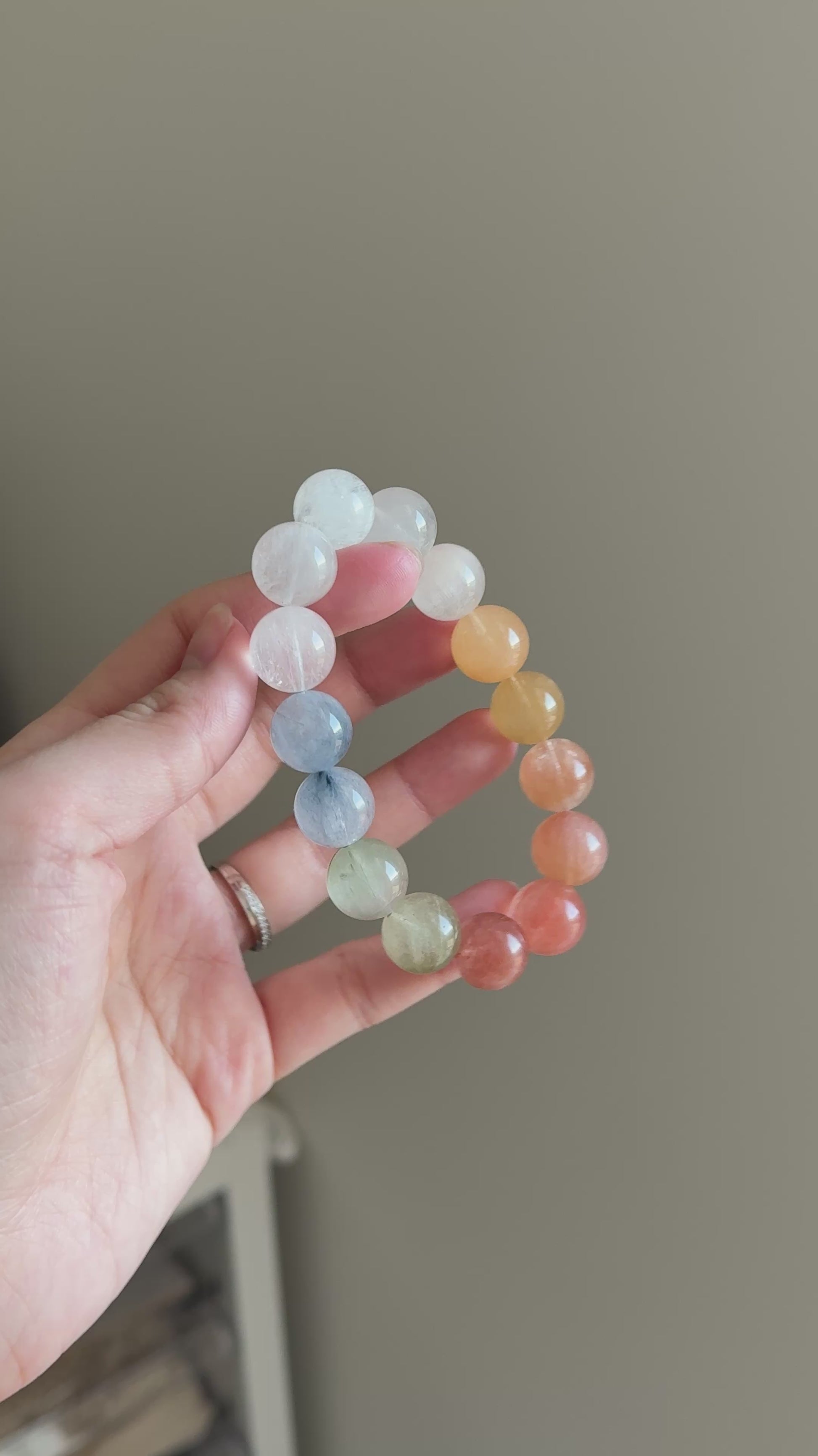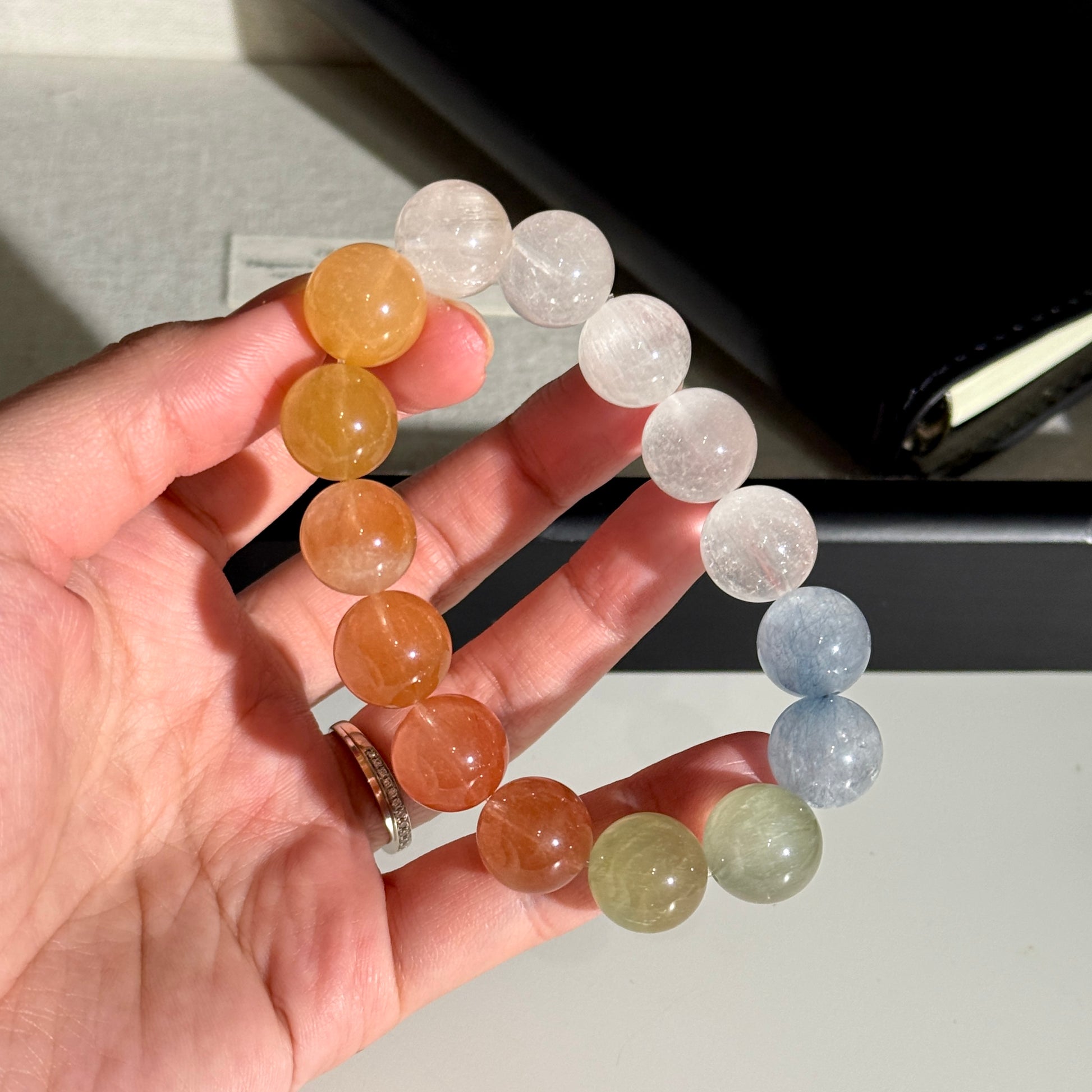 Rainbow Rabbit Hair Rutiled 13.6mm Beaded Bracelet HQ