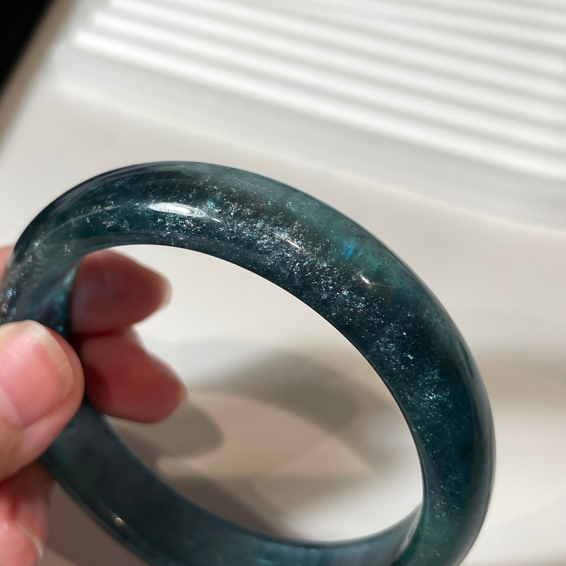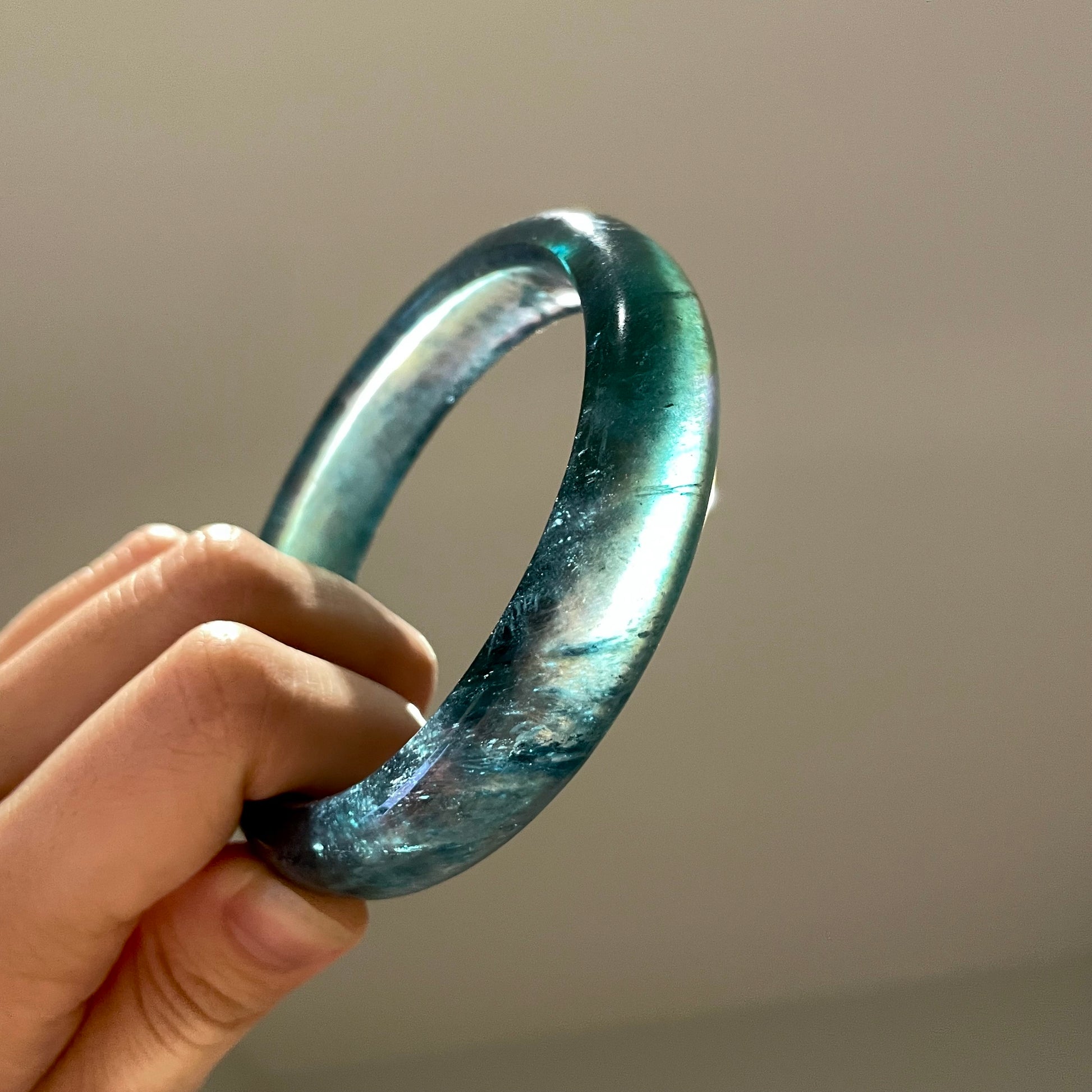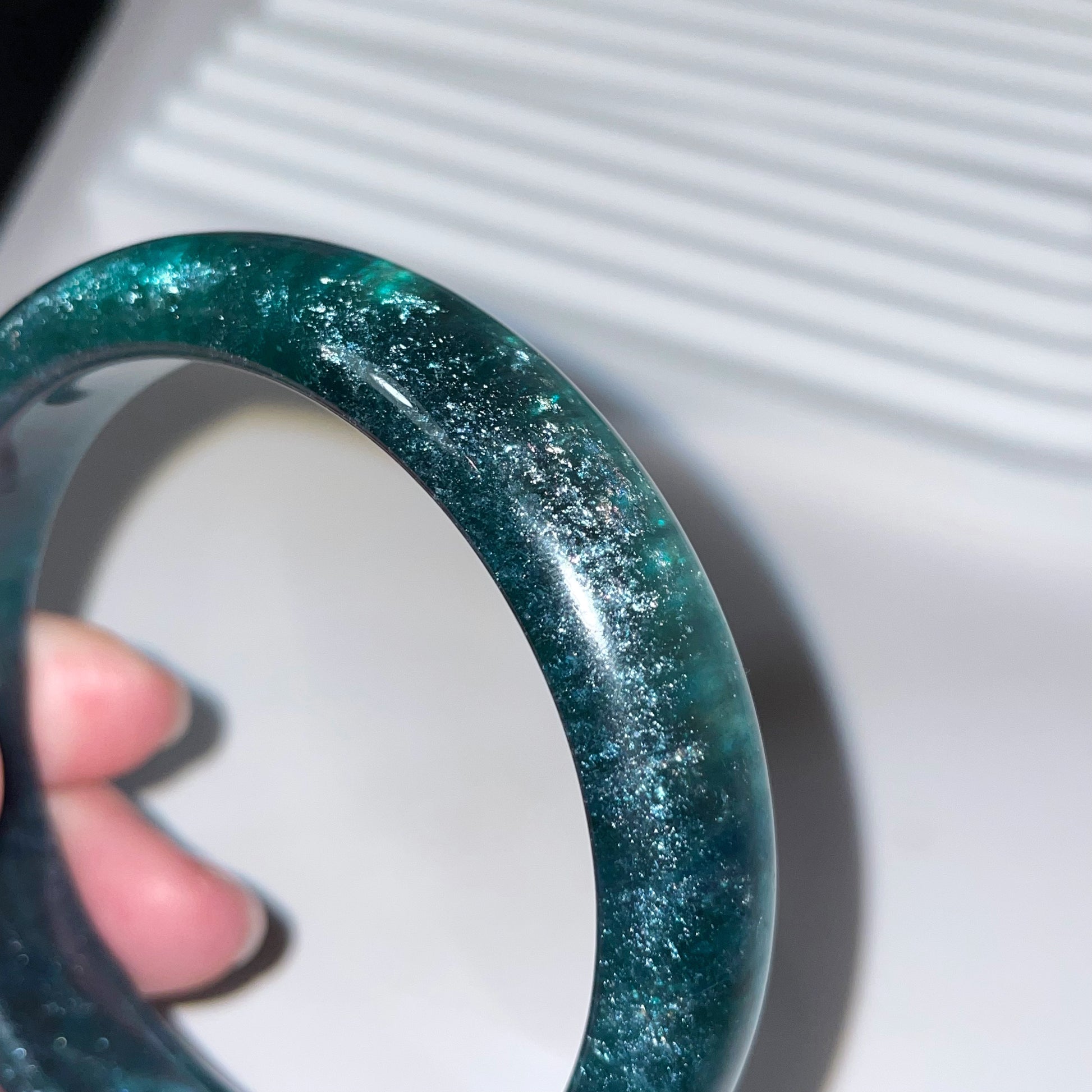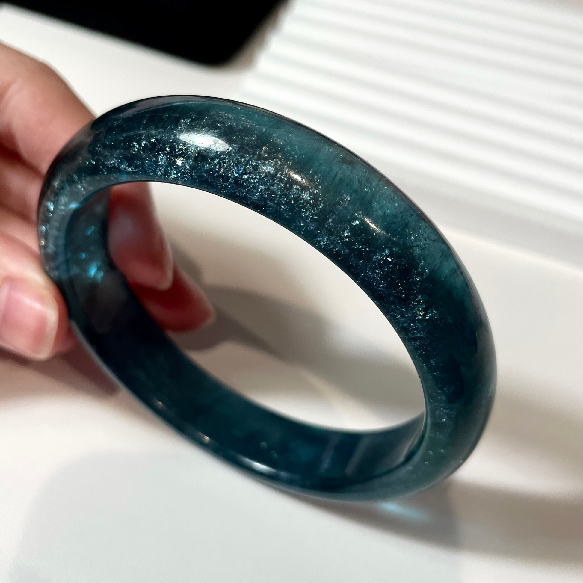 Rare Greenish Aquamarine Bangle with Rainbow Sparkling Starlights