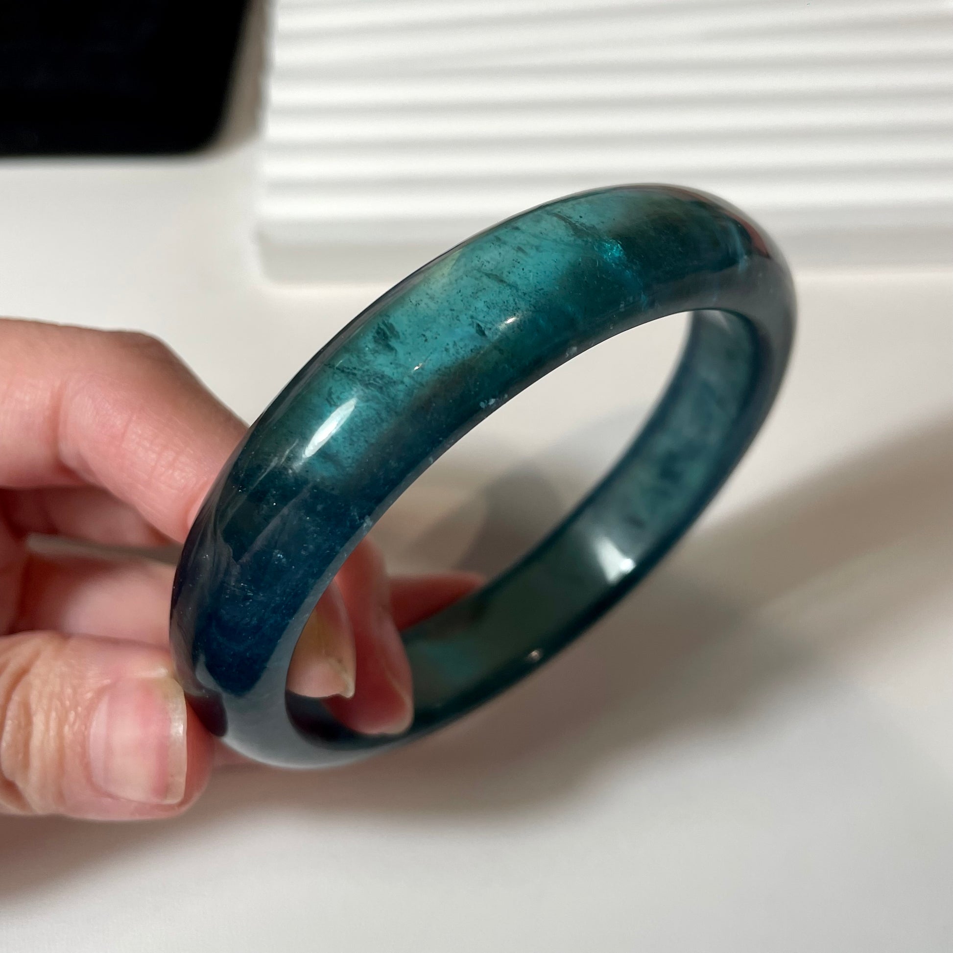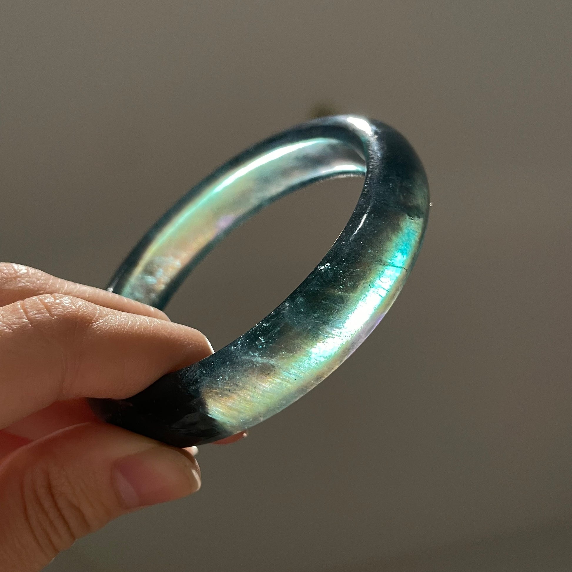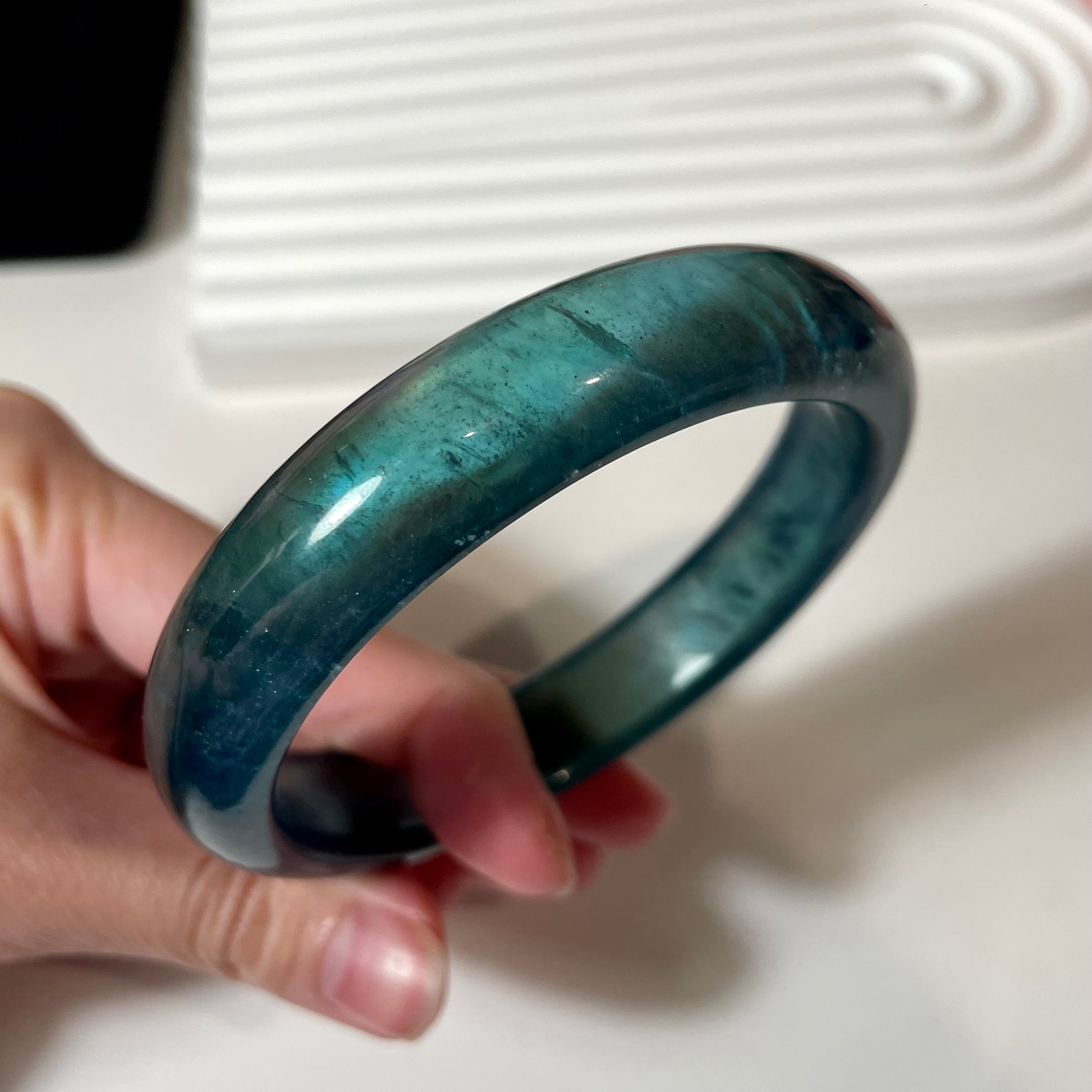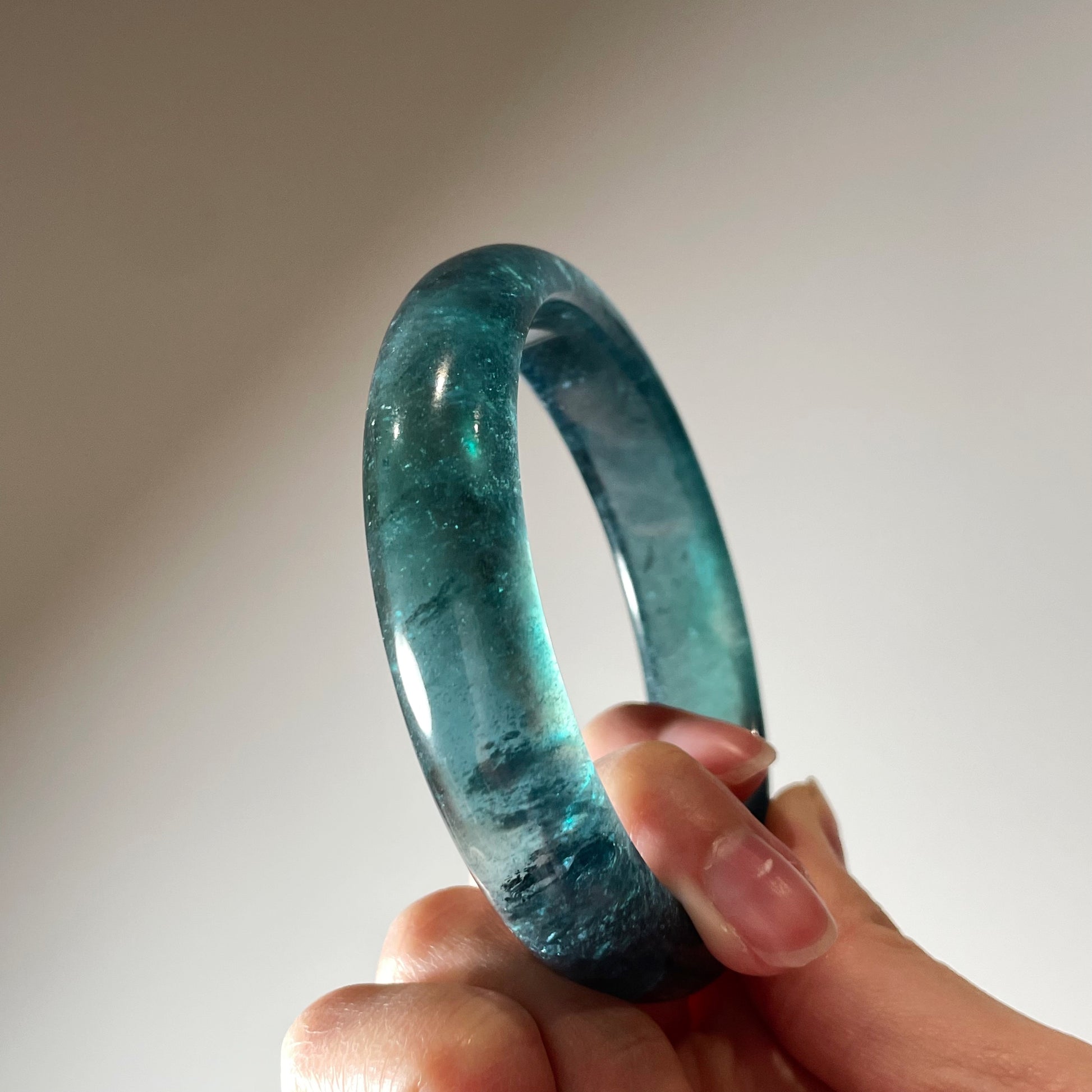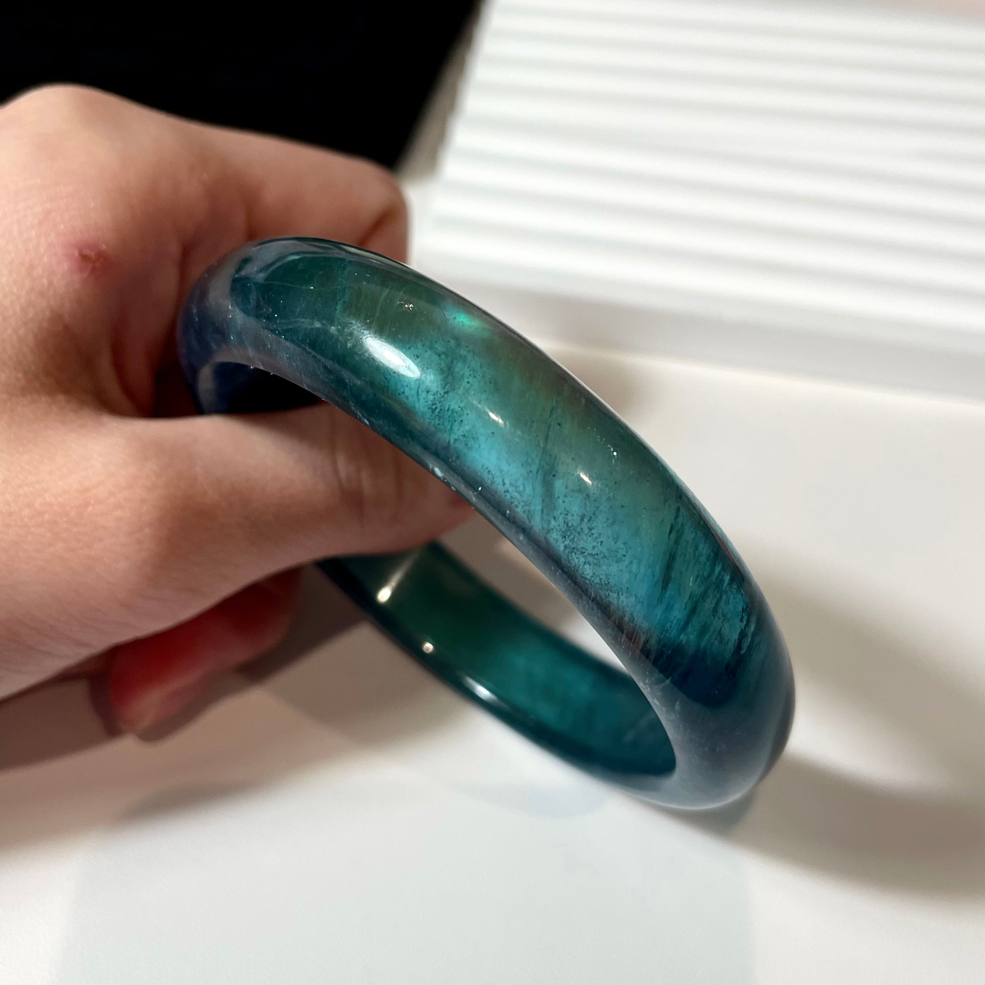 Rare Greenish Aquamarine Bangle with Rainbow Sparkling Starlights