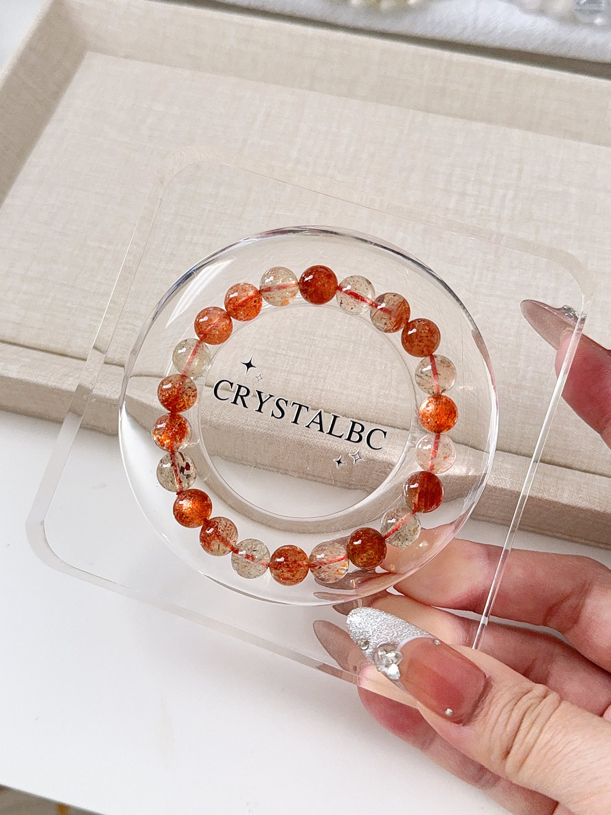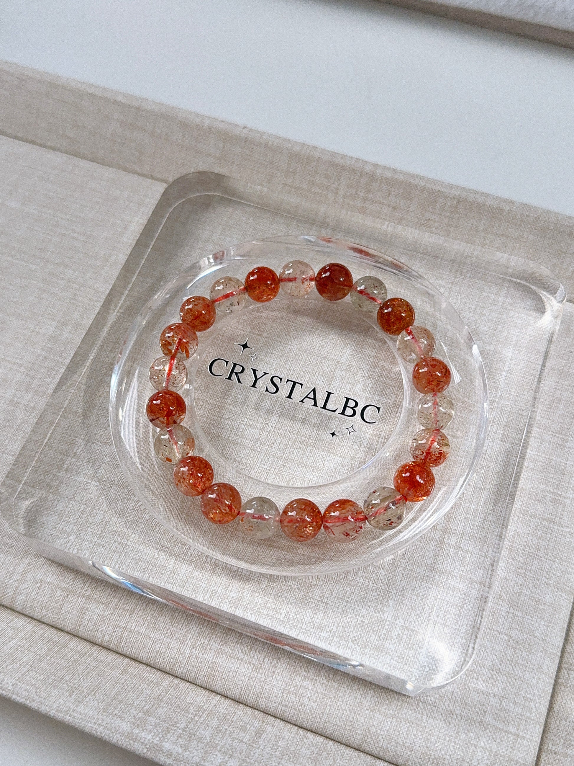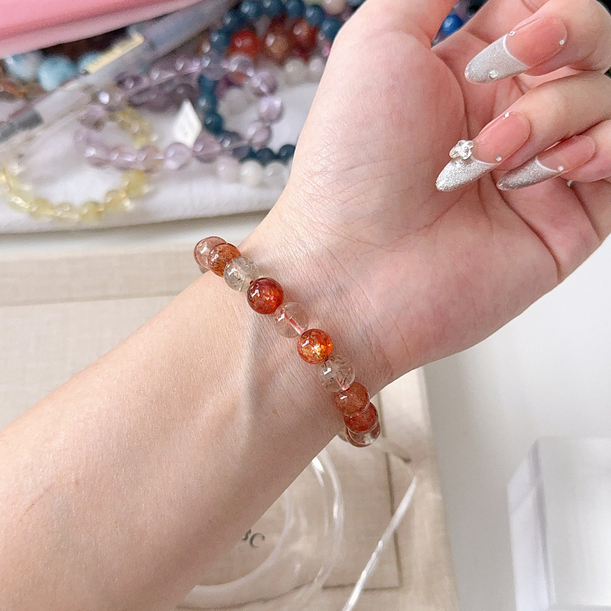 Tanzania Arusha Sunstone with Beryl Black Rutile Inclustion 8.8mm Beaded Bracelet