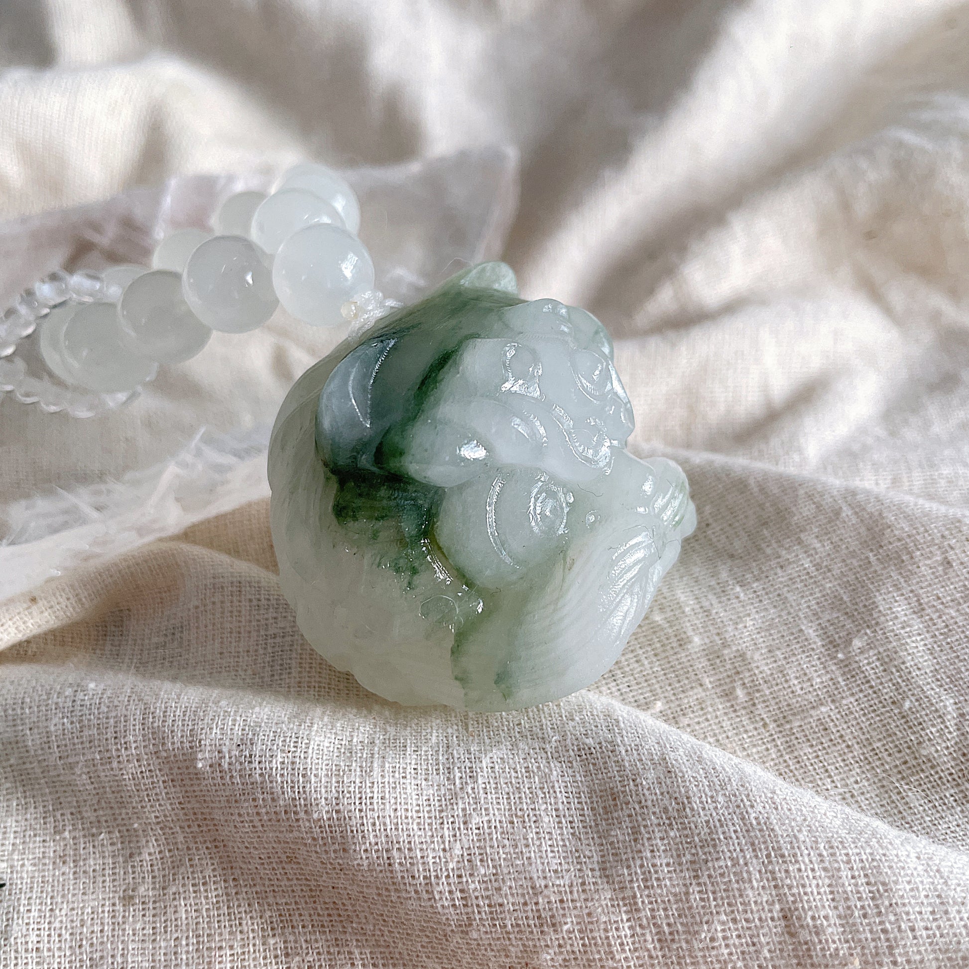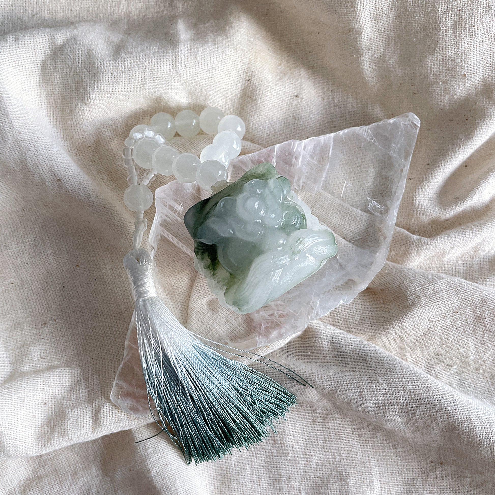 Tianshan Emerald Jade Gelang Kaki Kristal Jade Lion Sculpture 天山翠