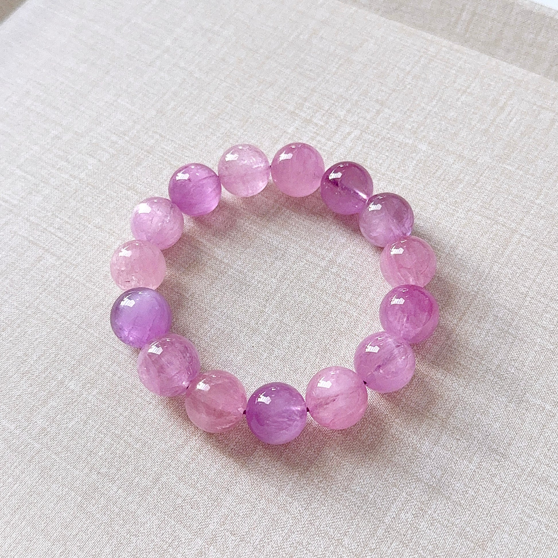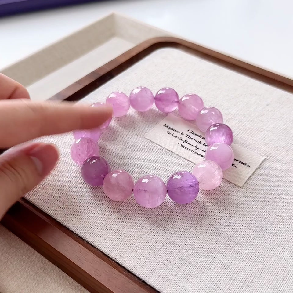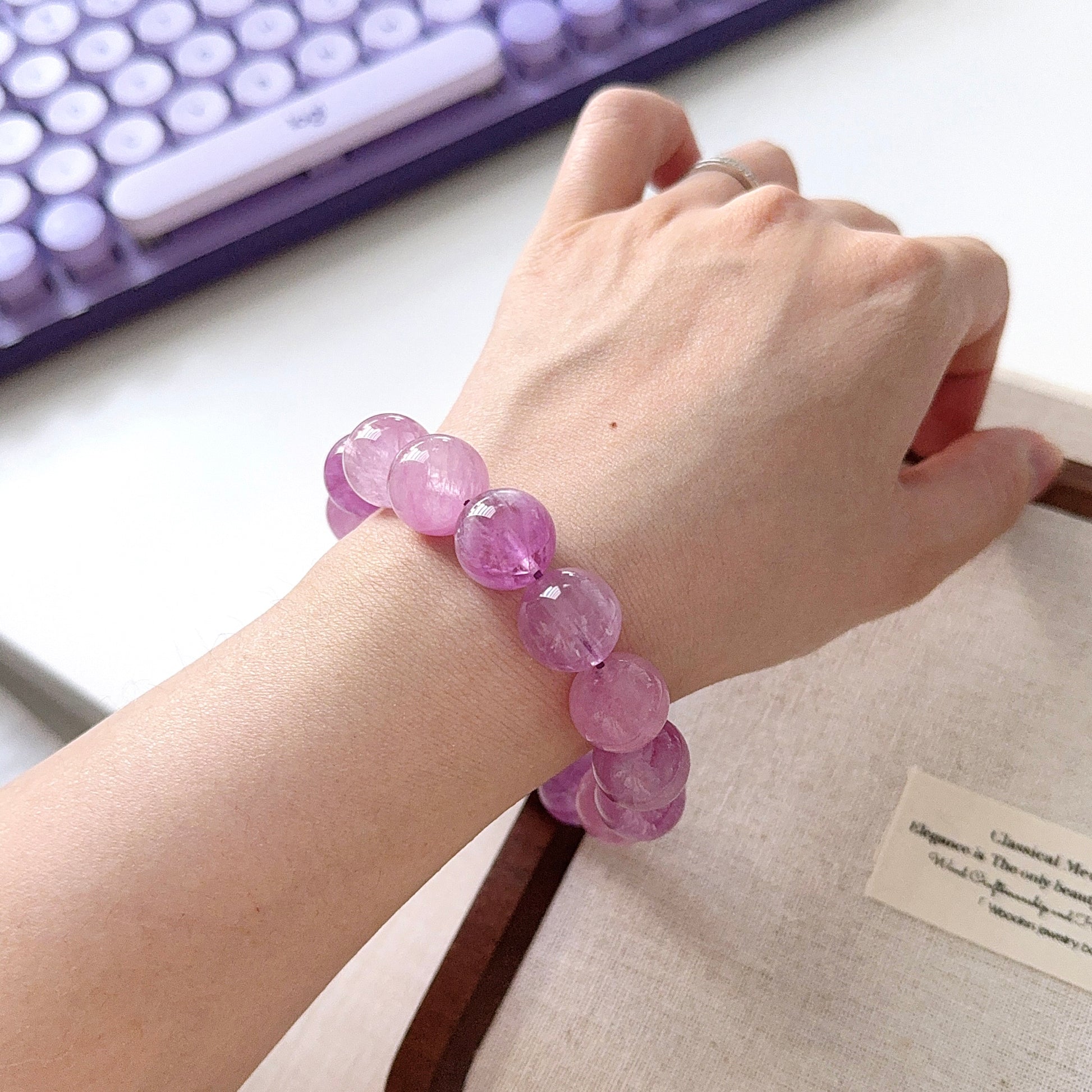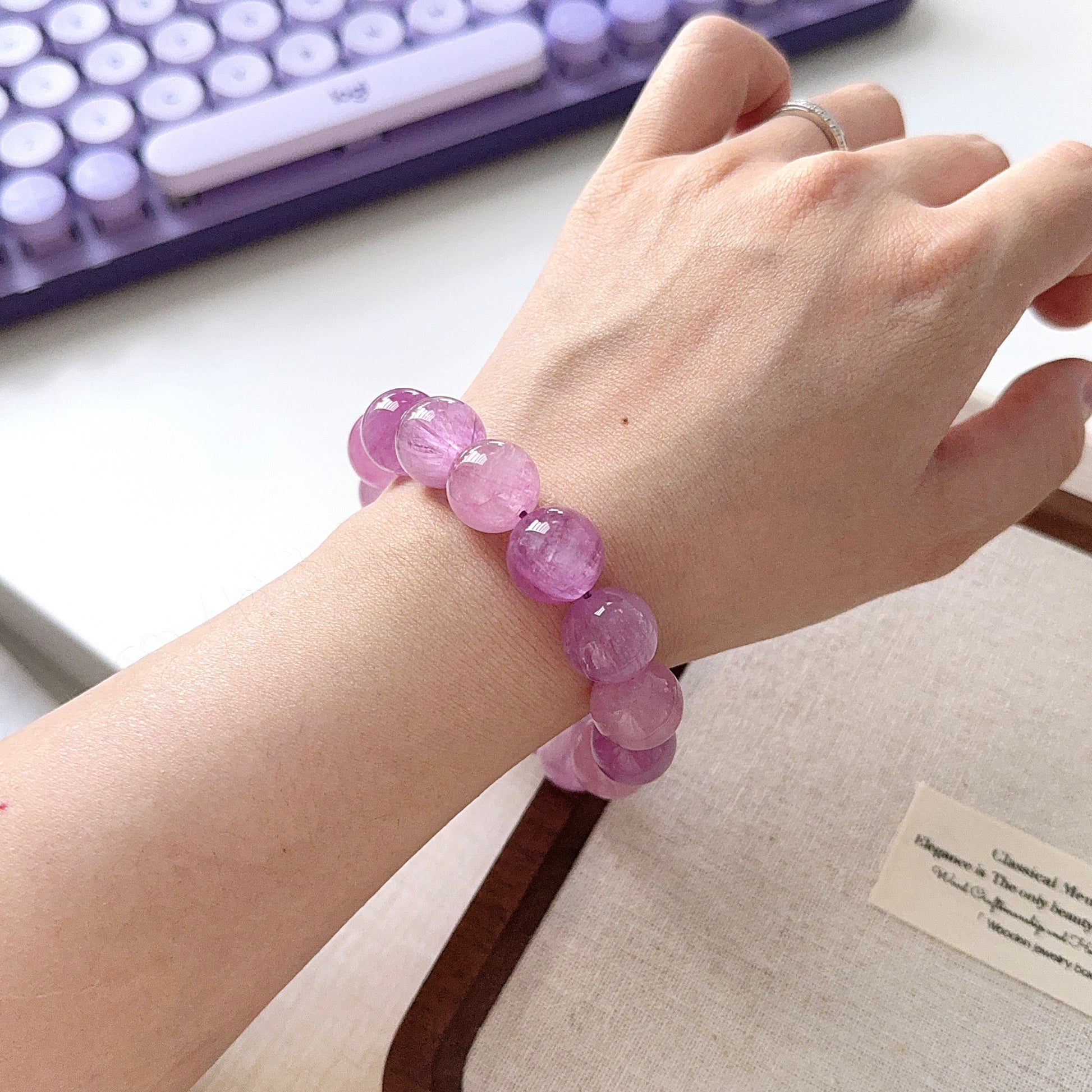 Ultra High Quality Gemmy Pinky Purple CatEye Kunzite 14.5mm Beaded Bracelet
