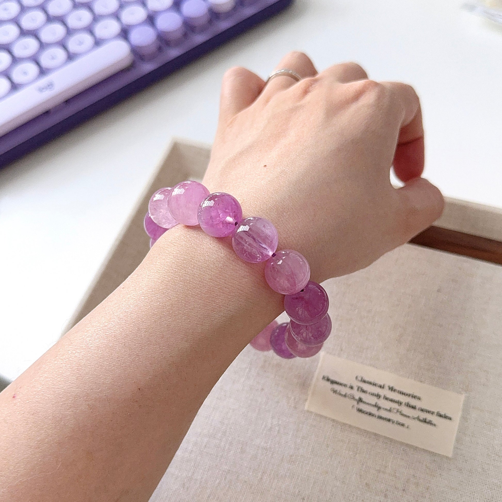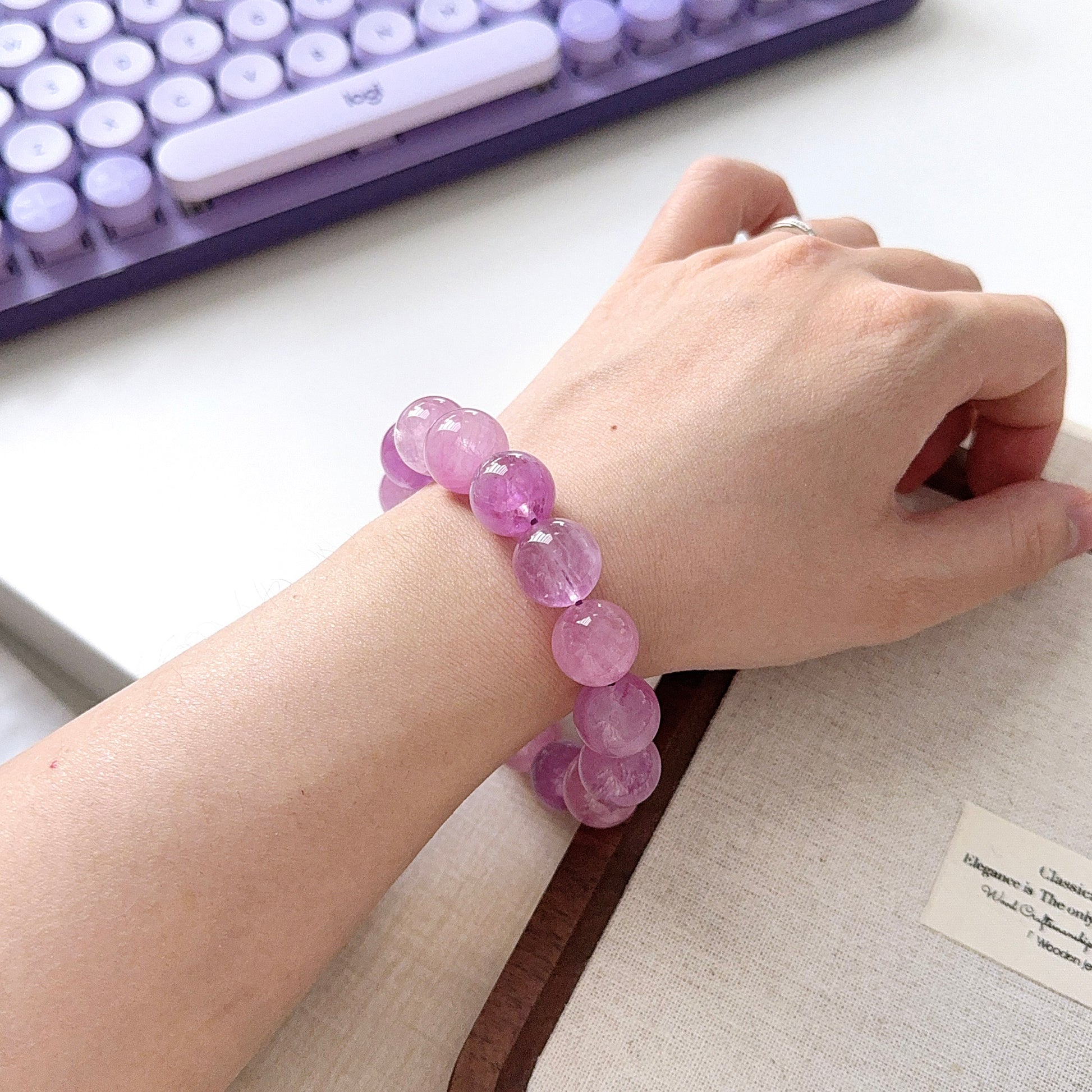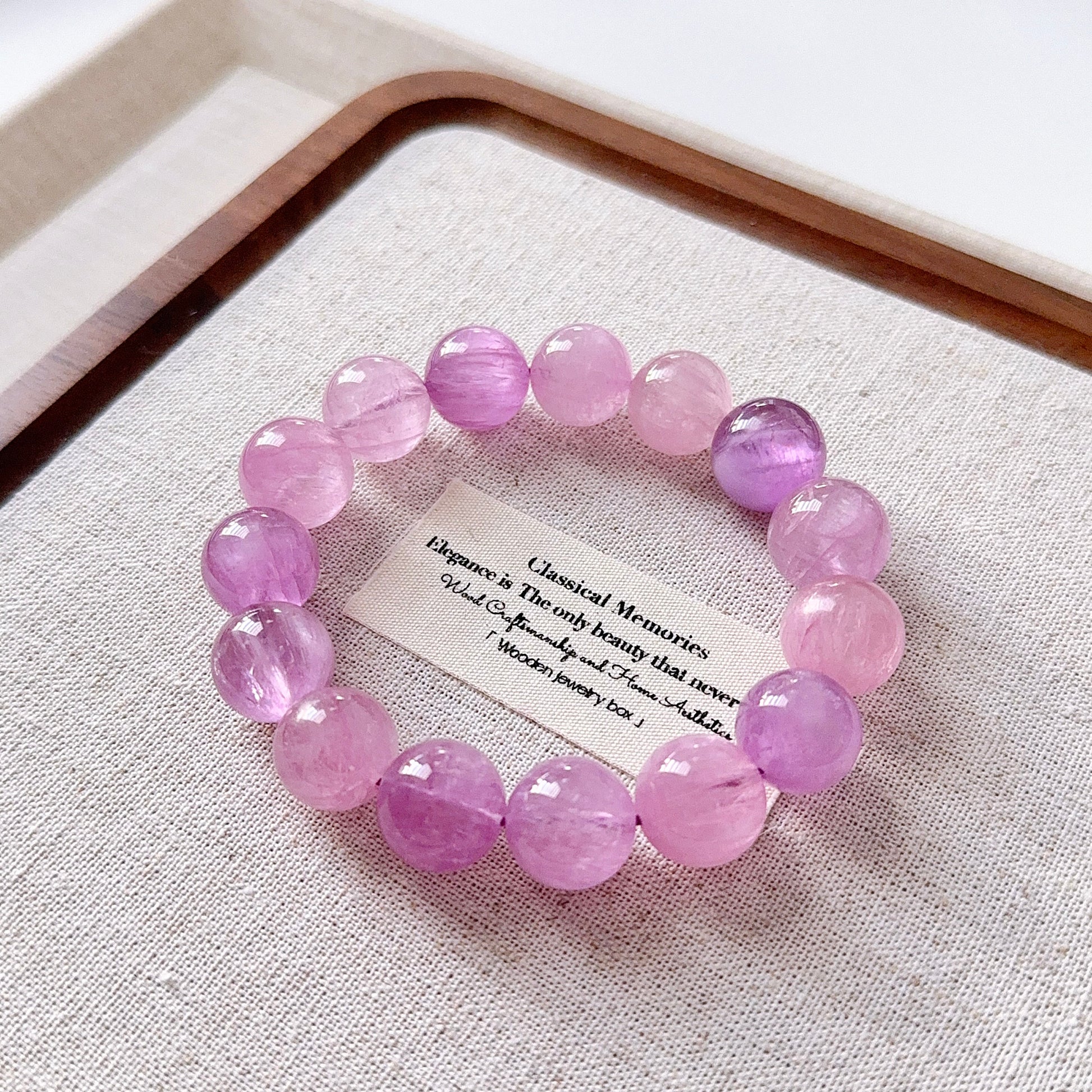 Ultra High Quality Gemmy Pinky Purple CatEye Kunzite 14.5mm Beaded Bracelet