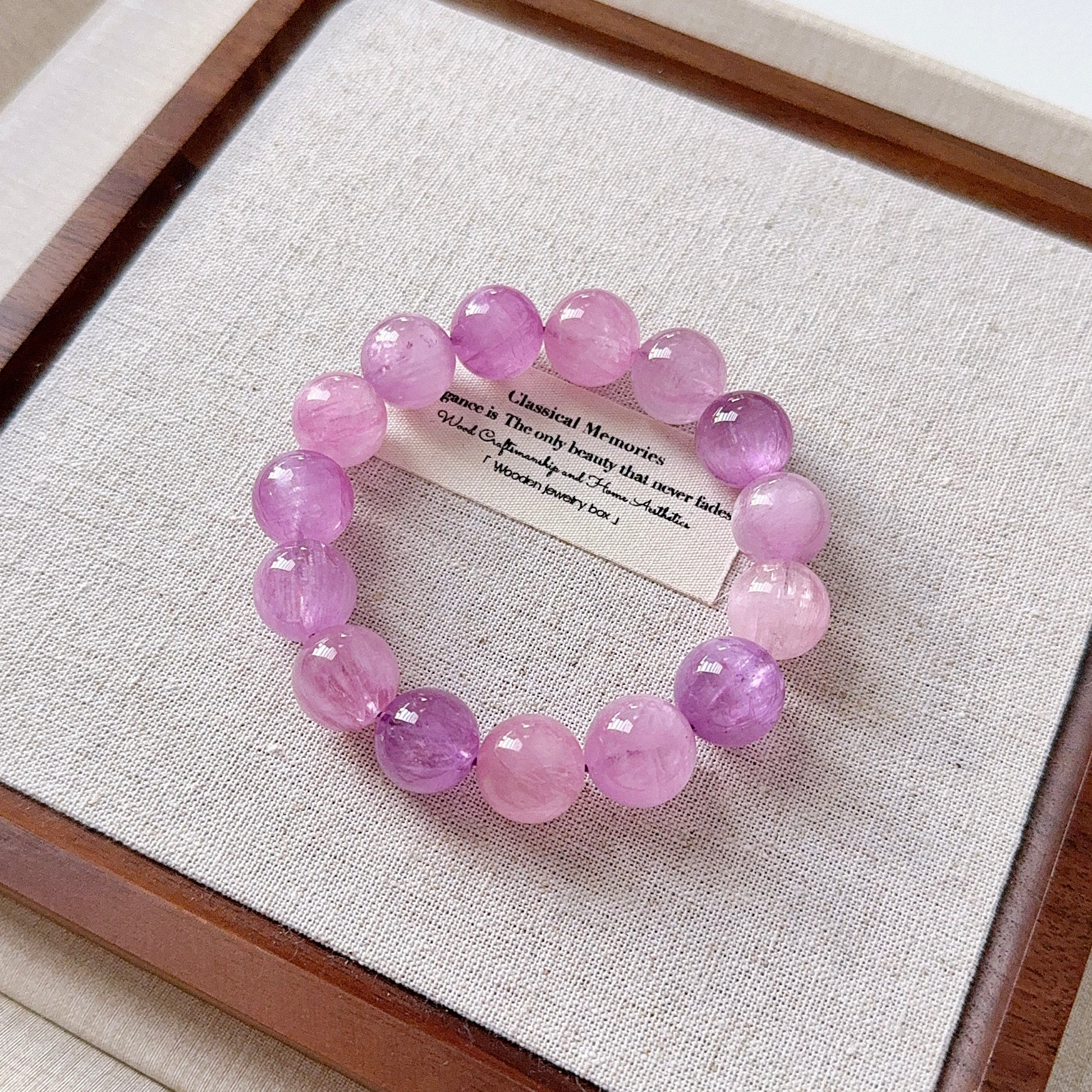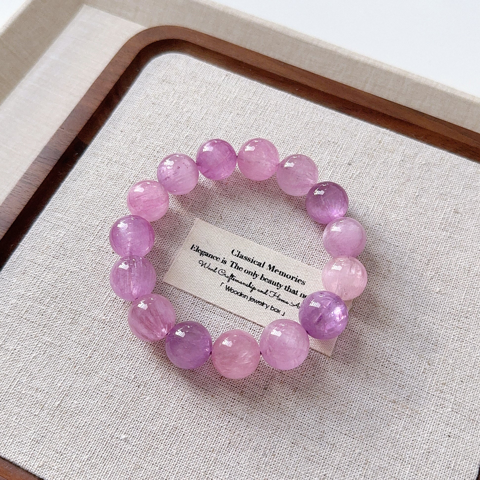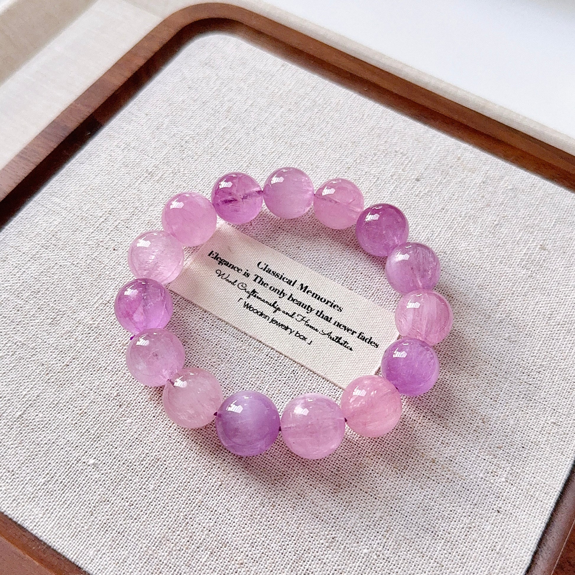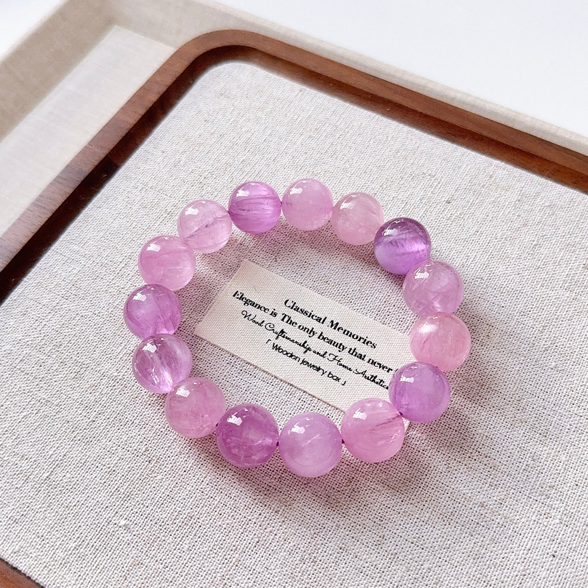 Ultra High Quality Gemmy Pinky Purple CatEye Kunzite 14.5mm Beaded Bracelet