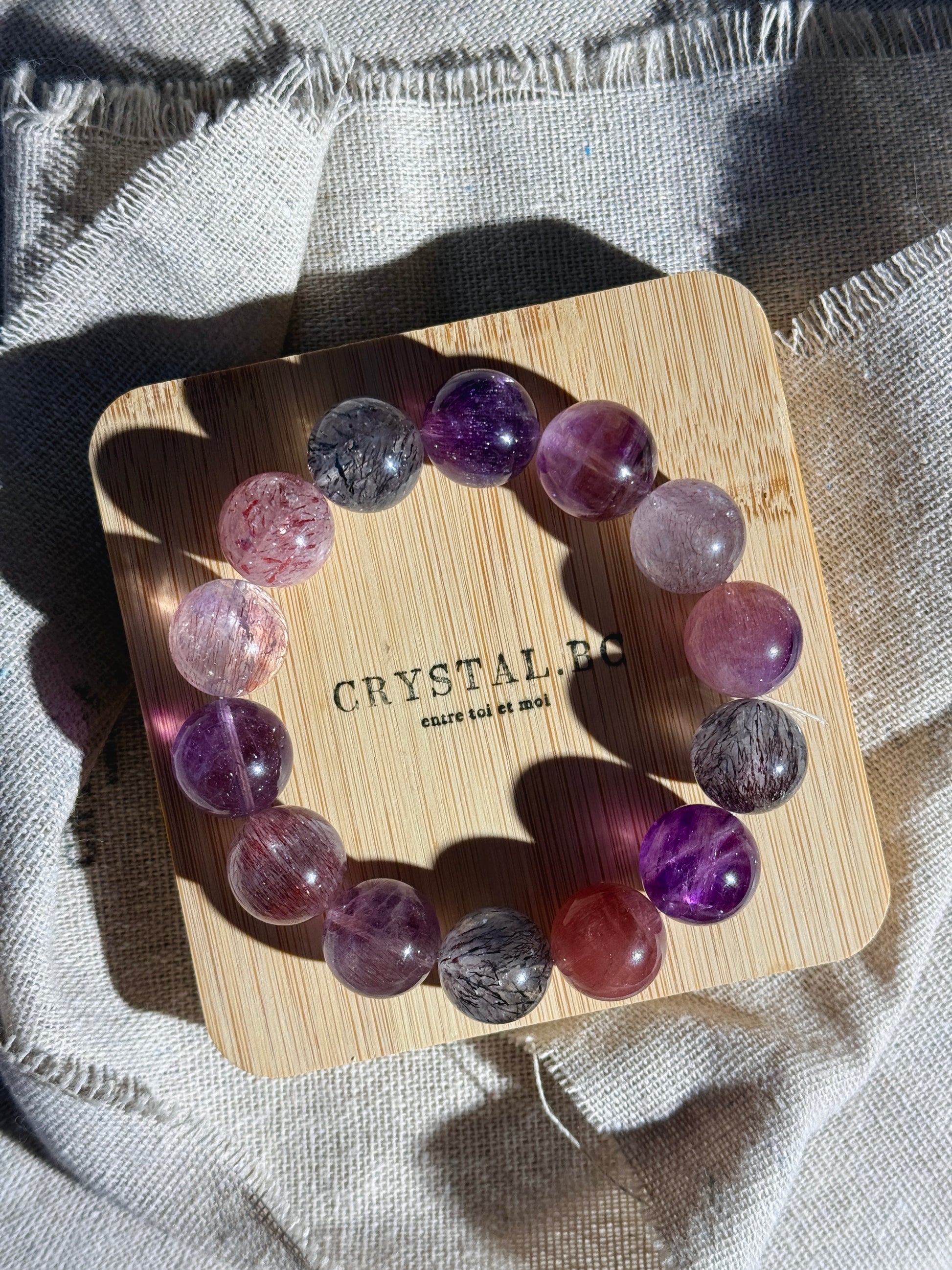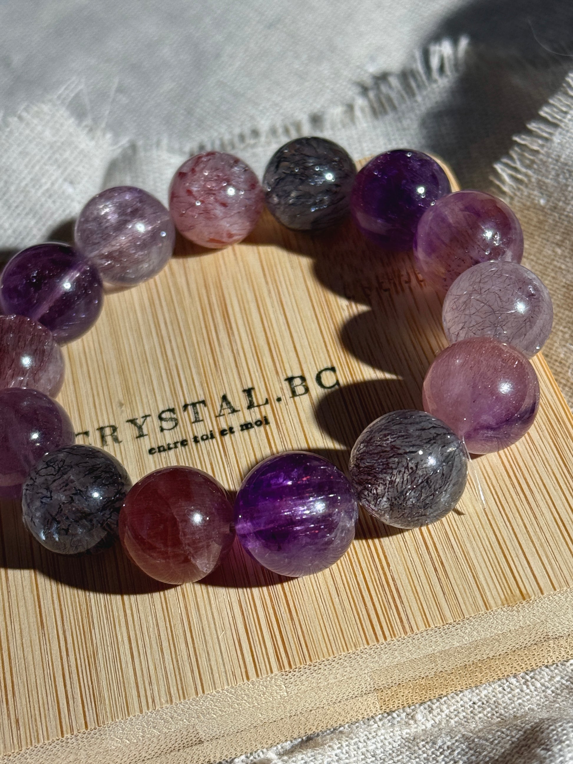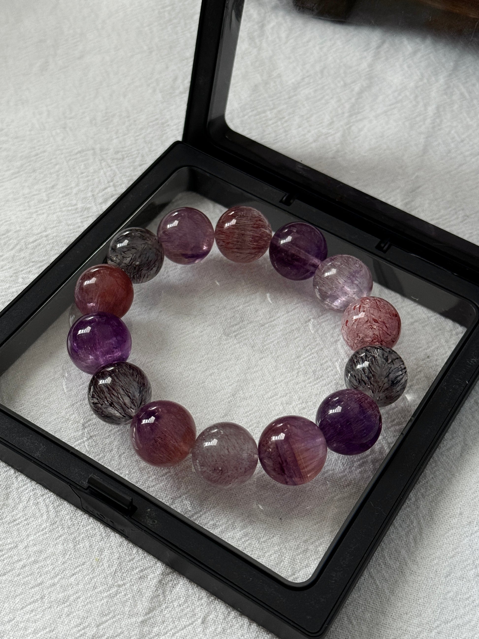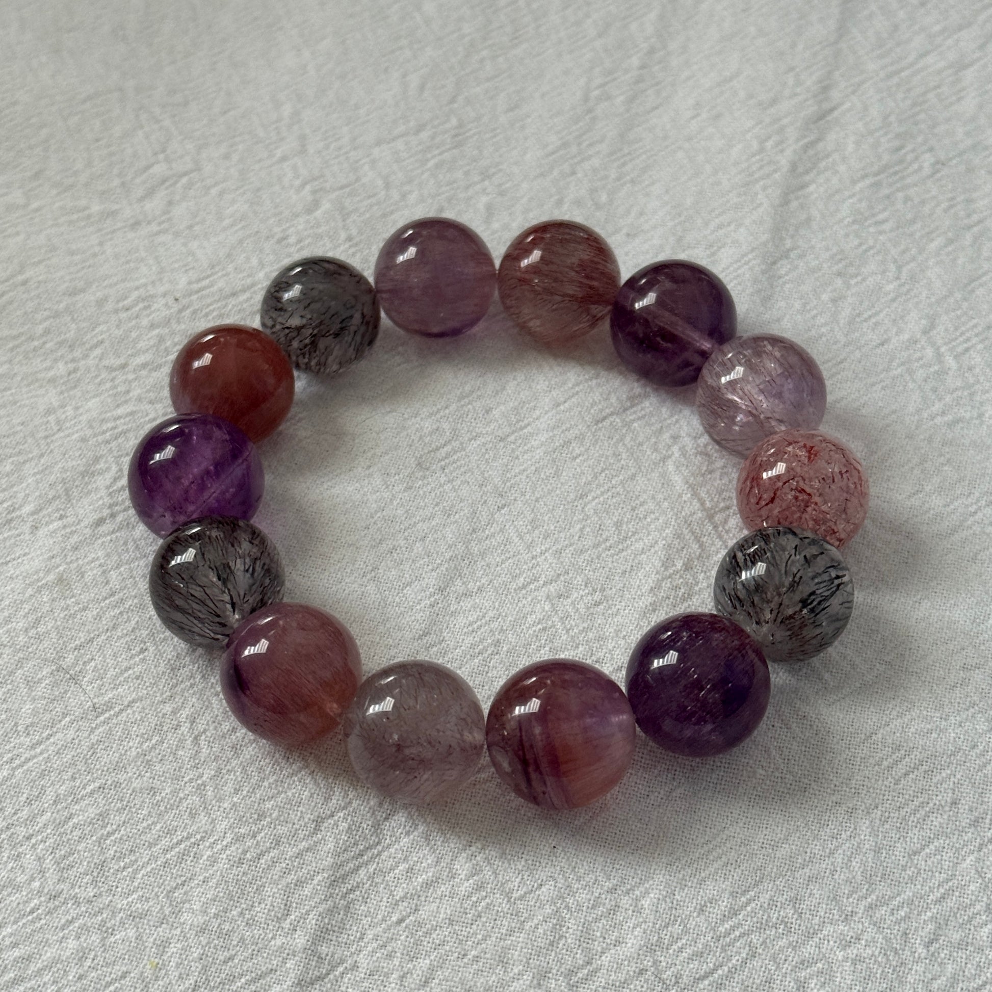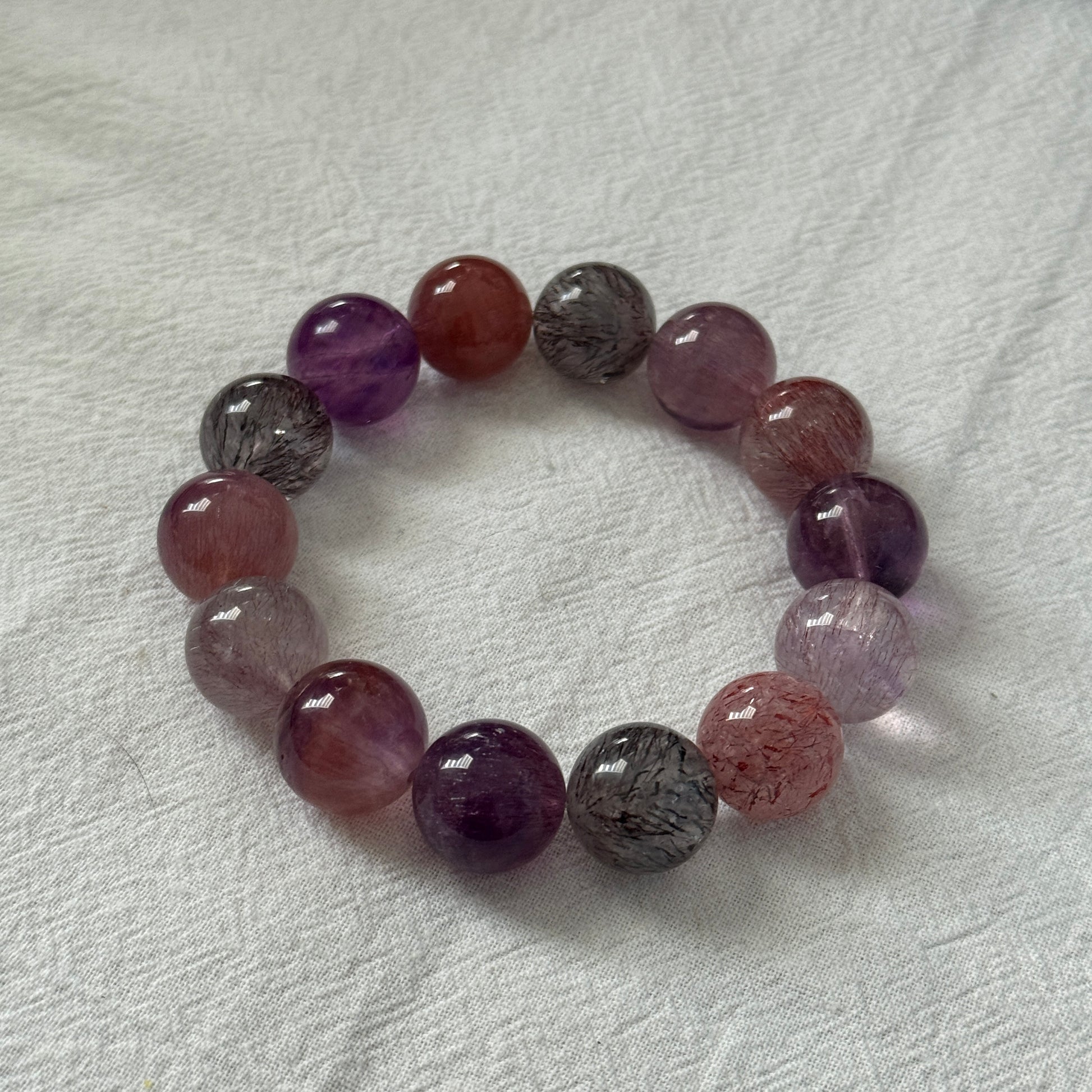 Ultra High Quality Natural Super Seven Quartz 15.6mm Beaded Bracelet