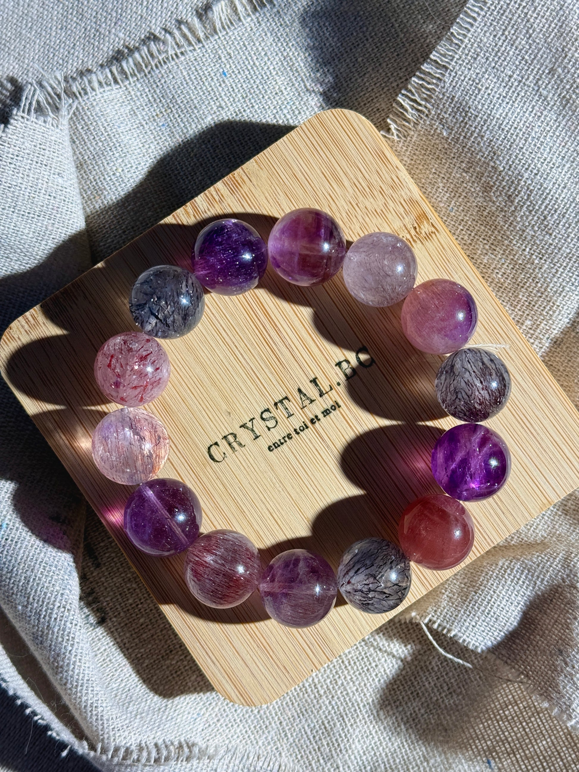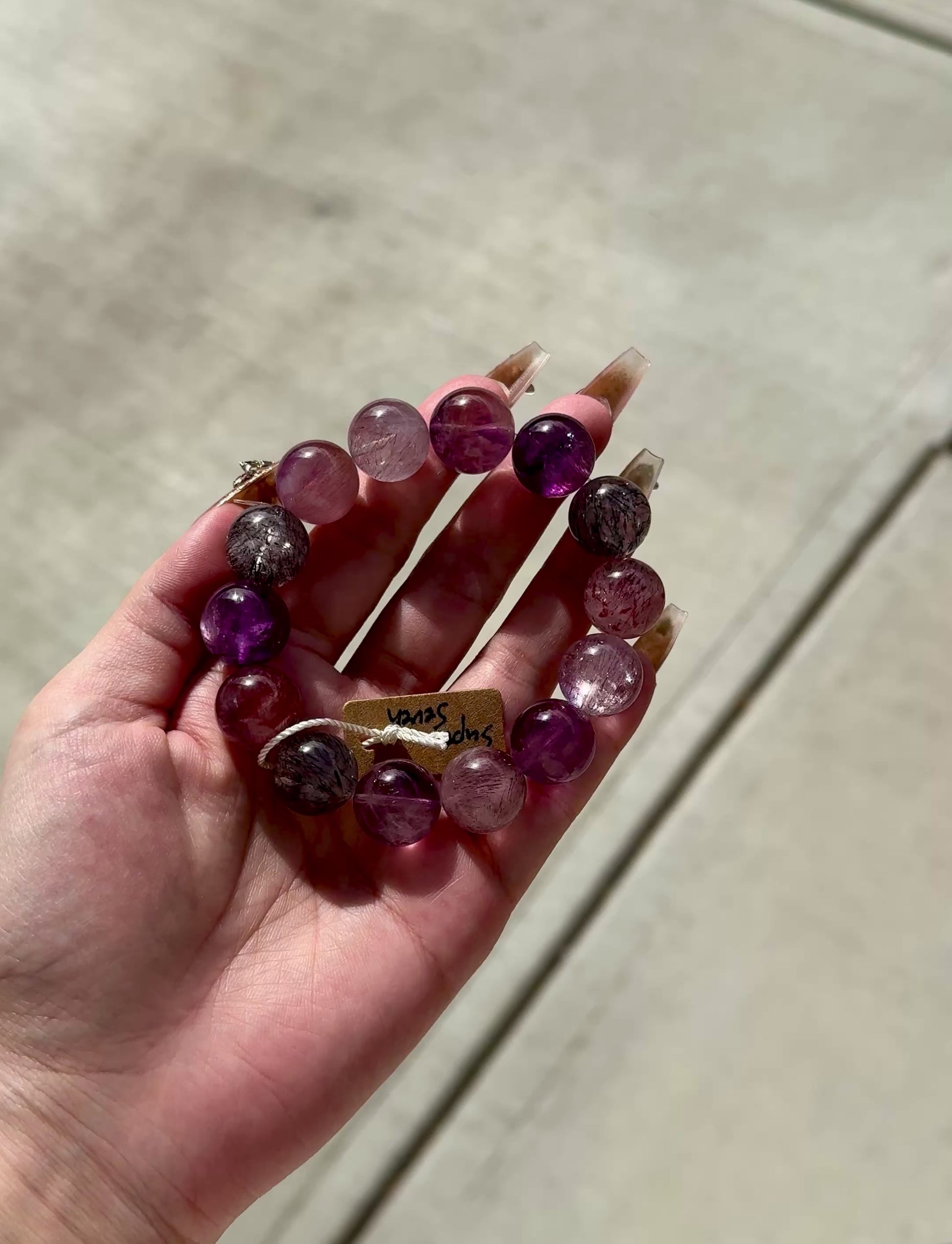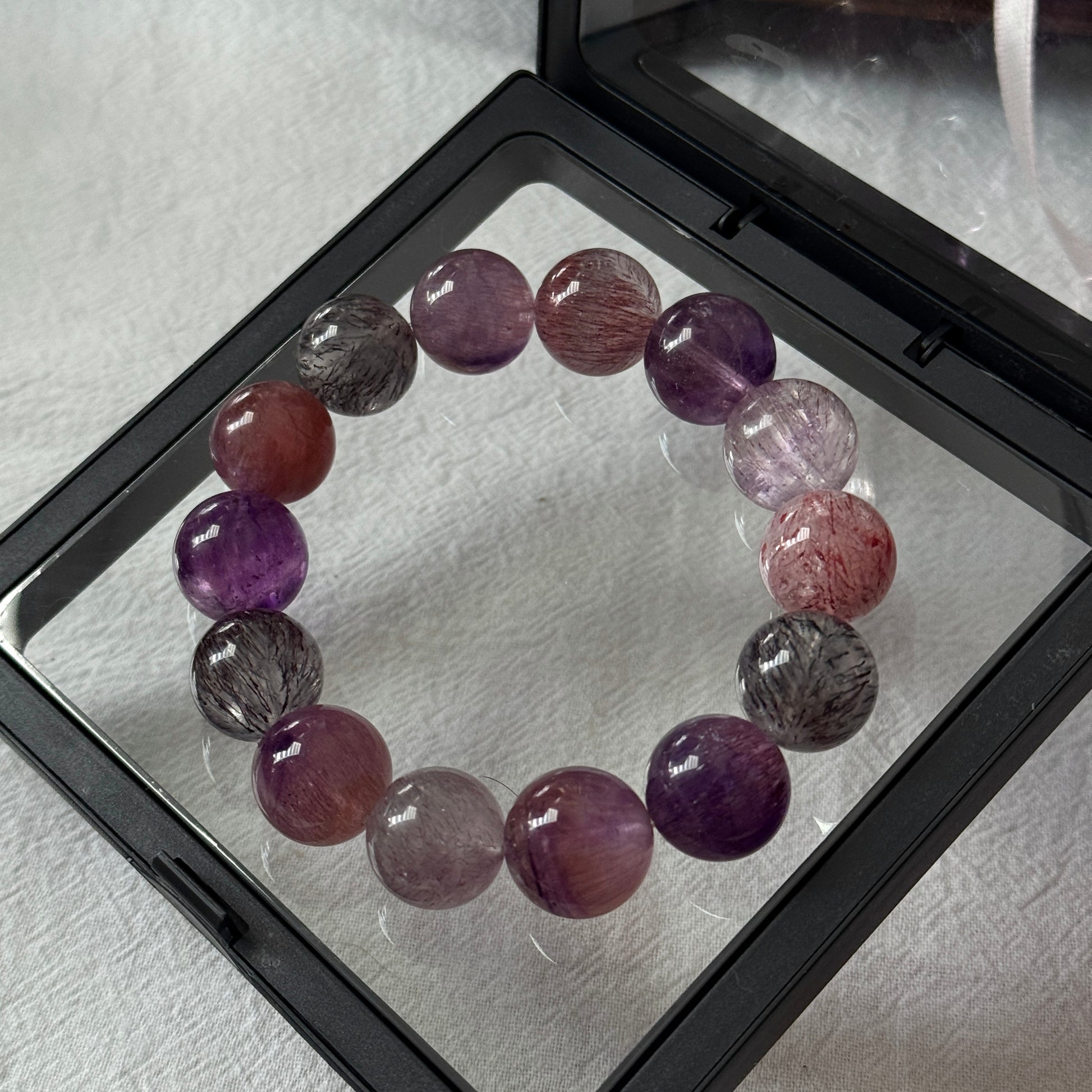 ✨ Super Seven is a rare and powerful blend of Amethyst, Clear Quartz, Smoky Quartz, Cacoxenite, Lepidocrocite, Rutile, and Goethite—each enhancing a unique aspect of your spiritual and personal growth.