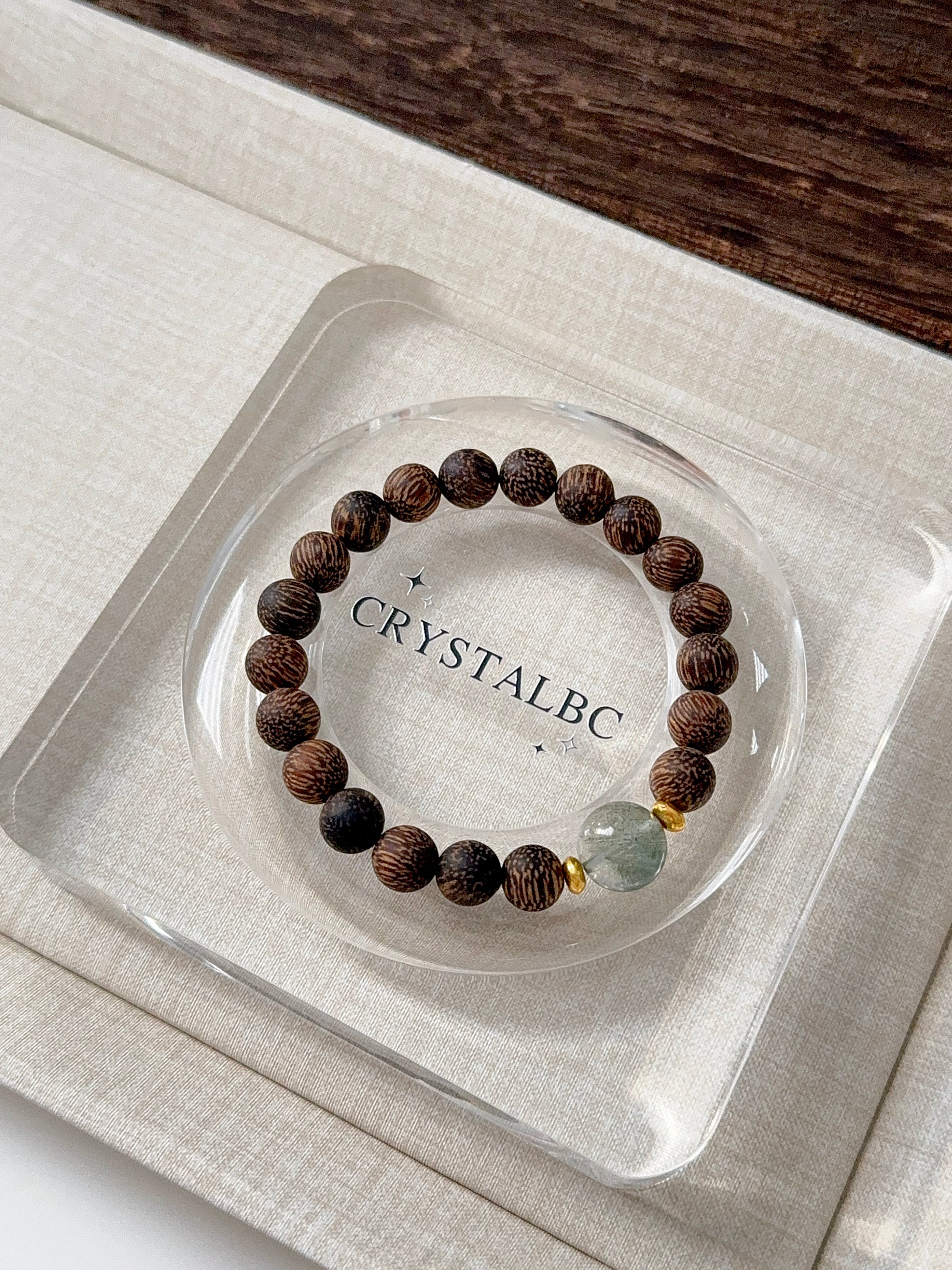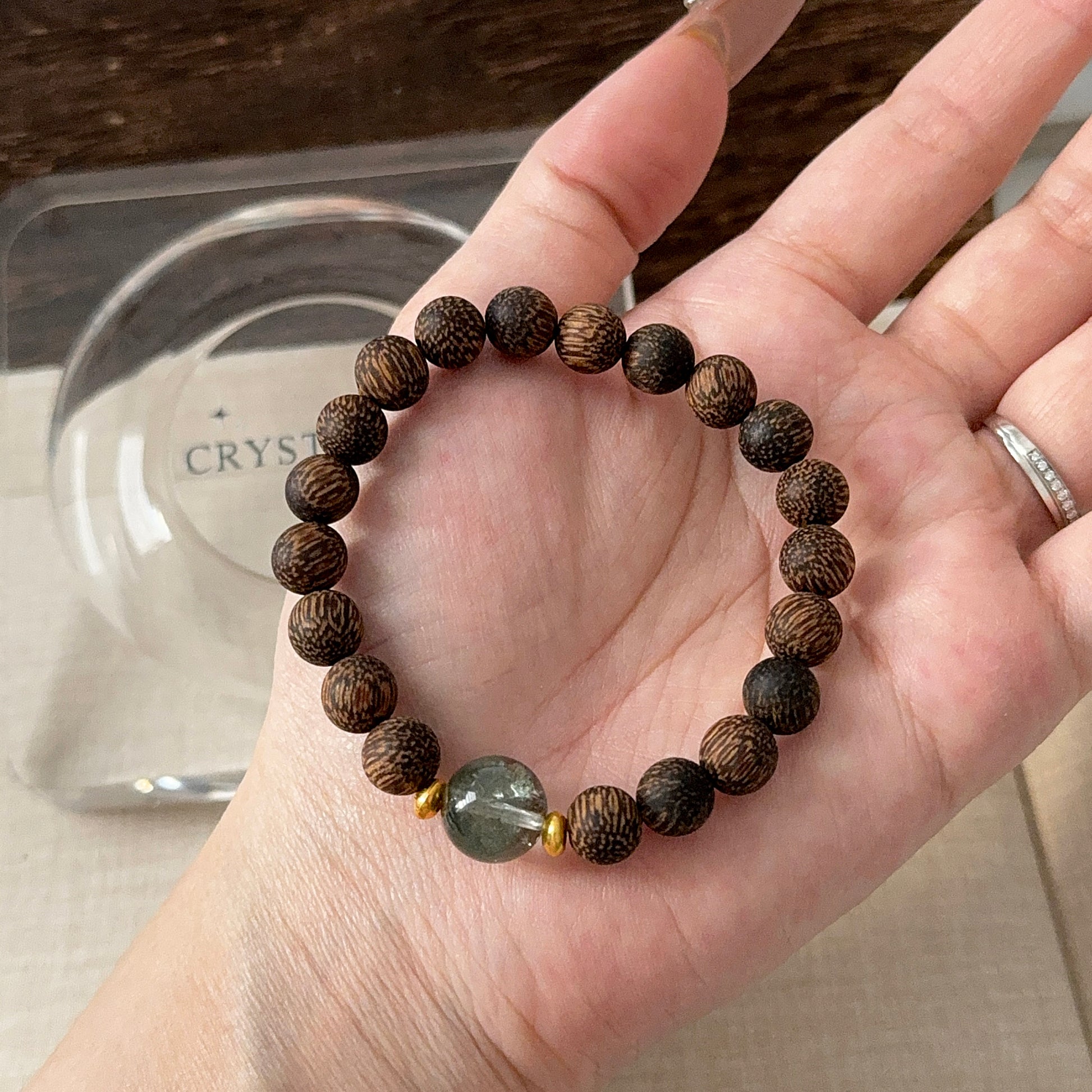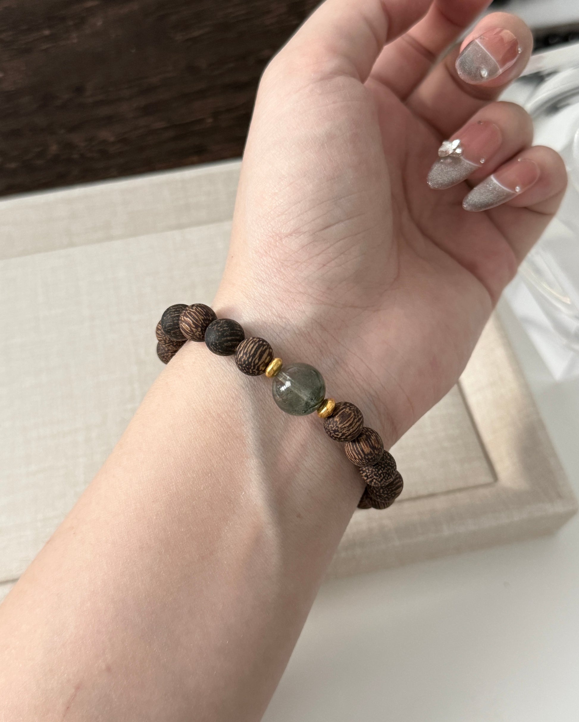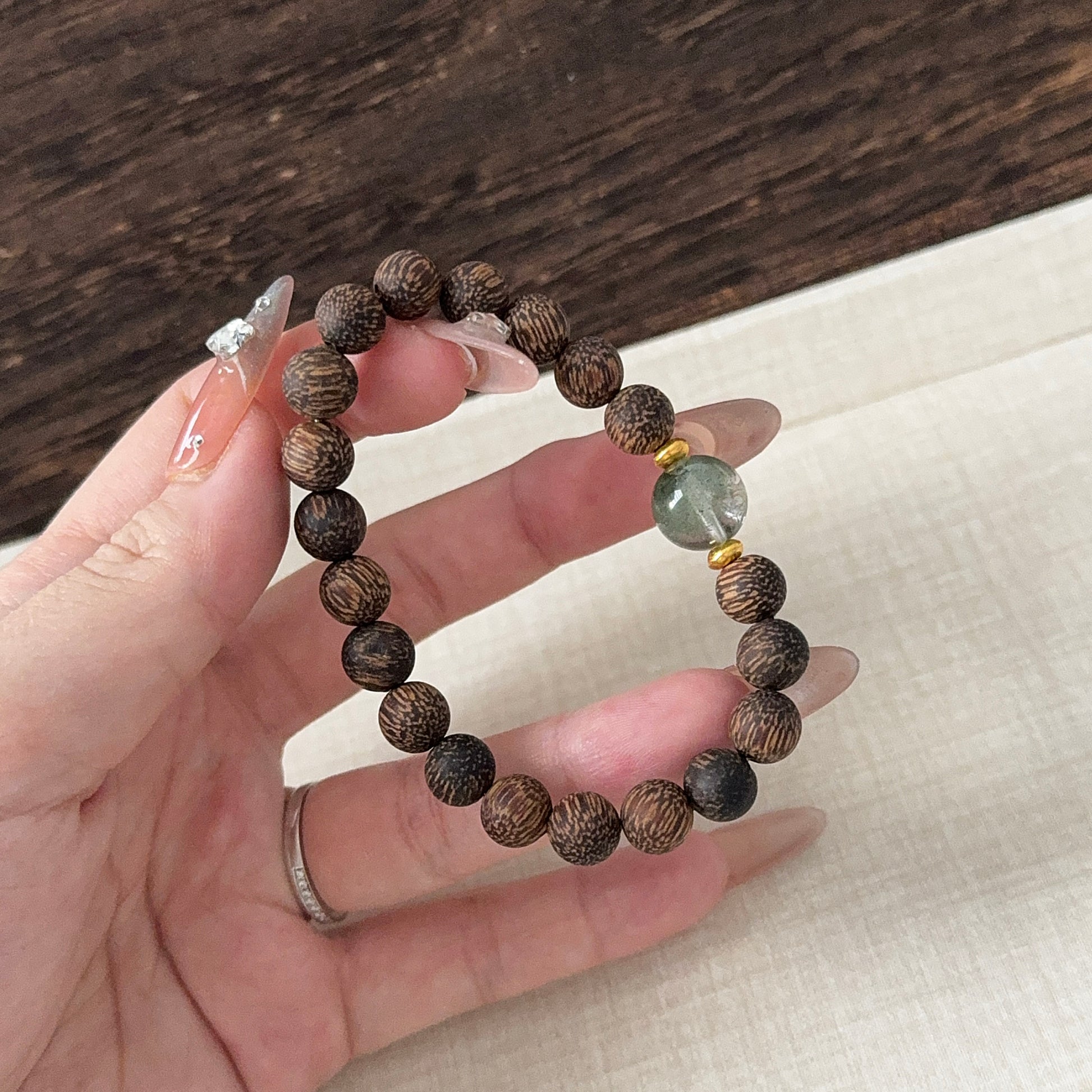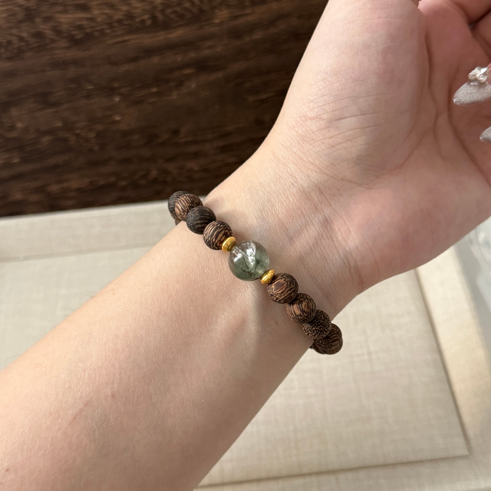 Vietnam Agarwood Wood with Green Phantom Beaded Bracelet