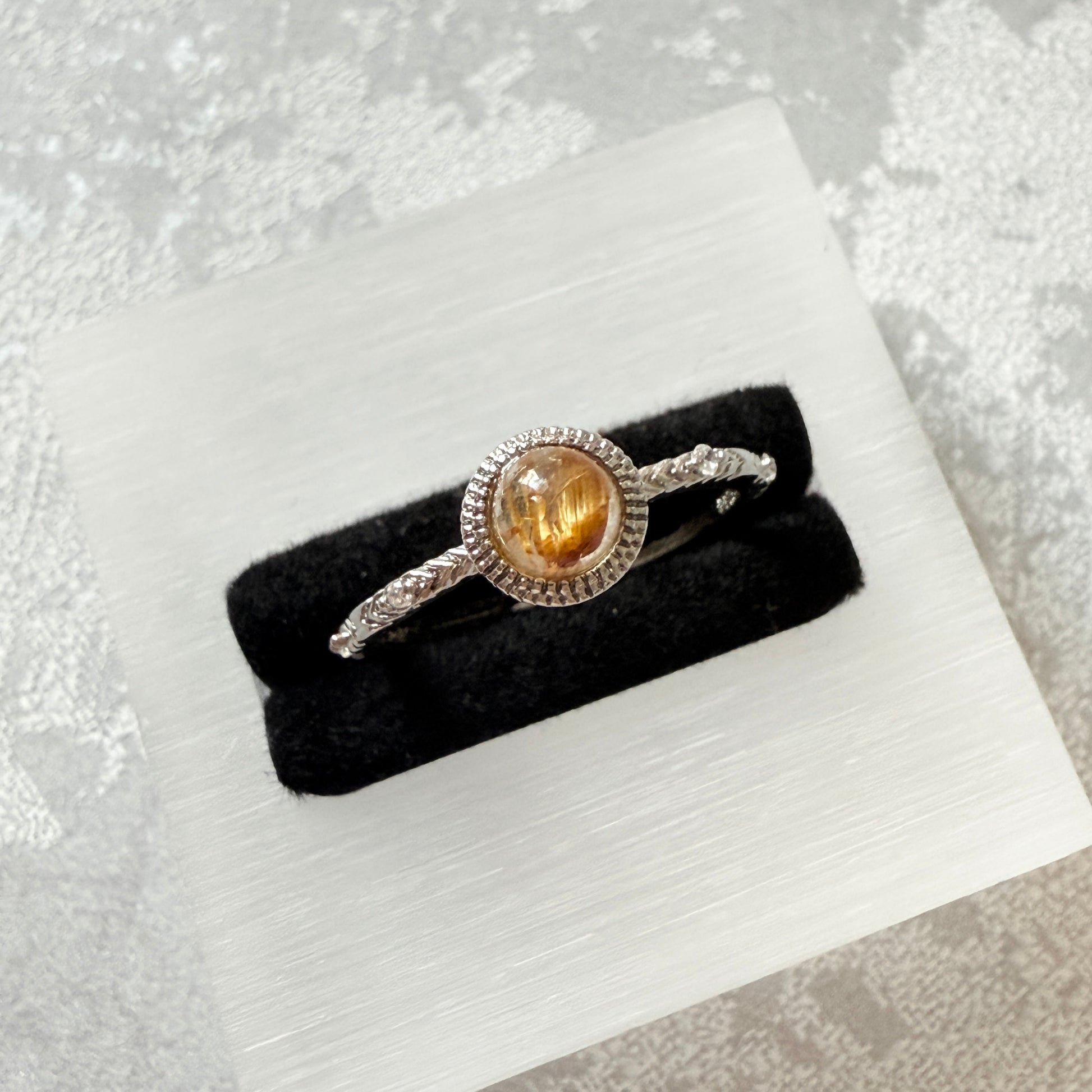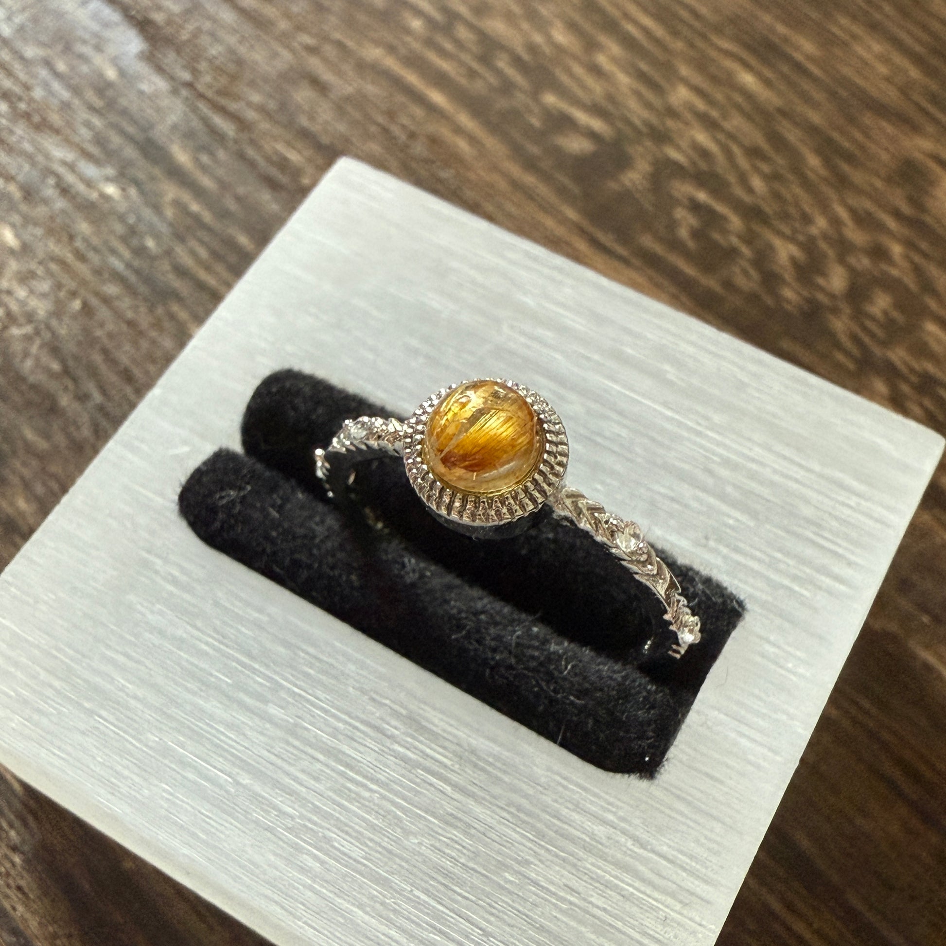 Vintage S925 Golden Rutile Quartz Zirconia Ring