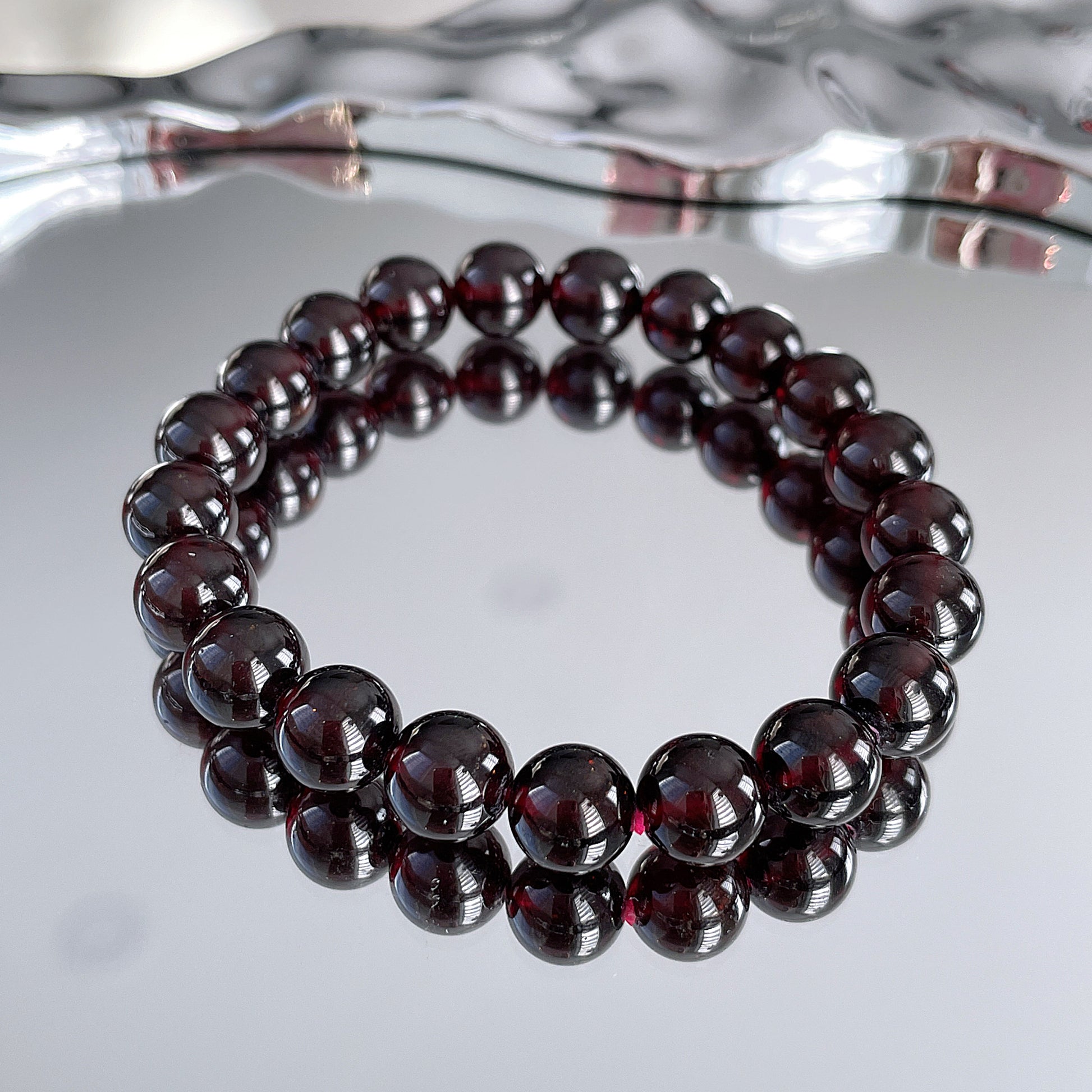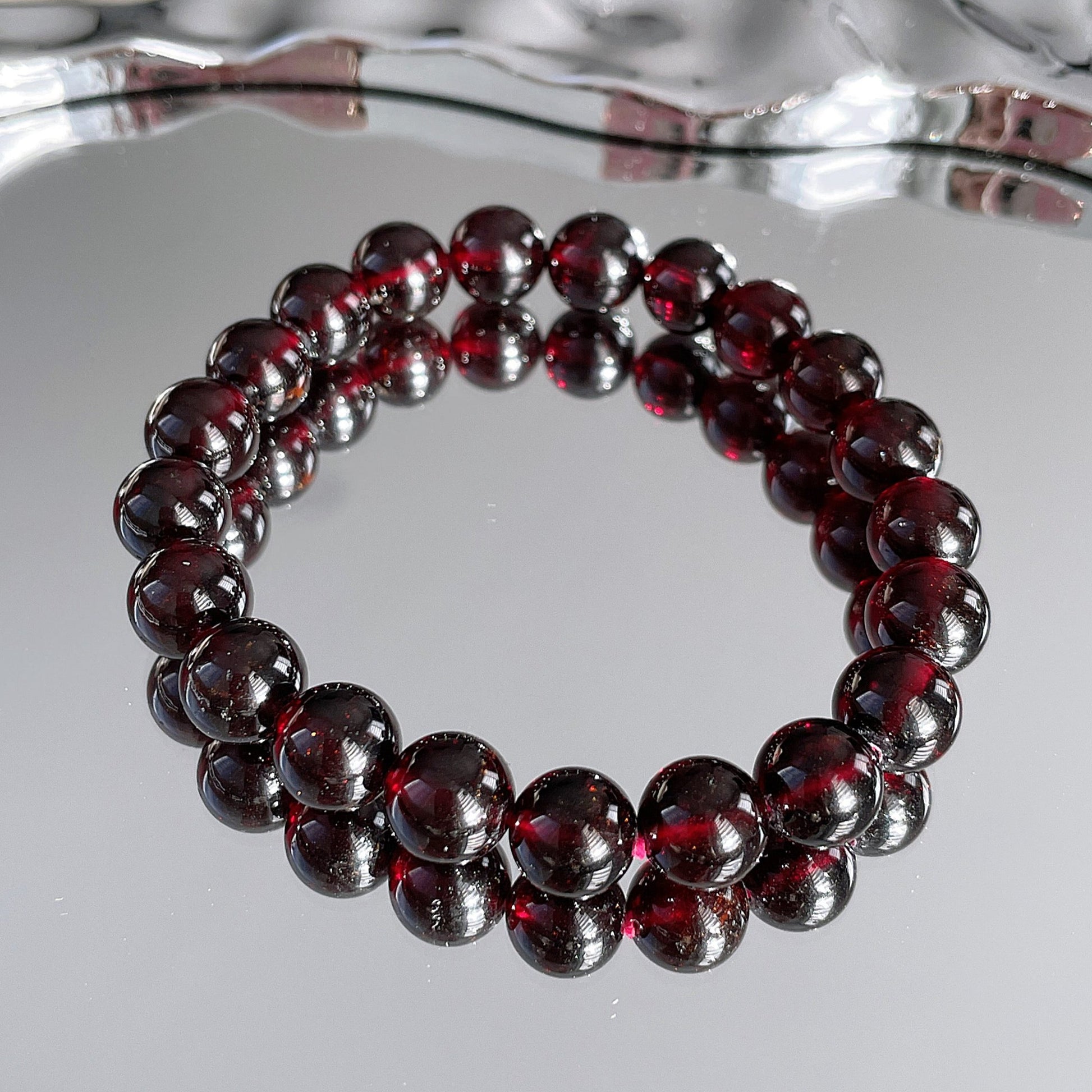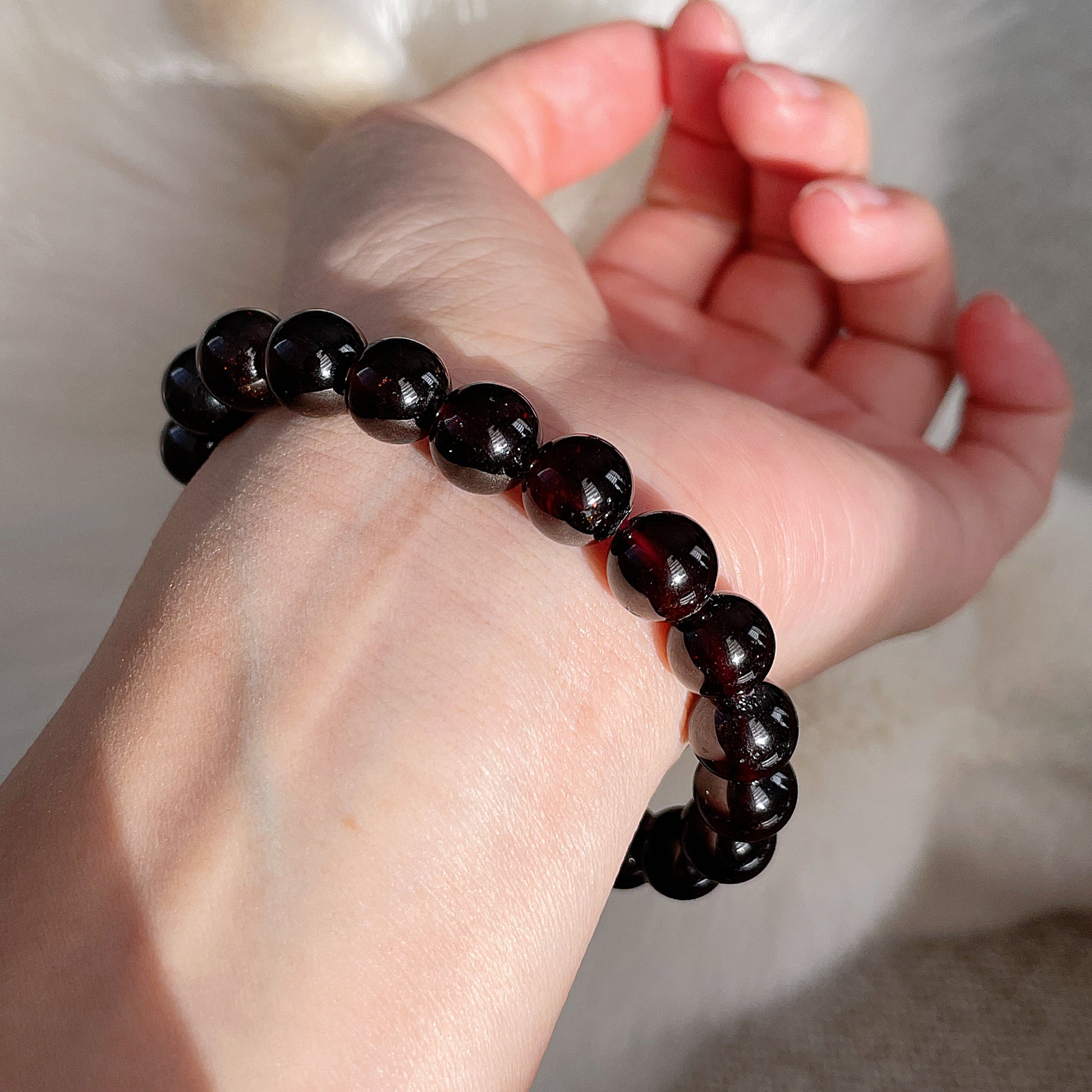 Wine Red Garnet Beaded Bracelet