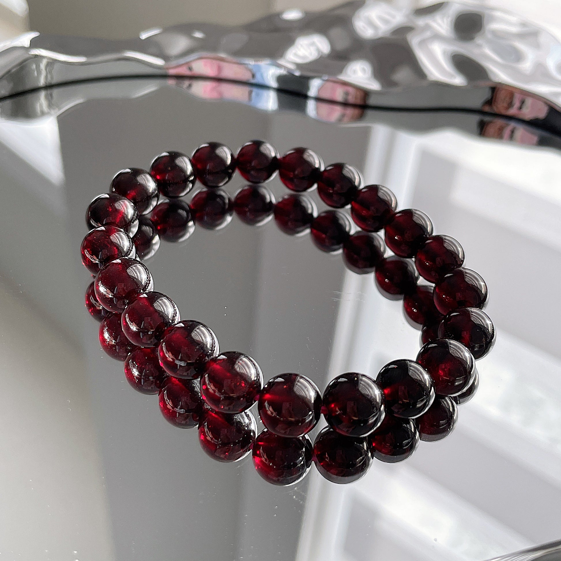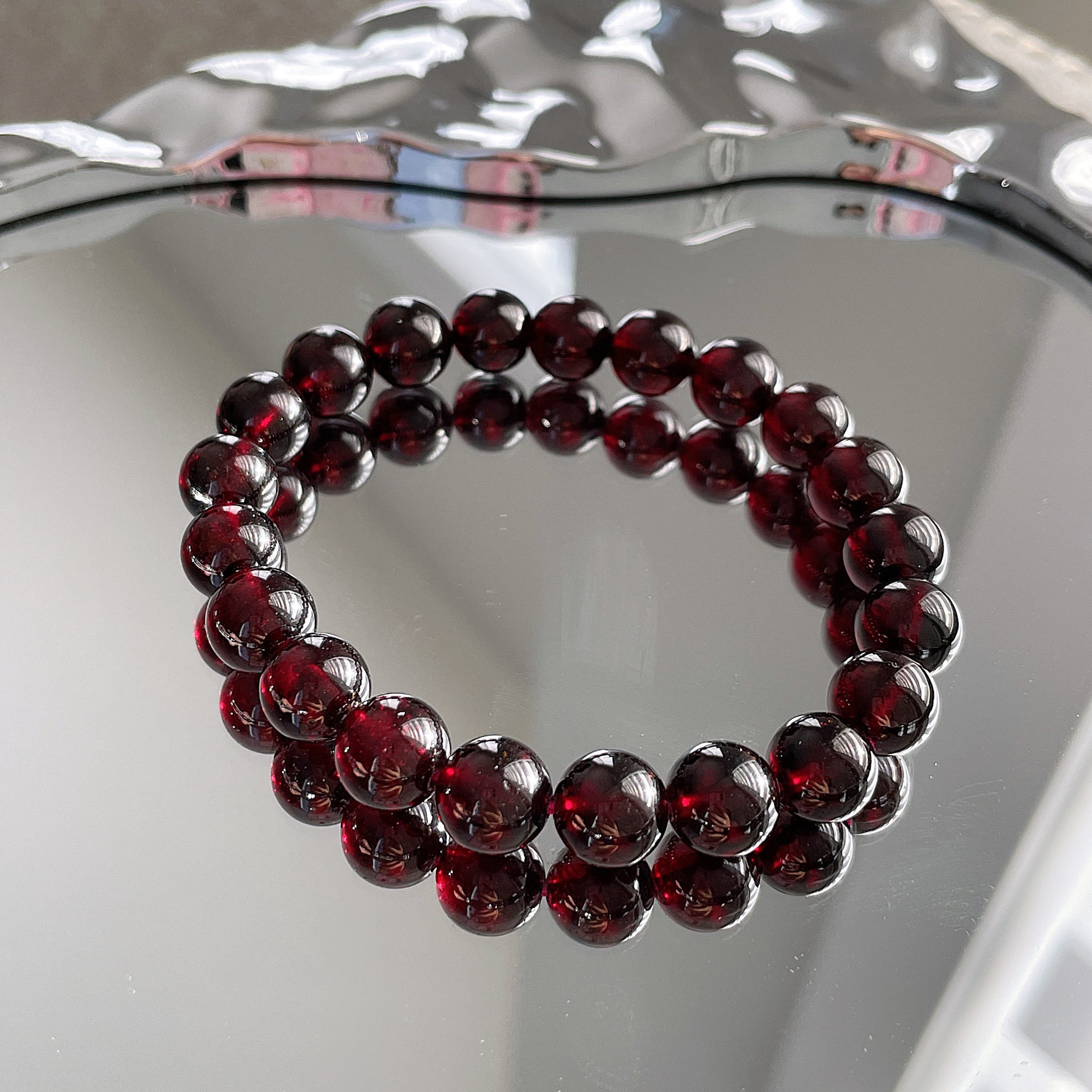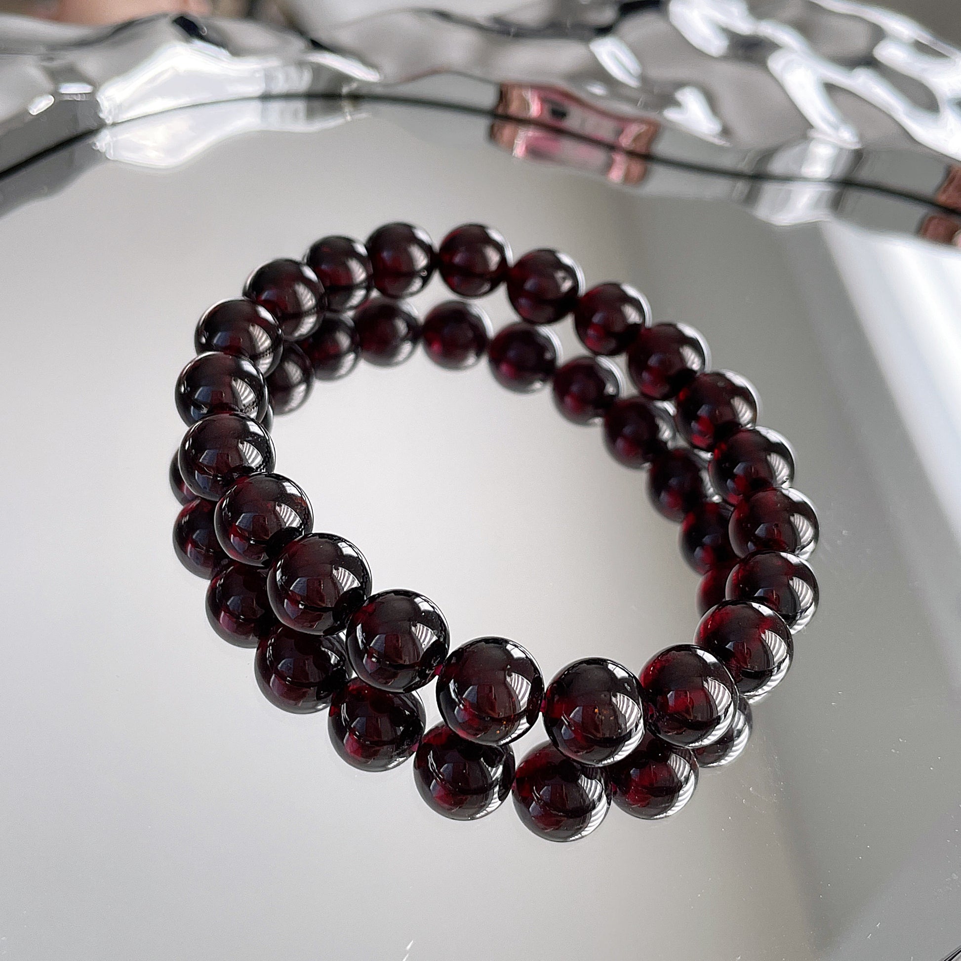 Wine Red Garnet Beaded Bracelet