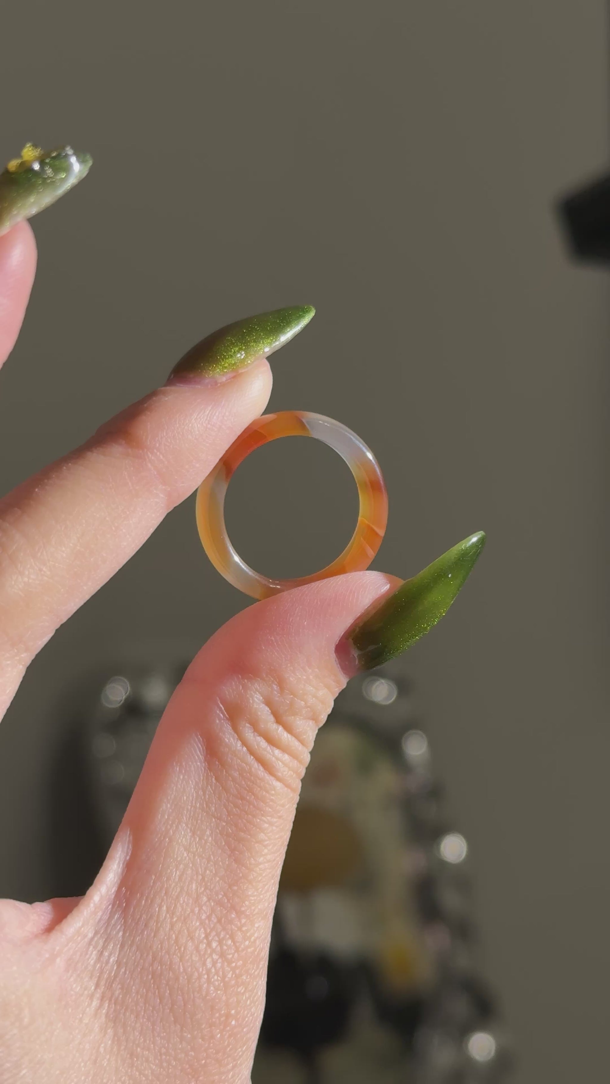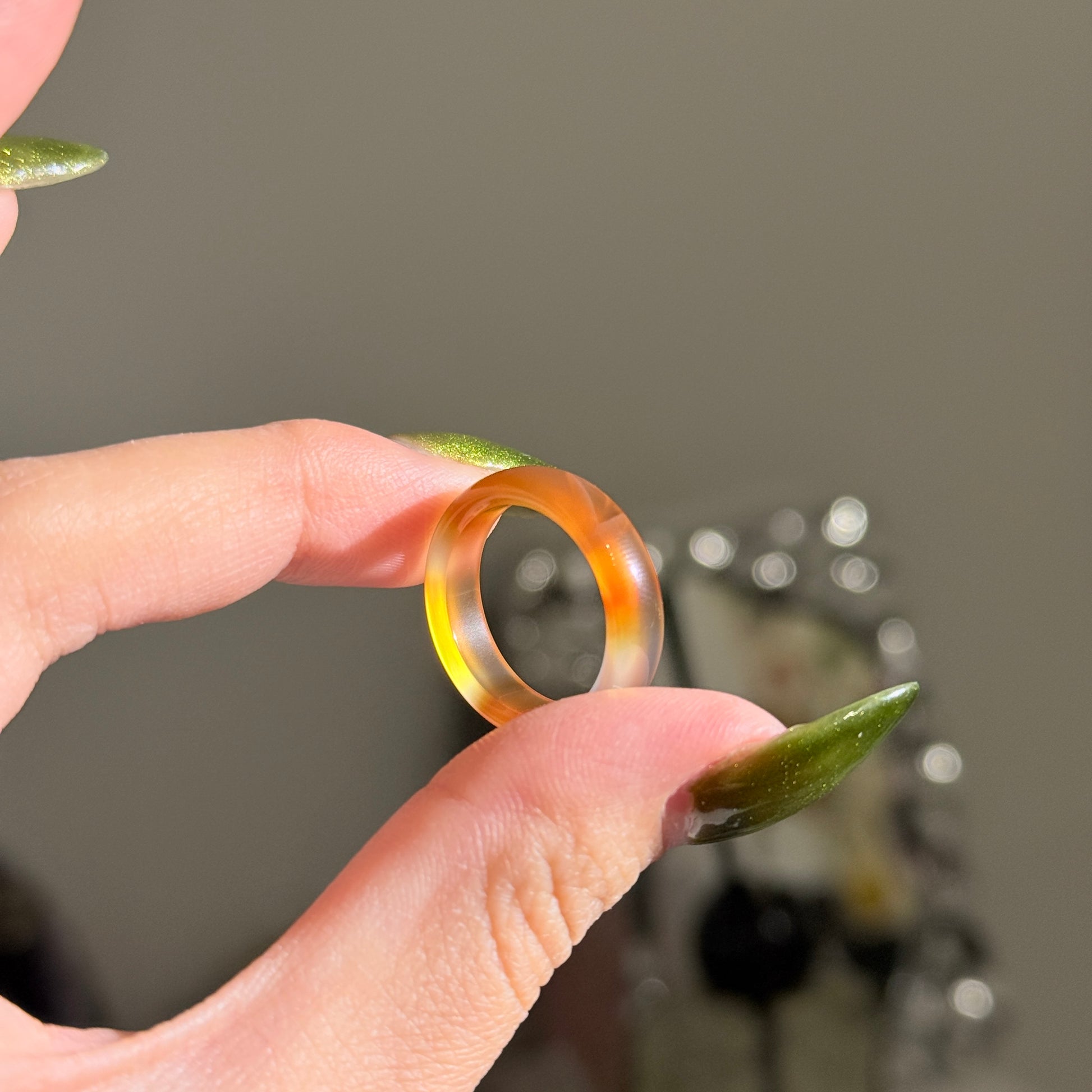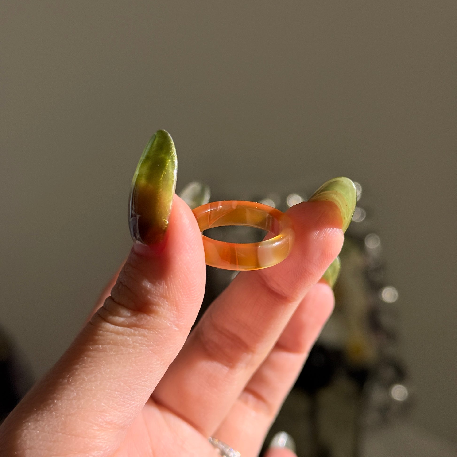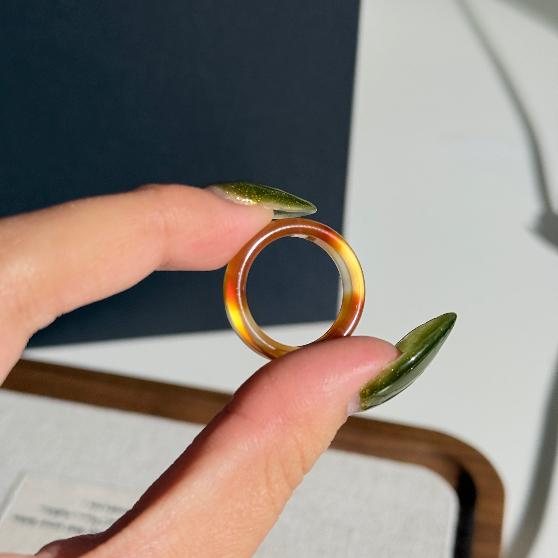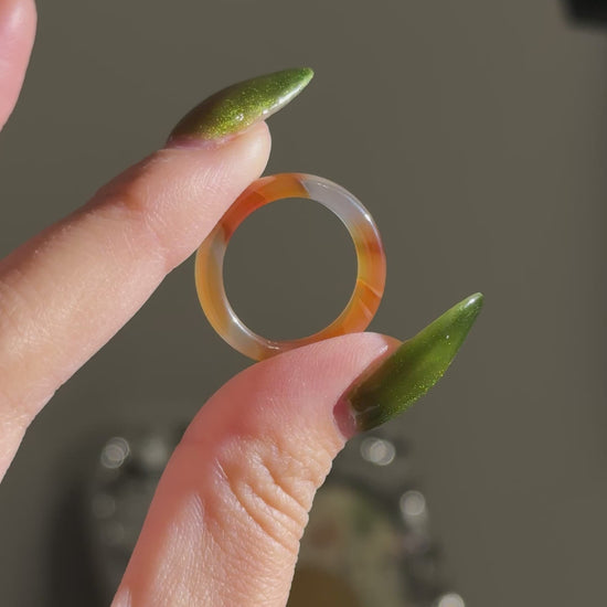 Bicolor Orange Chalcedony Agate Ring Bangle US 7.5 Ring Band