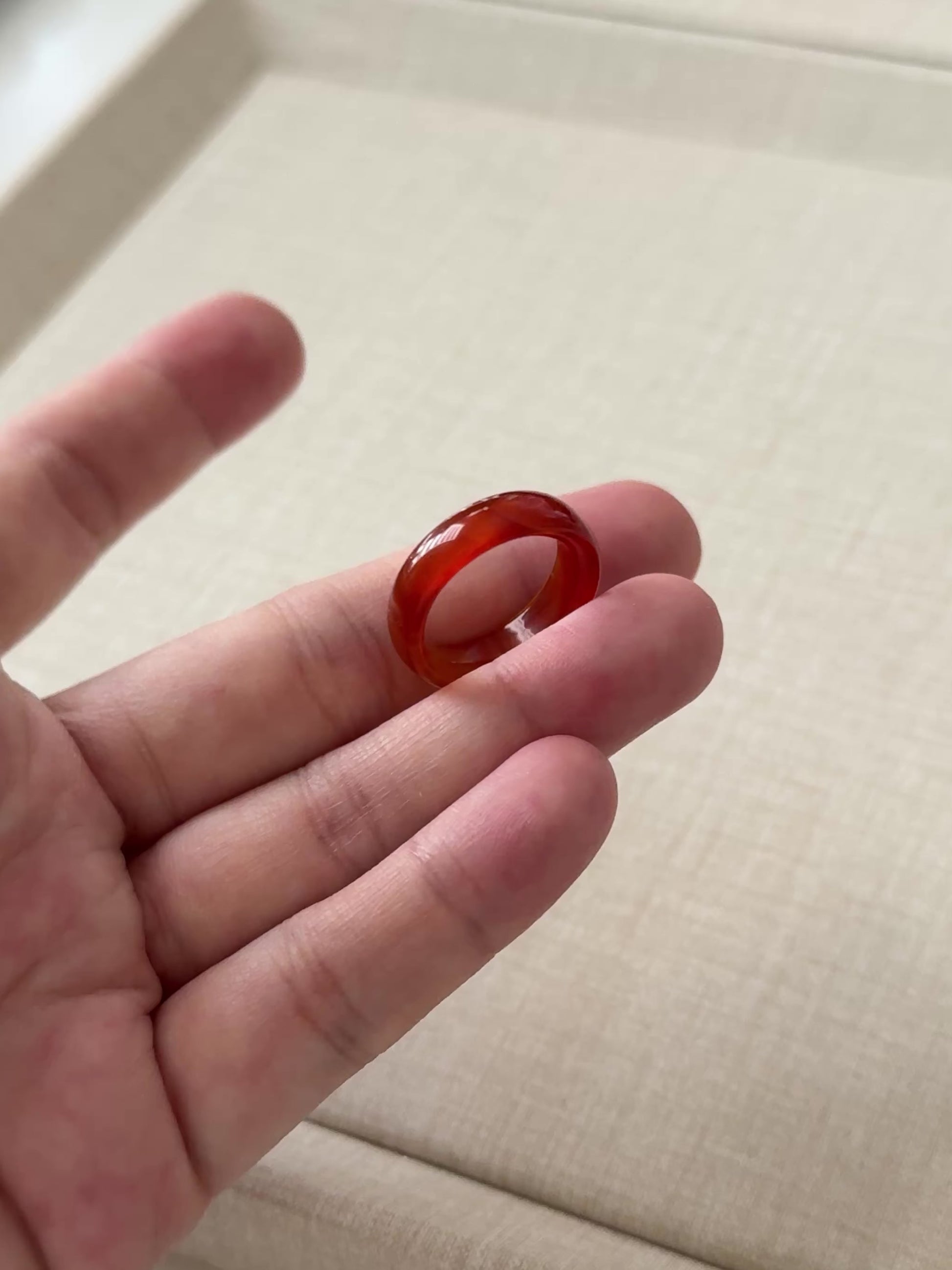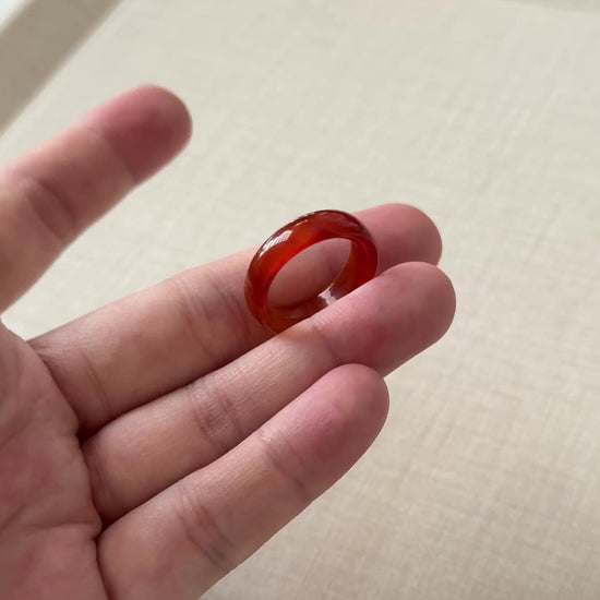 Bicolor Red Orange Chalcedony Agate Ring Bangle US 6 Ring Band