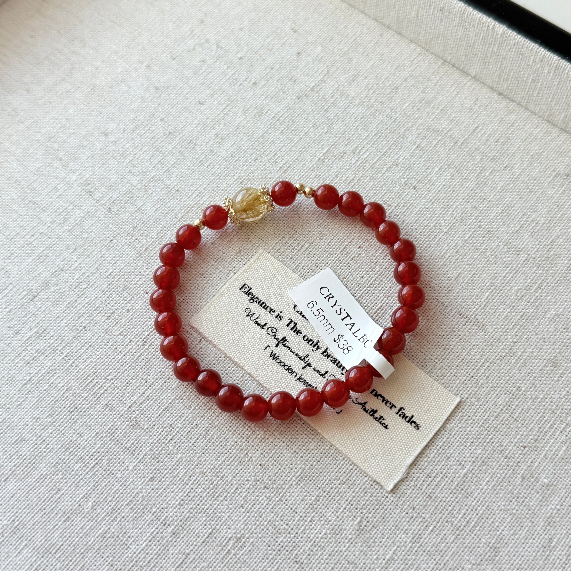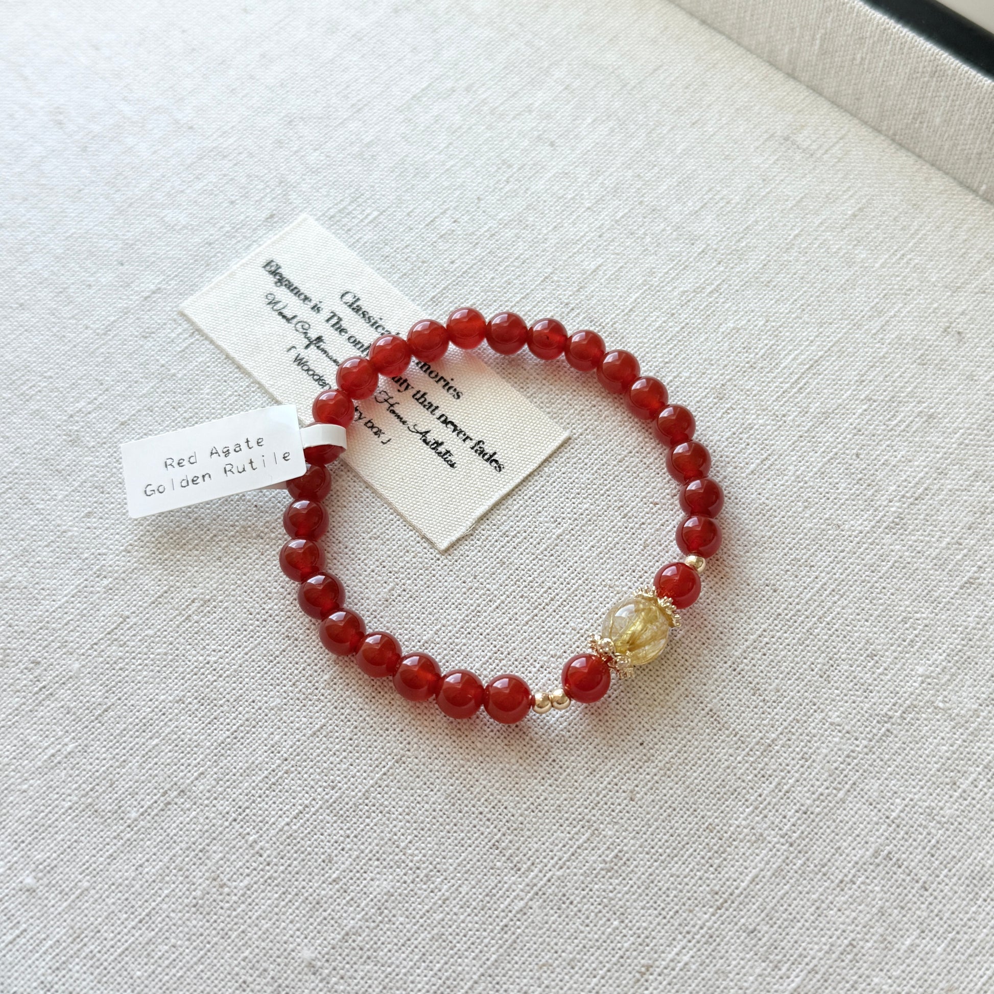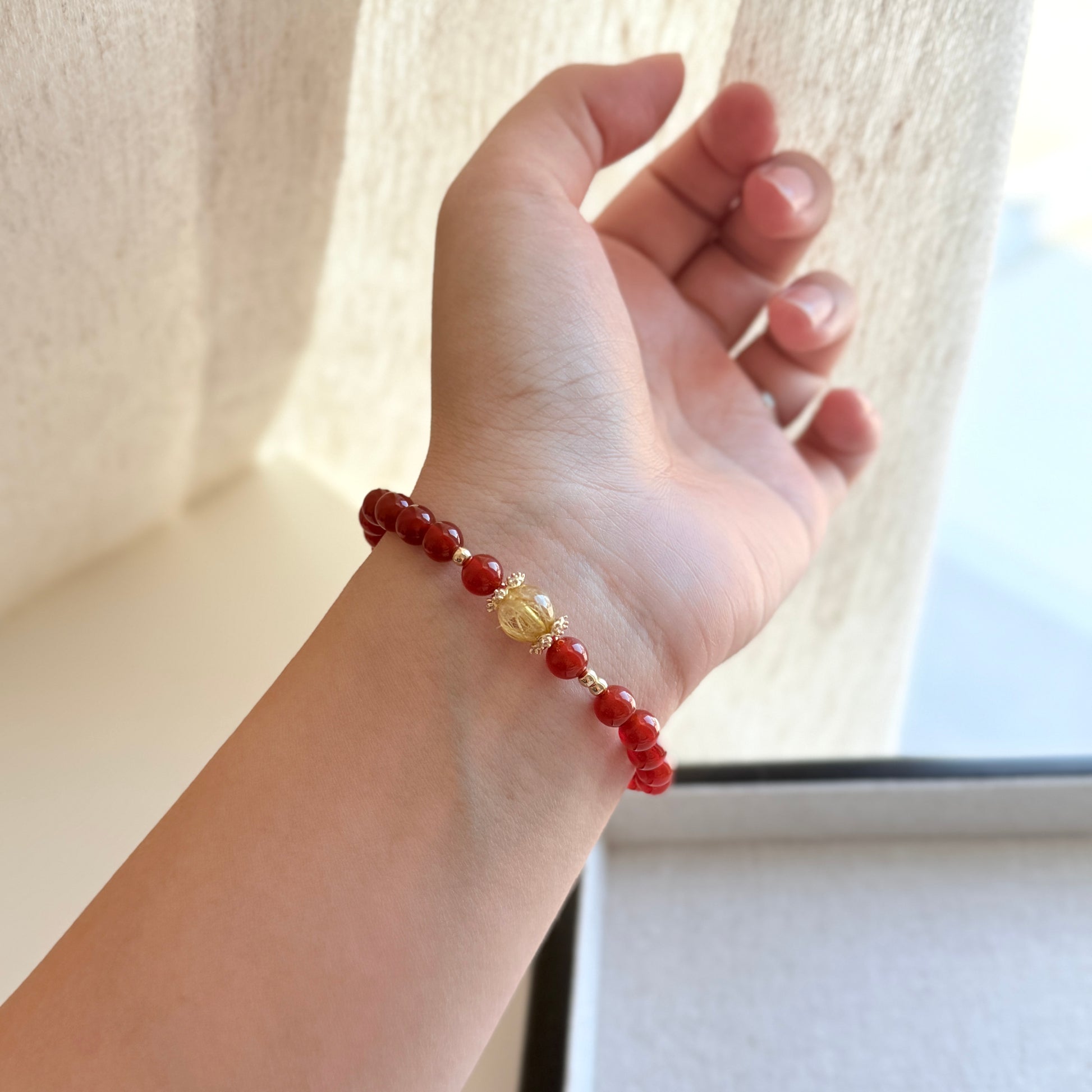Red Agate Cornelian Golden Rutile Lucky Stone Beaded Bracelet