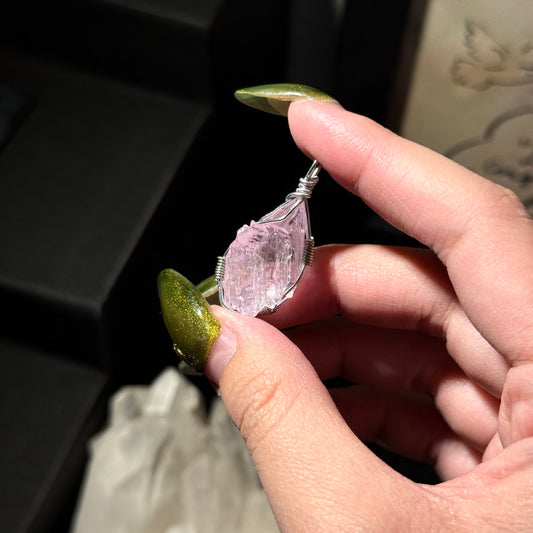 Collection Grade Kunzite Pendant with silver Necklace chain included